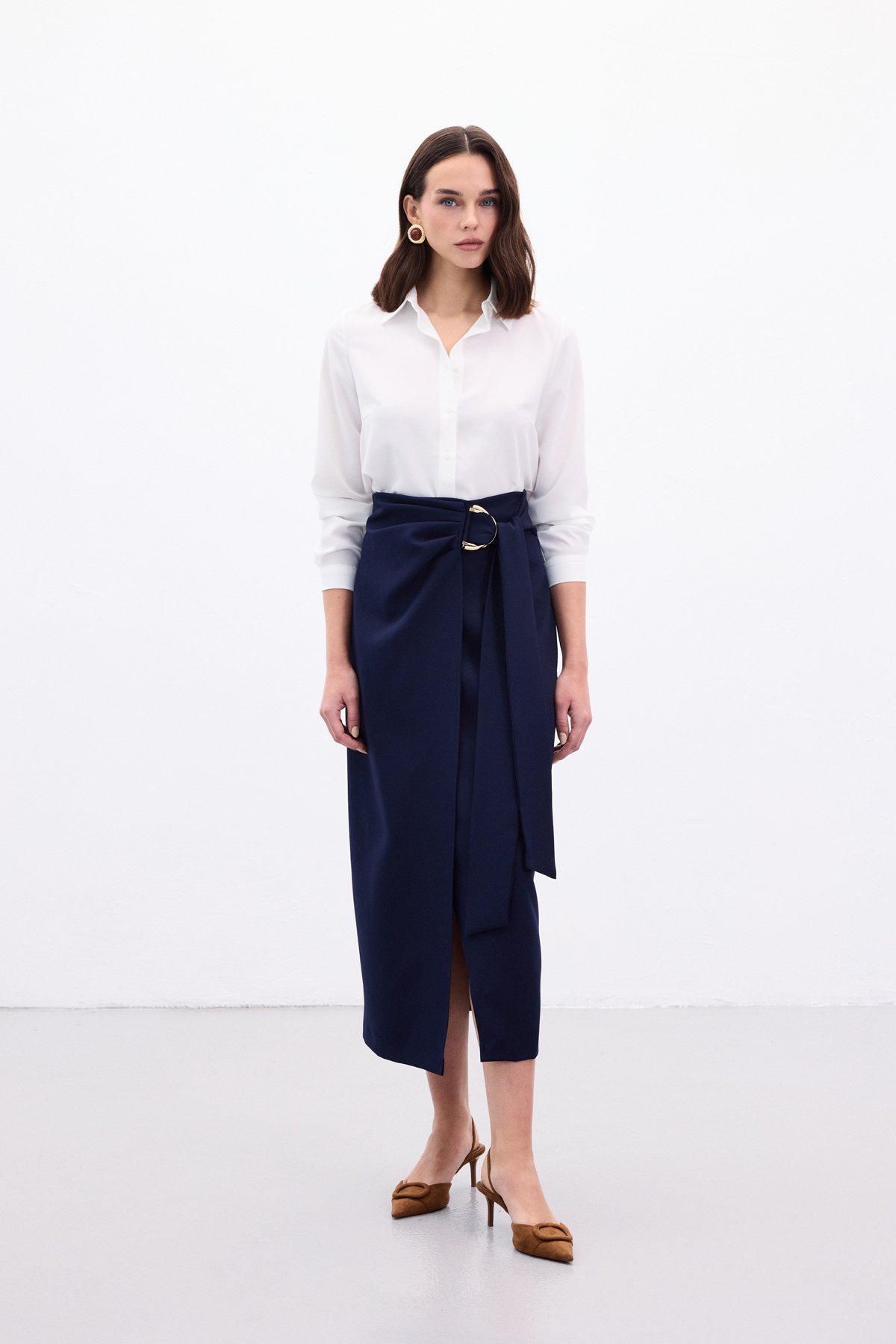 1976-4096 KUŞAK DETAYLI MİDİ ETEK