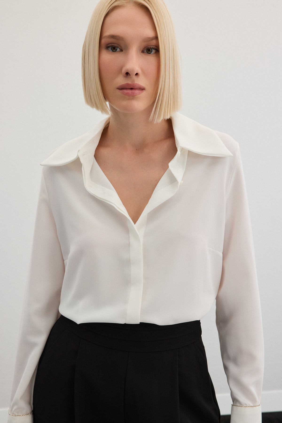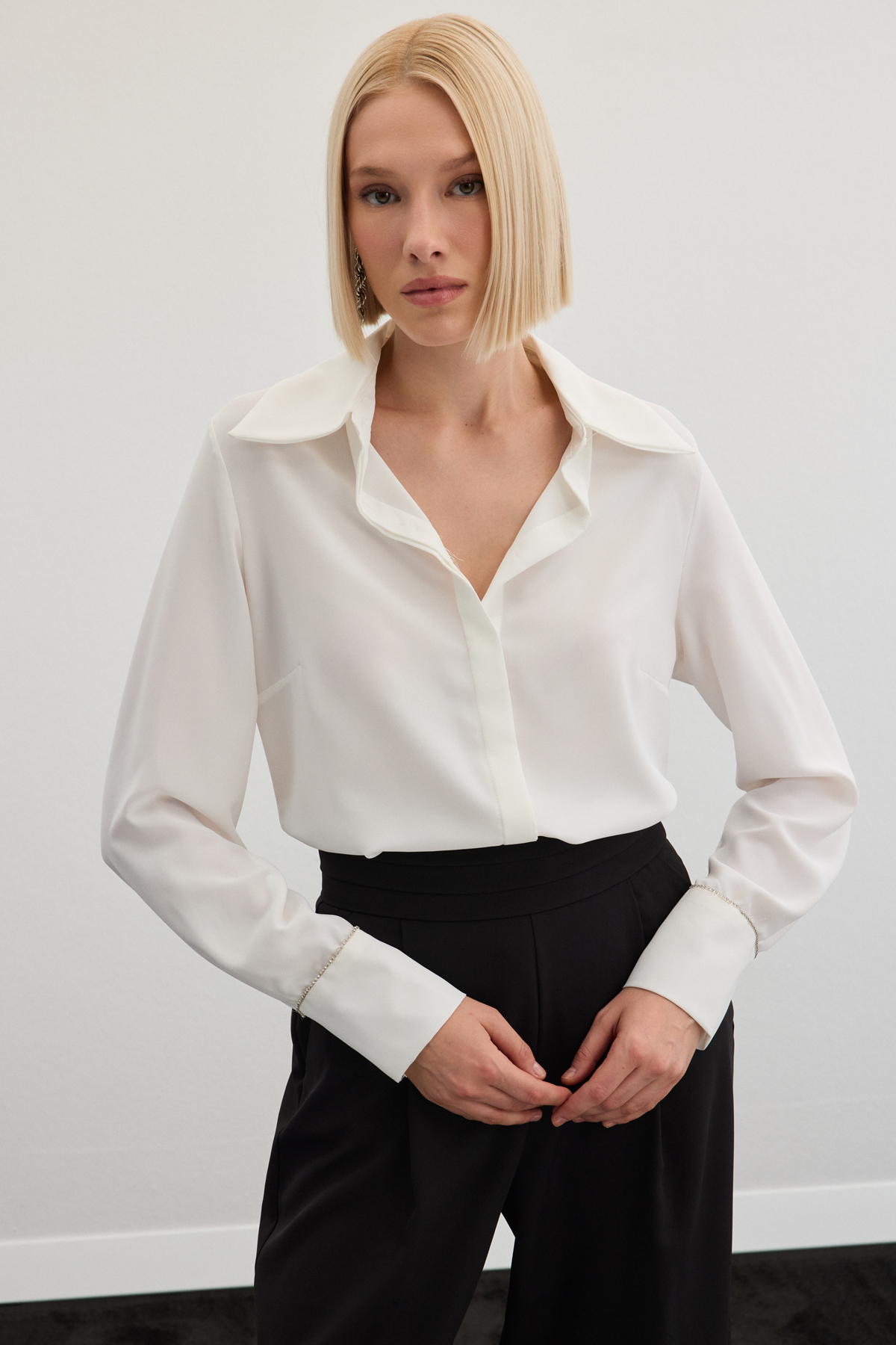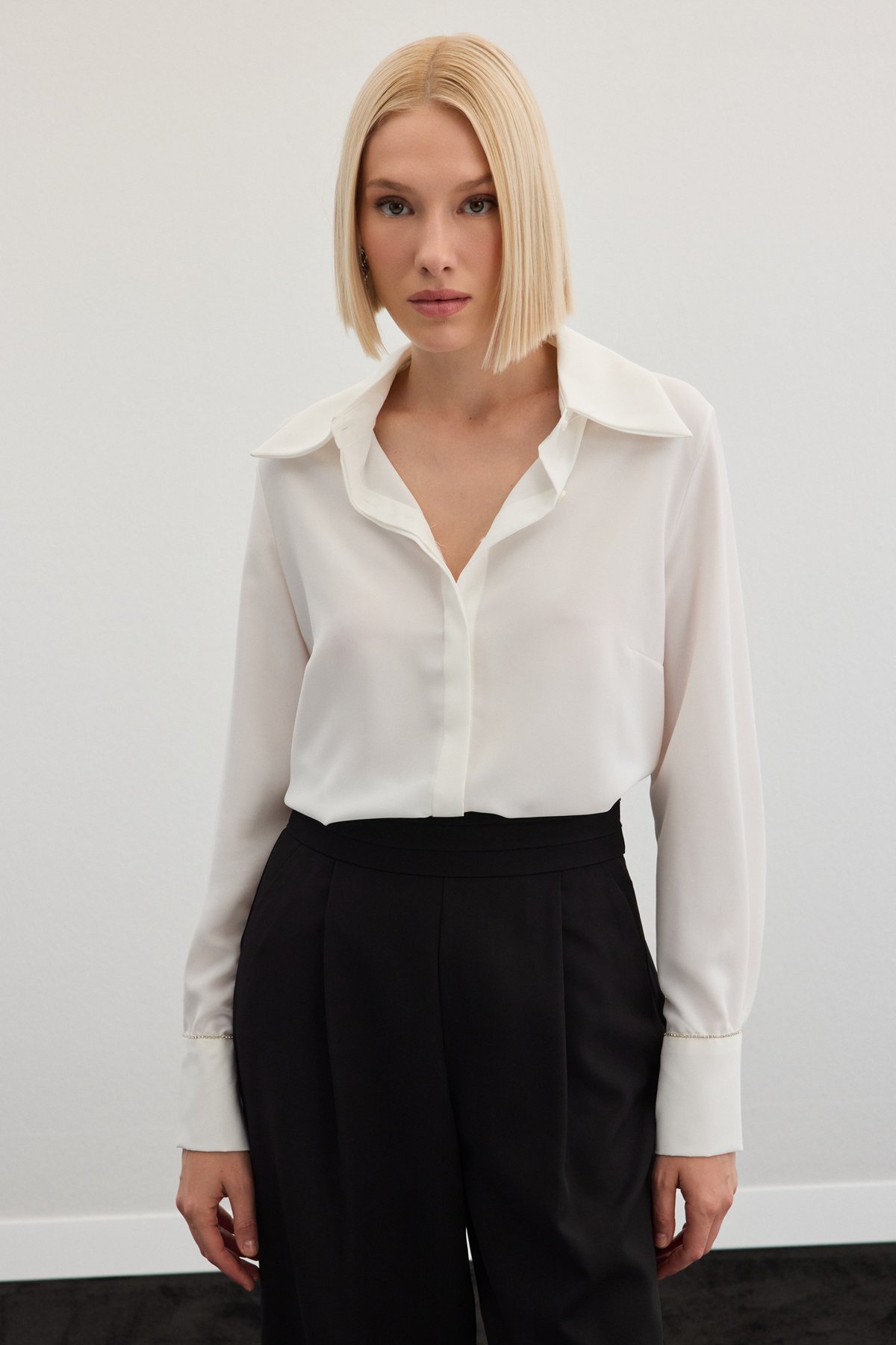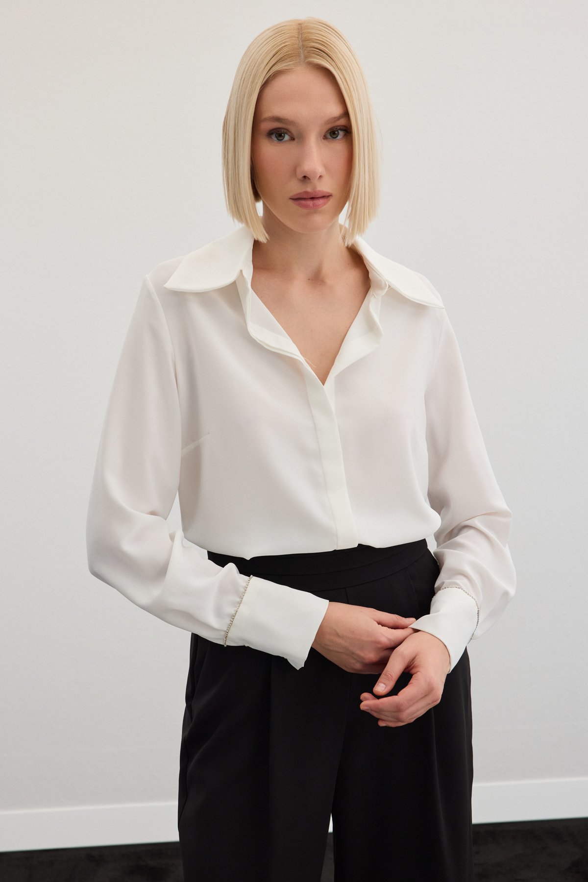 Aksesuarlı Klasik Gömlek - Ekru
