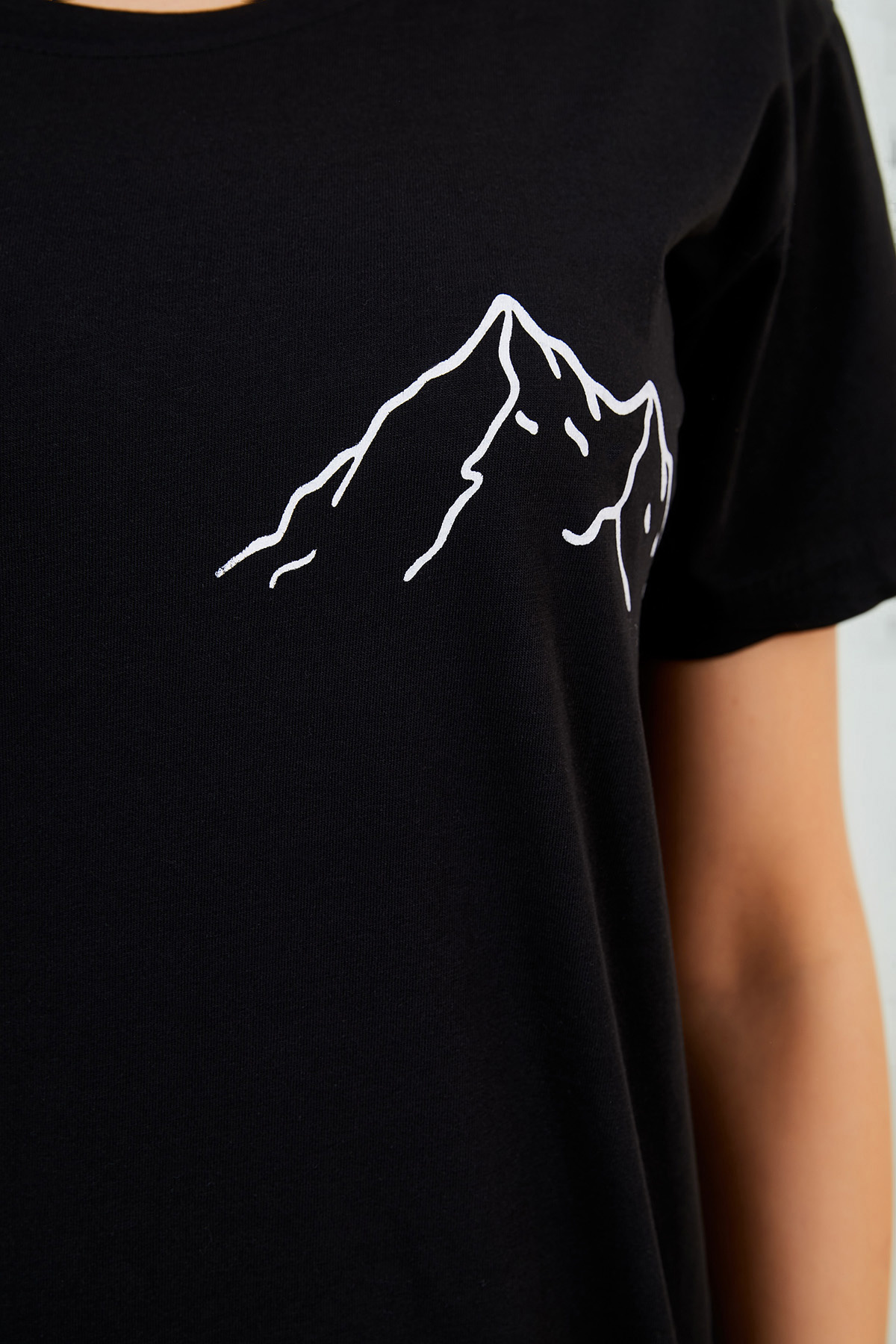 Bisiklet yaka, kısa kol, baskı detaylı tshirt.PamukBoy Uzunluğu:65 cmModelin Üzerindeki Ürün STD Bedendir.Modelin Ölçüleri :Boy:1,74, Göğüs:89, Bel:59, Kalça:93