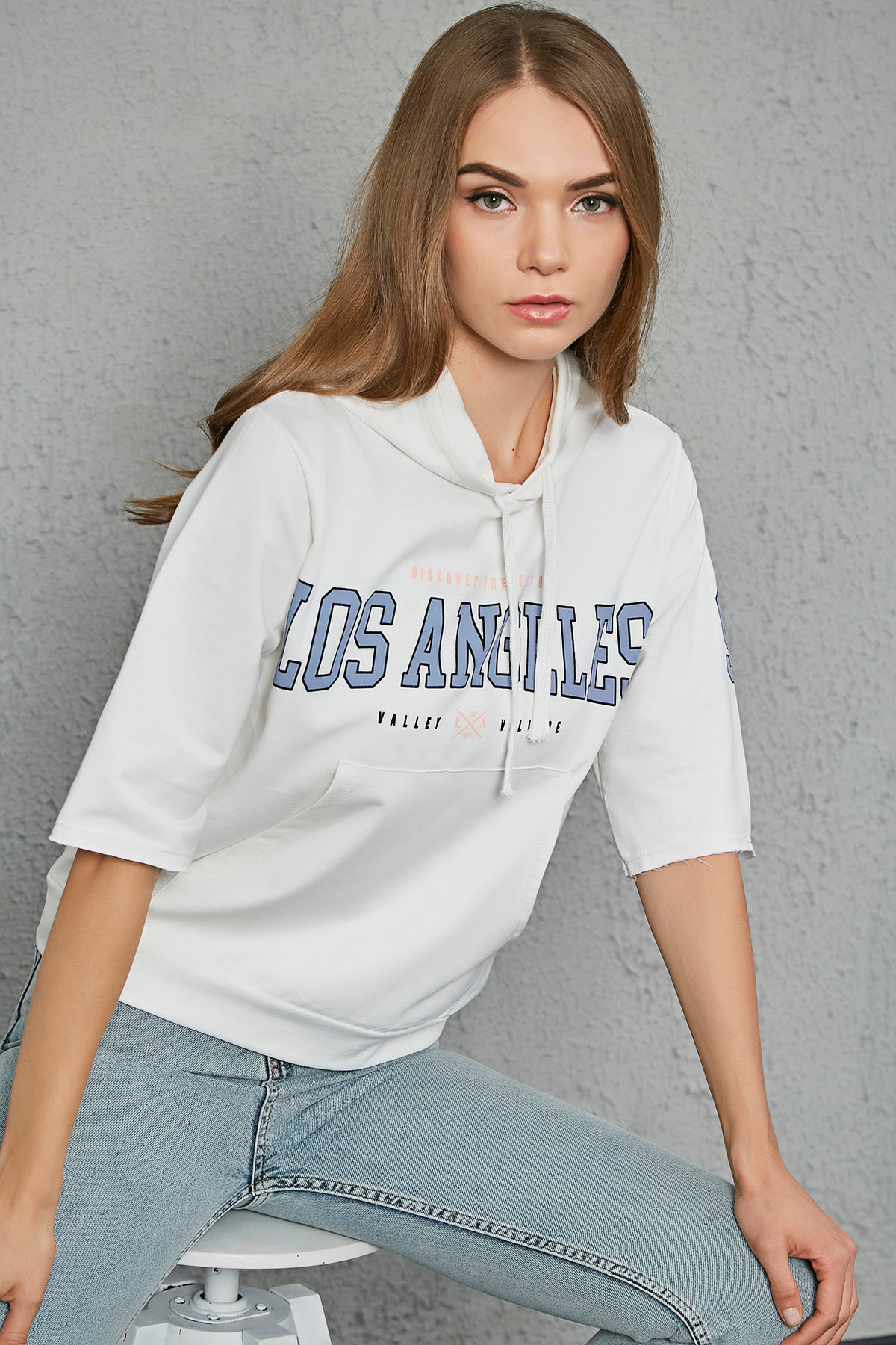 Birleşik kapüşonlu, kısa-geniş kol, kanguru cep, geniş kalıp, baskılı sweat. %100 Pamuk Boy Uzunluğu: 59 cm Modelin Üzerindeki Ürün 36/S Bedendir. Modelin Ölçüleri :Boy:1,76, Göğüs:87, Bel:62, Kalça:92