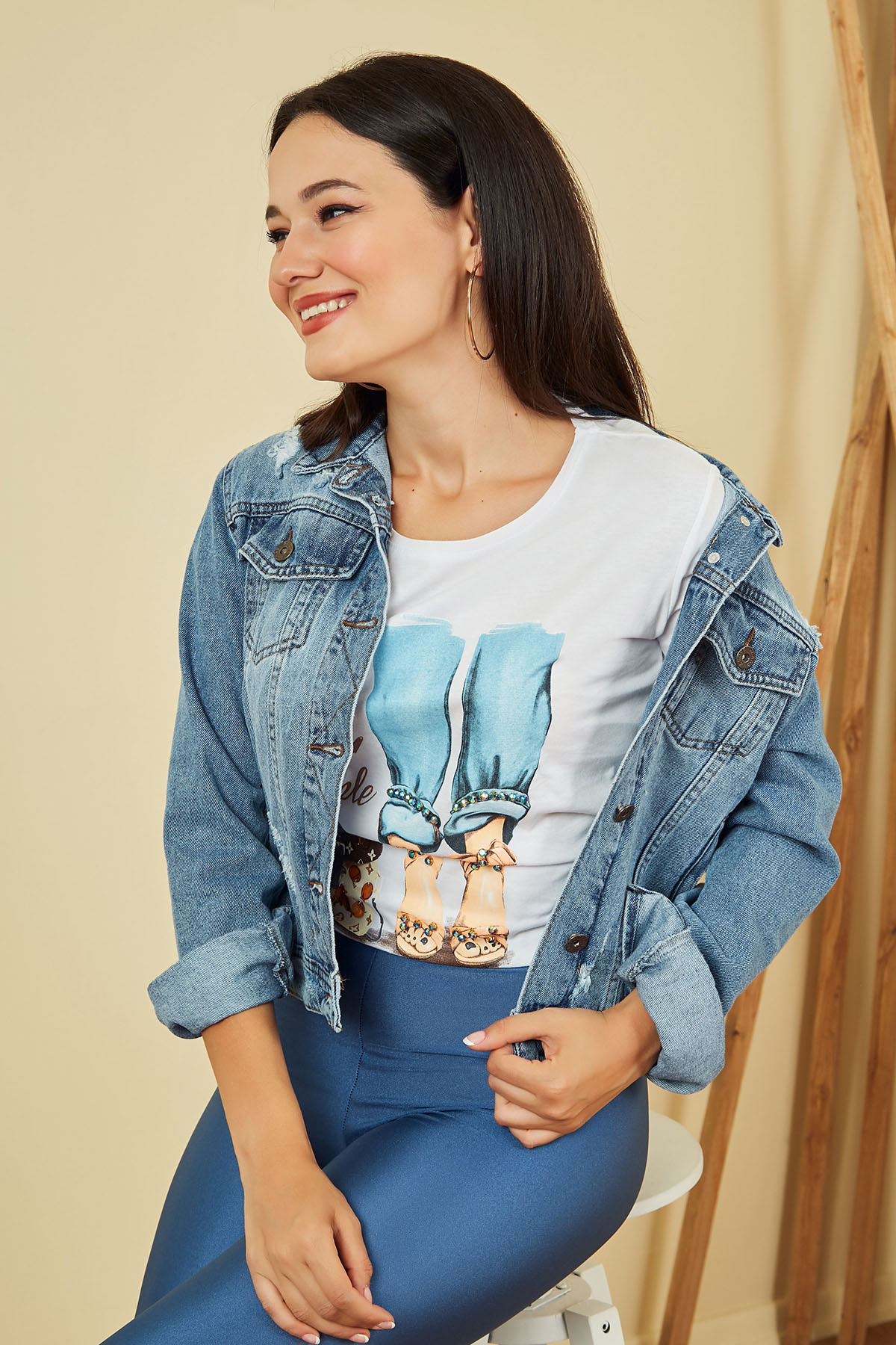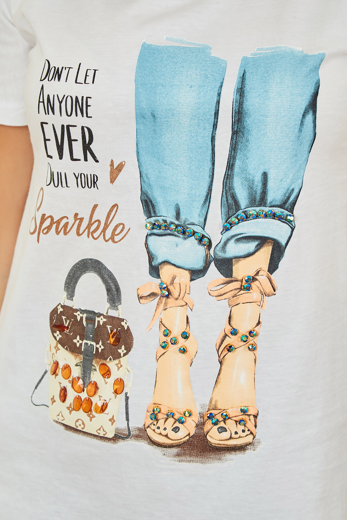 Bisiklet yaka, kısa kol, baskılı taşlı tshirt.PamukBoy Uzunluğu: 61 cmModelin Üzerindeki Ürün 36/S Bedendir.Modelin Ölçüleri :Boy:1,73, Göğüs:89, Bel:64, Kalça:92