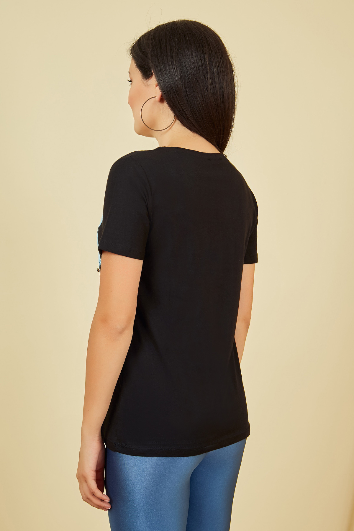 Bisiklet yaka, kısa kol, baskılı taşlı tshirt.PamukBoy Uzunluğu: 61 cmModelin Üzerindeki Ürün 36/S Bedendir.Modelin Ölçüleri :Boy:1,73, Göğüs:89, Bel:64, Kalça:92