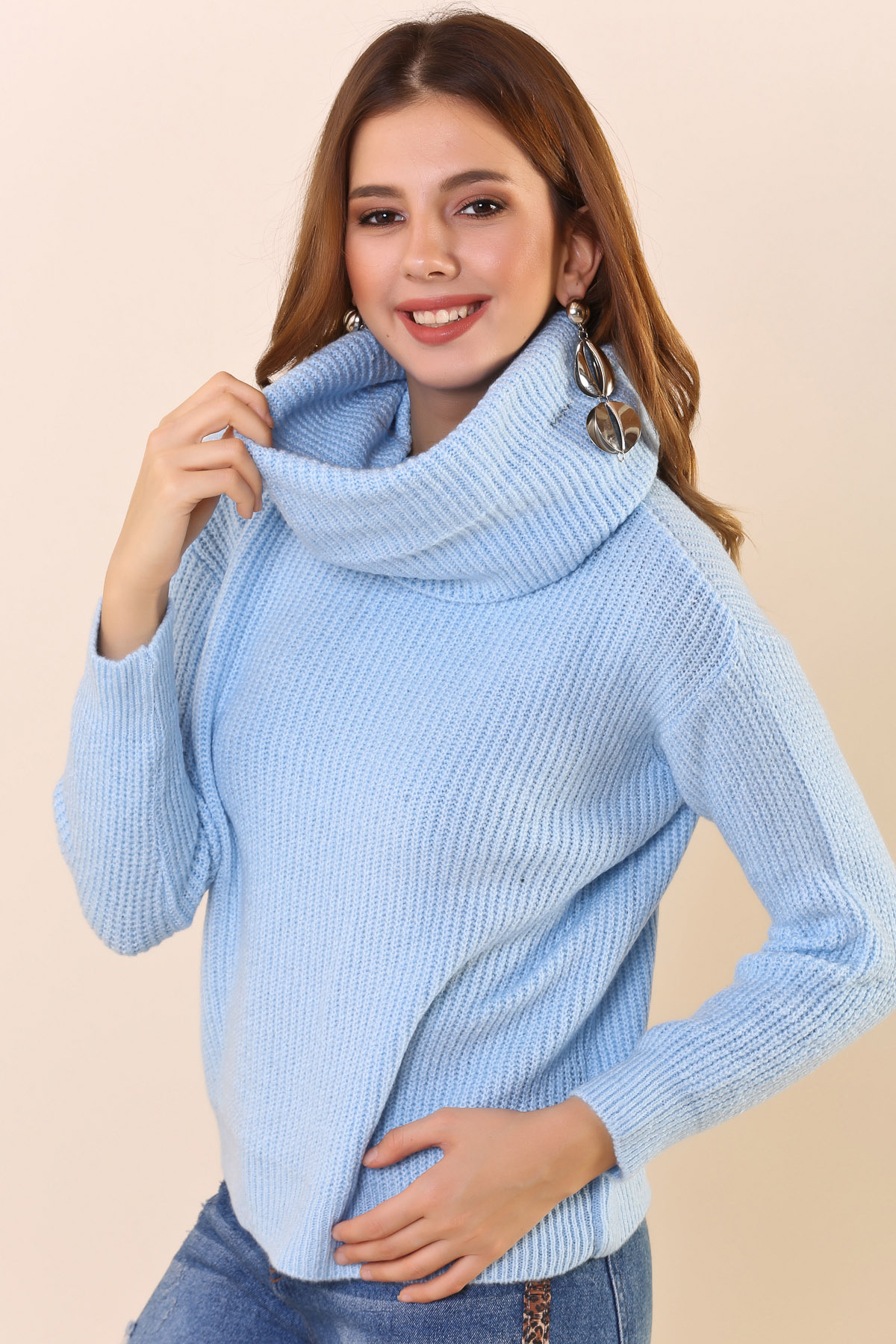%50 Akrilik %50 Pamuk *Dökümlü Balıkçı Yaka *Uzun Kol *Esnek*Geniş Kalıp *Boy Uzunluğu:59 cm Numune Bedeni: STDModelin Ölçüleri : Boy:1,77, Göğüs:88, Bel:64, Kalça:89