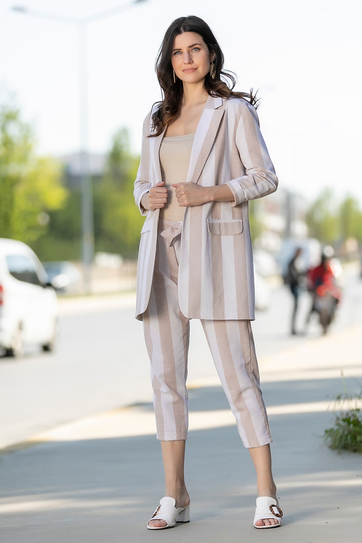 %100 KetenCeket *Ceket Yaka*Uzun Kol*Vatkalı*Süs Cep*Kol Ucu Katlamalı*Astarlı*Çizgi DesenliPatolon*Ön Fermuarlı*Kuşaklı*Cepli*Çizgi Desenli*Boru Paça *Tam Kalıp*Pantolon Boy Uzunluğu:82 cm*Ceket Boy Uzunluğu:84 cmNumune Bedeni: 36/S/1Dış Çekim Modelin Ölçüleri : Boy:1,72, Göğüs:84, Bel:60, Kalça:90İç Çekim Modelin Ölçüleri : Boy:1,74, Göğüs:88, Bel:64, Kalça:94Konsept çekimlerinde renkler ışık farklılığından dolayı değişiklik gösterebilir, stüdyo çekimlerindeki renkleri esas almanız önerilir.