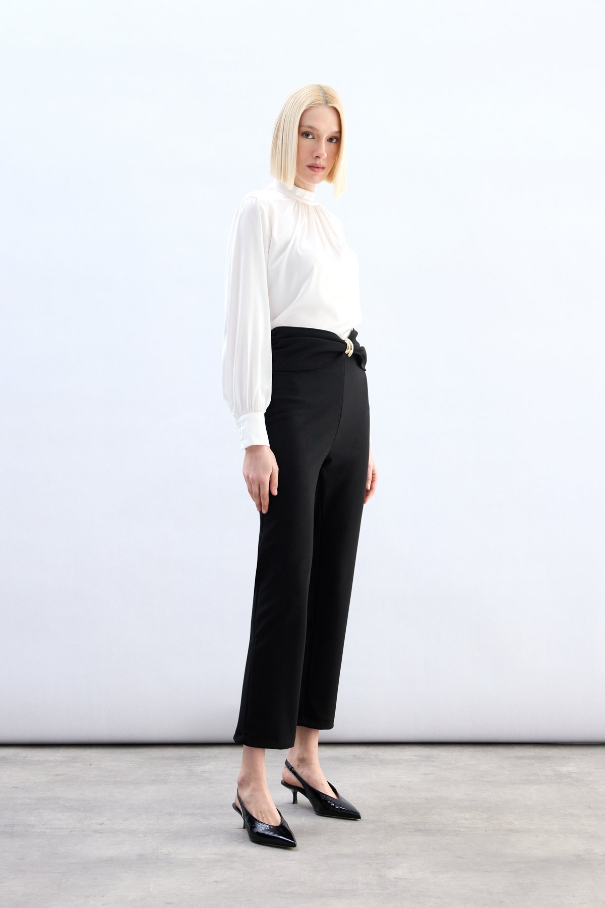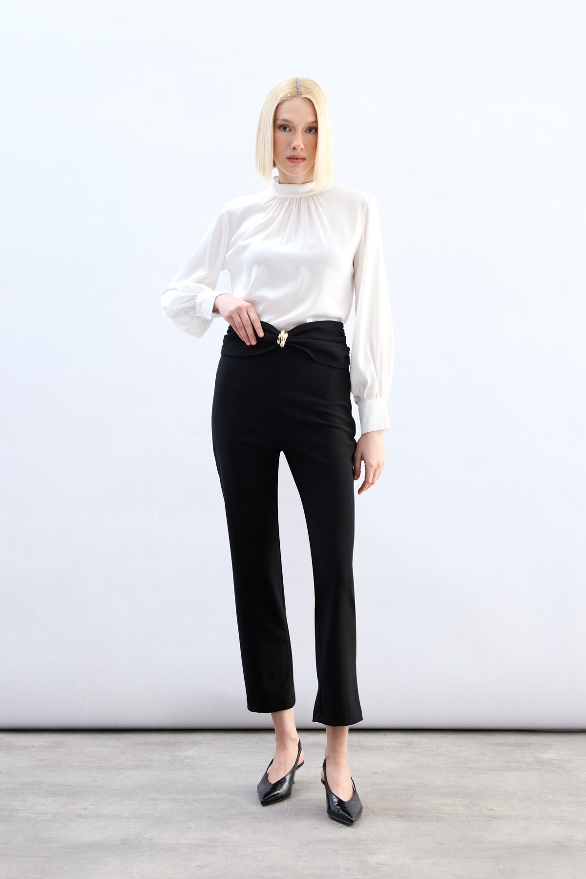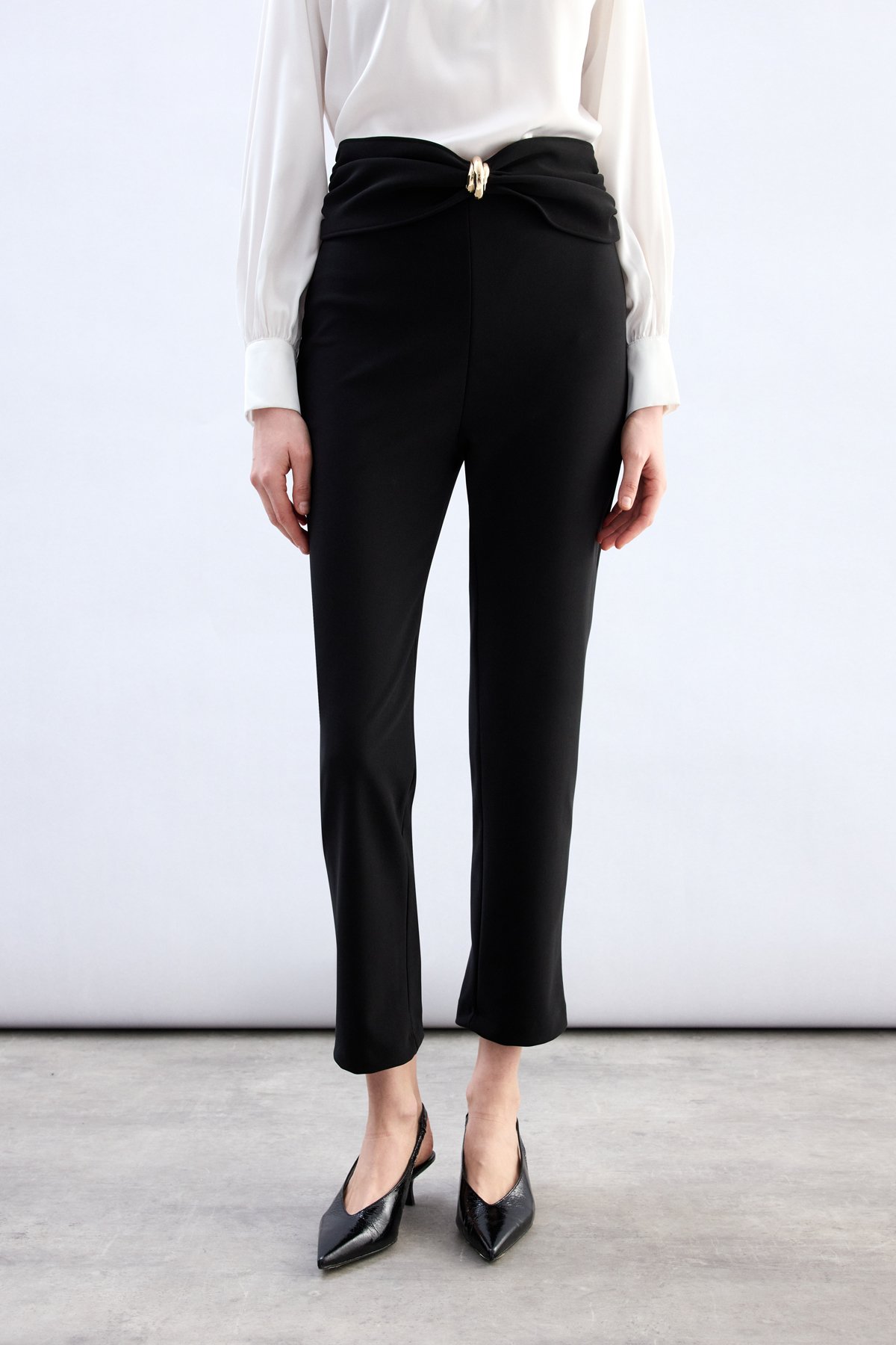 Bel Aksesuarlı Pantolon - Siyah