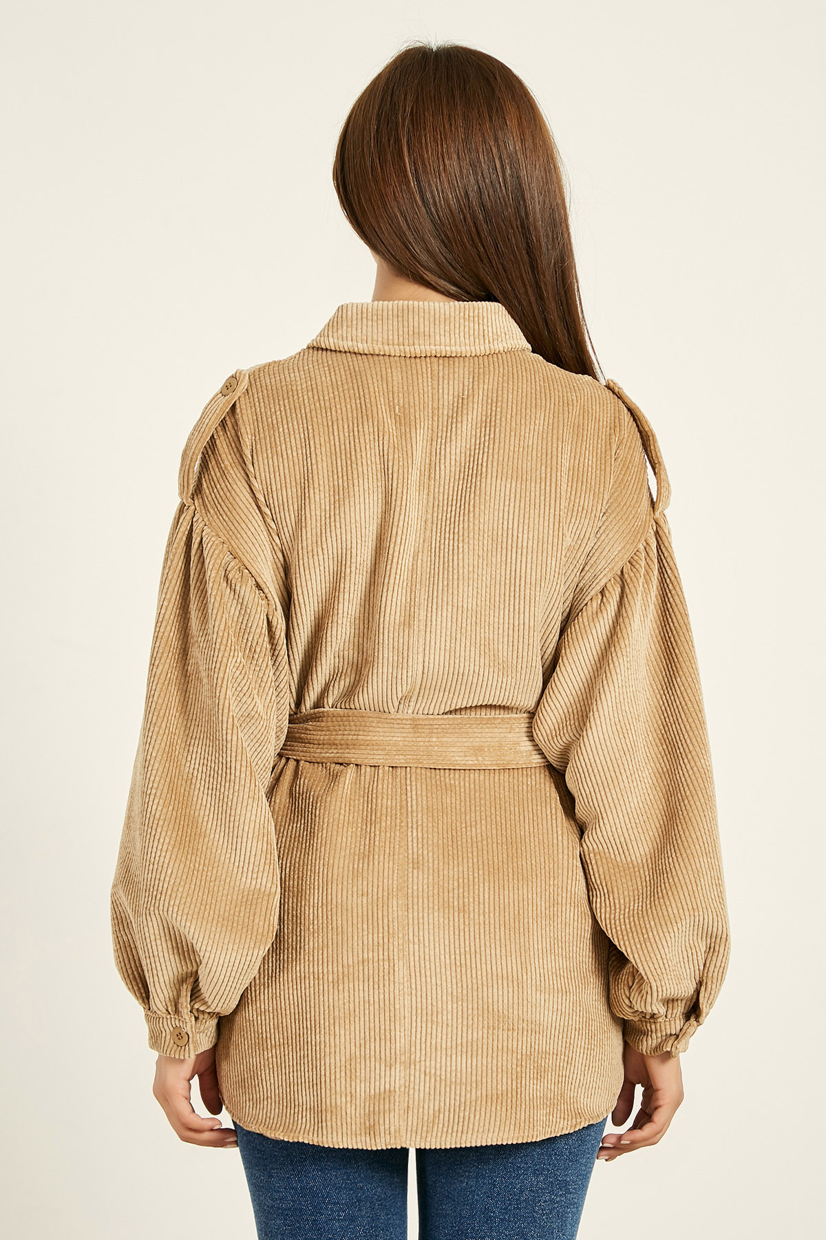 *Kadife Ceket*Ön Düğmeli*Kuşak Detaylı*Omuz Detay*Çift Cepli*Uzun Kol*Tam Kalıp%100 Pamuk*Boy Uzunluğu: 79cmNumune Bedeni: 36/S/1Modelin Ölçüleri :Boy:1,74, Göğüs:89, Bel:59, Kalça:93