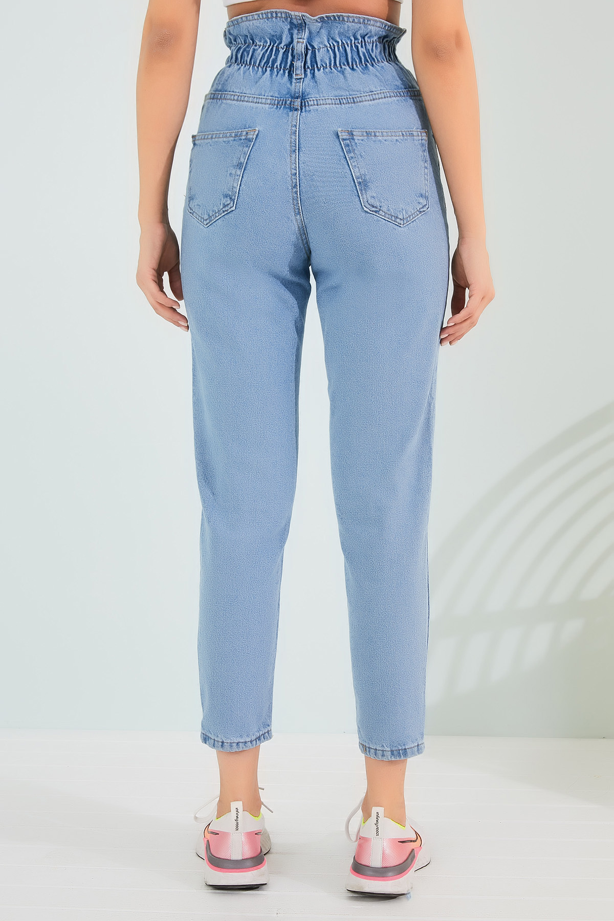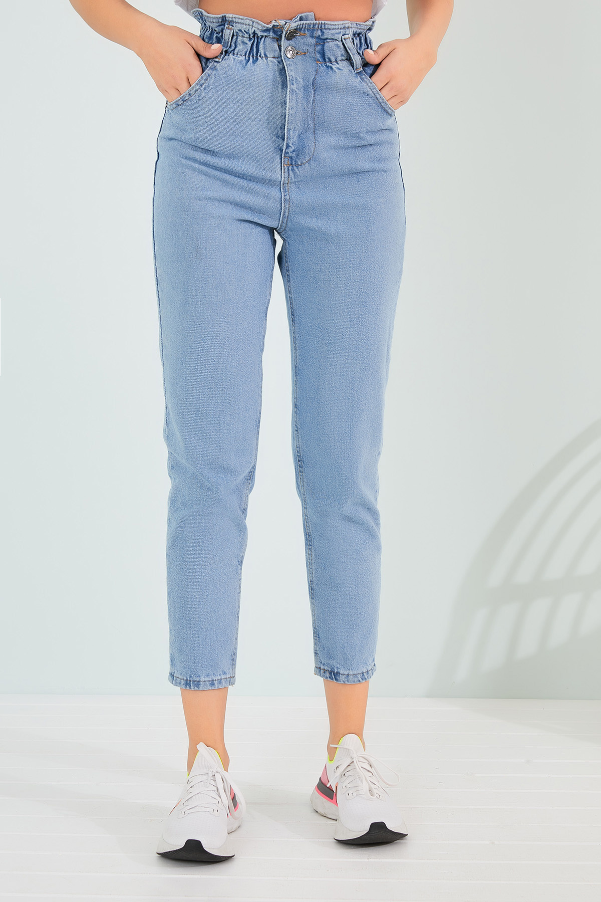 Yüksek-lastikli bel, fermuarlı-düğmeli kapama, çift cepli, düz paça, tam kalıp jean pantolon.PamukBoy Uzunluğu: 100 cmModelin Üzerindeki Ürün 25 Bedendir.Modelin Ölçüleri : Boy:1,74, Göğüs:89, Bel:59, Kalça:93