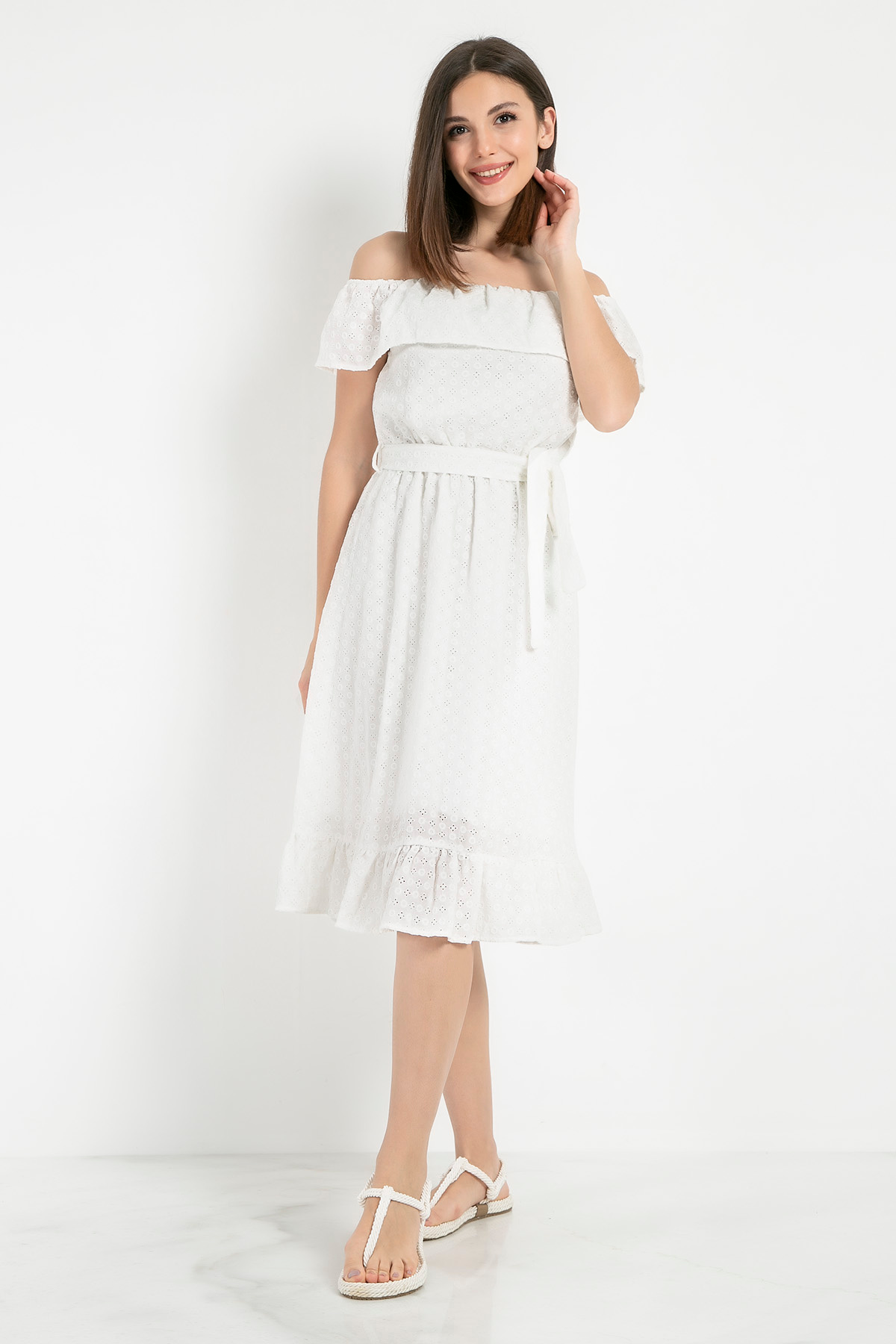 %100 Pamuk*Madonna-Volanlı Yaka*Bel Lastikli-Bağlamalı *Etek Ucu Volanlı *Astarlı *Fistolu*Midi Boy*Rahat Kalıp Boy Uzunluğu:99 cm Numune Bedeni: 36/S/1Modelin Ölçüleri : Boy:1,74, Göğüs:88, Bel:64, Kalça:94Konsept çekimlerinde renkler ışık farklılığından dolayı değişiklik gösterebilir, stüdyo çekimlerindeki renkleri esas almanız önerilir.