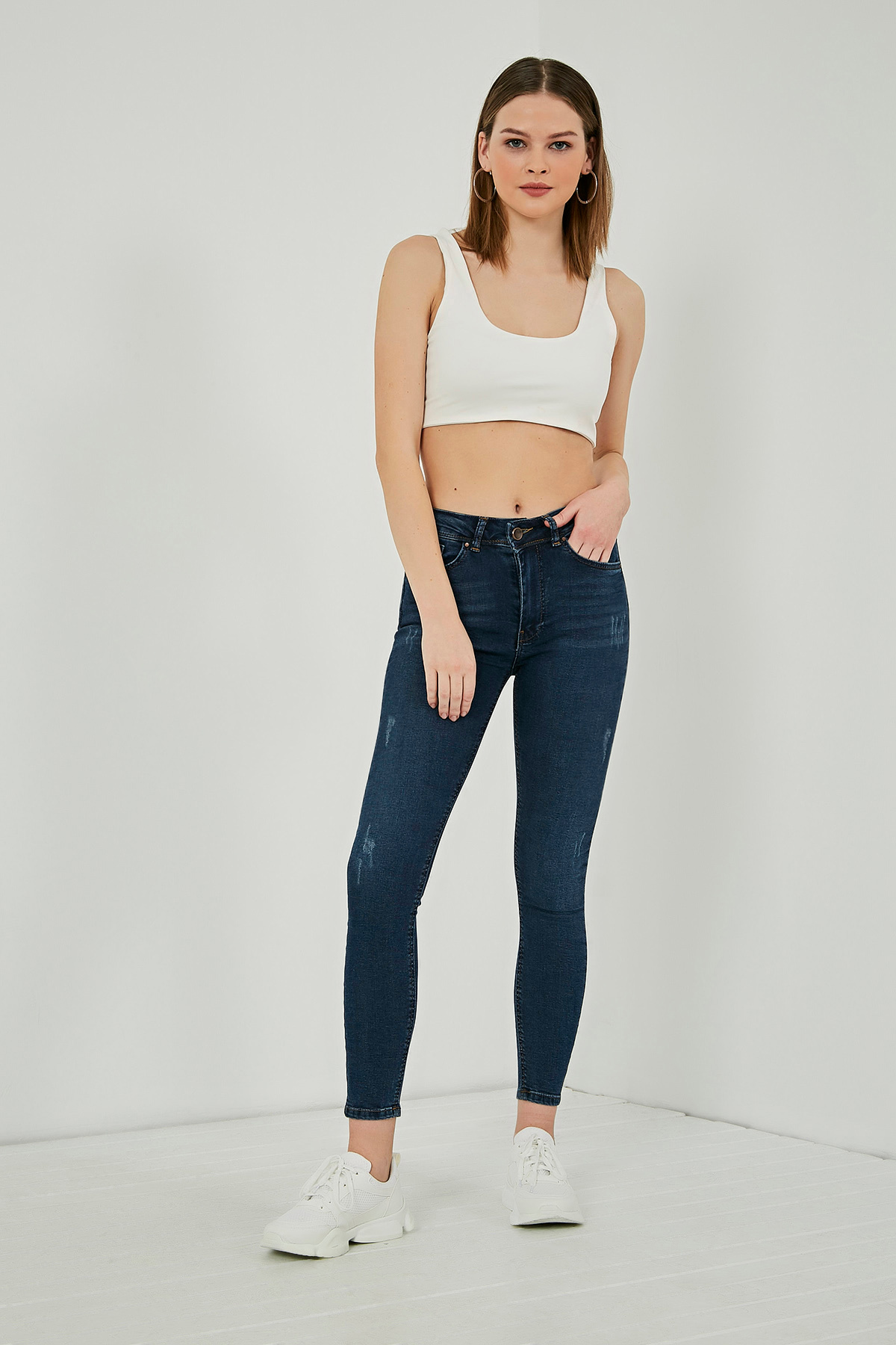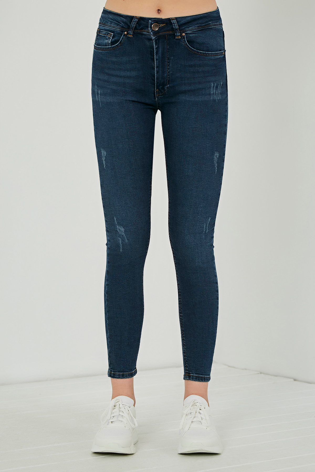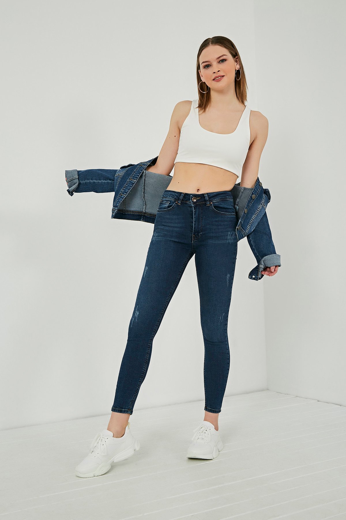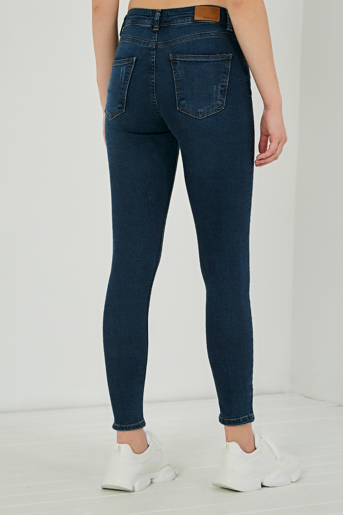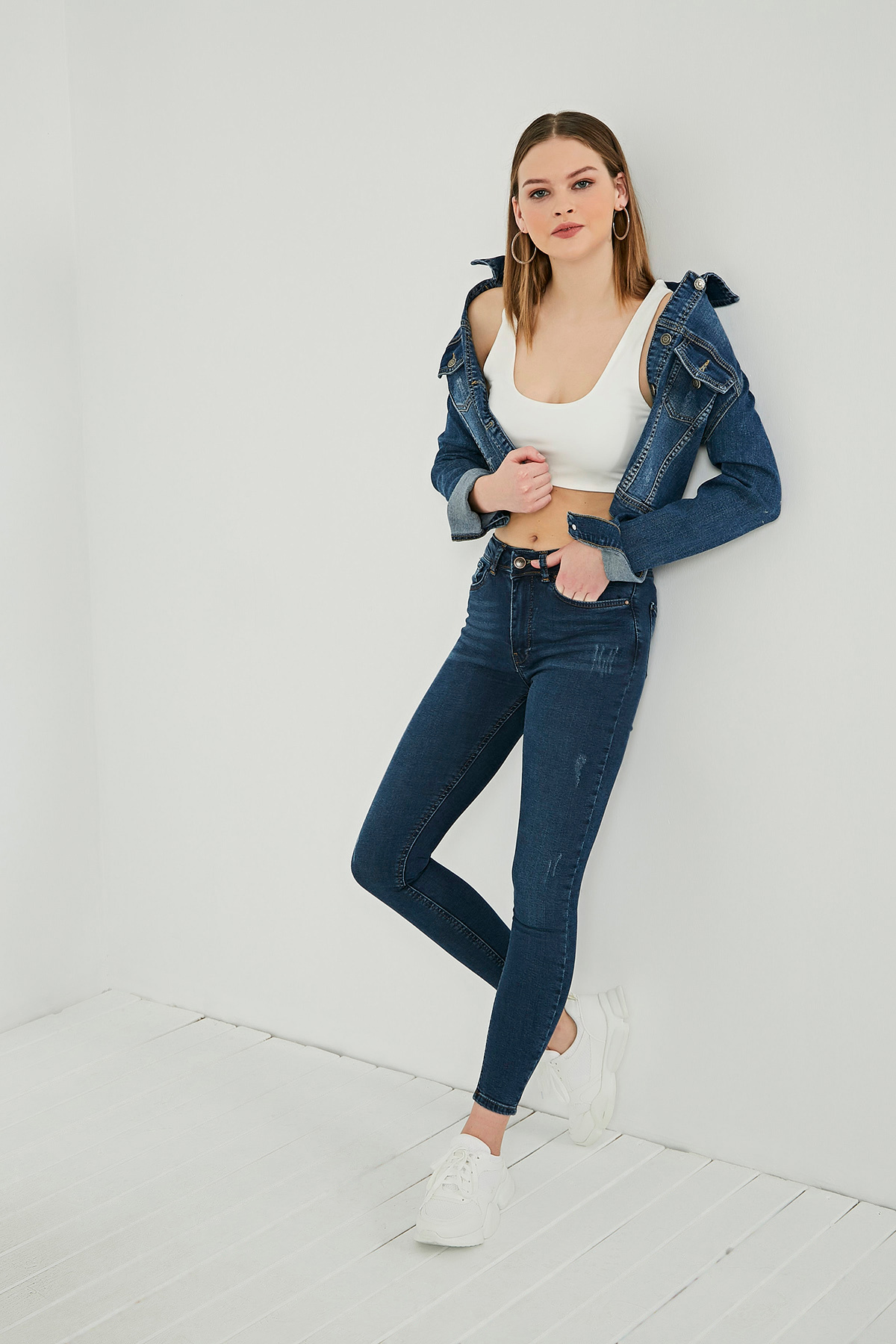 Yüksek bel, düğme iliklemeli, fermuar kapama, beş cepli, dar paça, esnek, yırtık detaylı, tam kalıp kot pantolon. %65 Pamuk %35 Likra Boy Uzunluğu: 93 cm Modelin Üzerindeki Ürün 27 Modelin Ölçüleri:Boy:1,74, Göğüs:89, Bel:59, Kalça:93