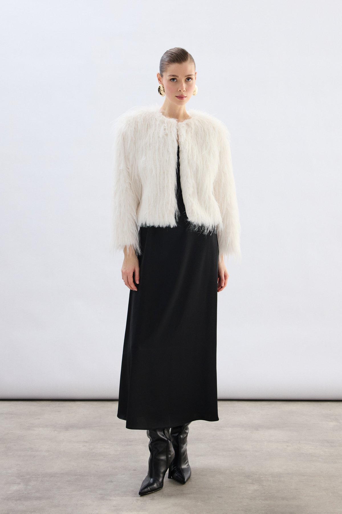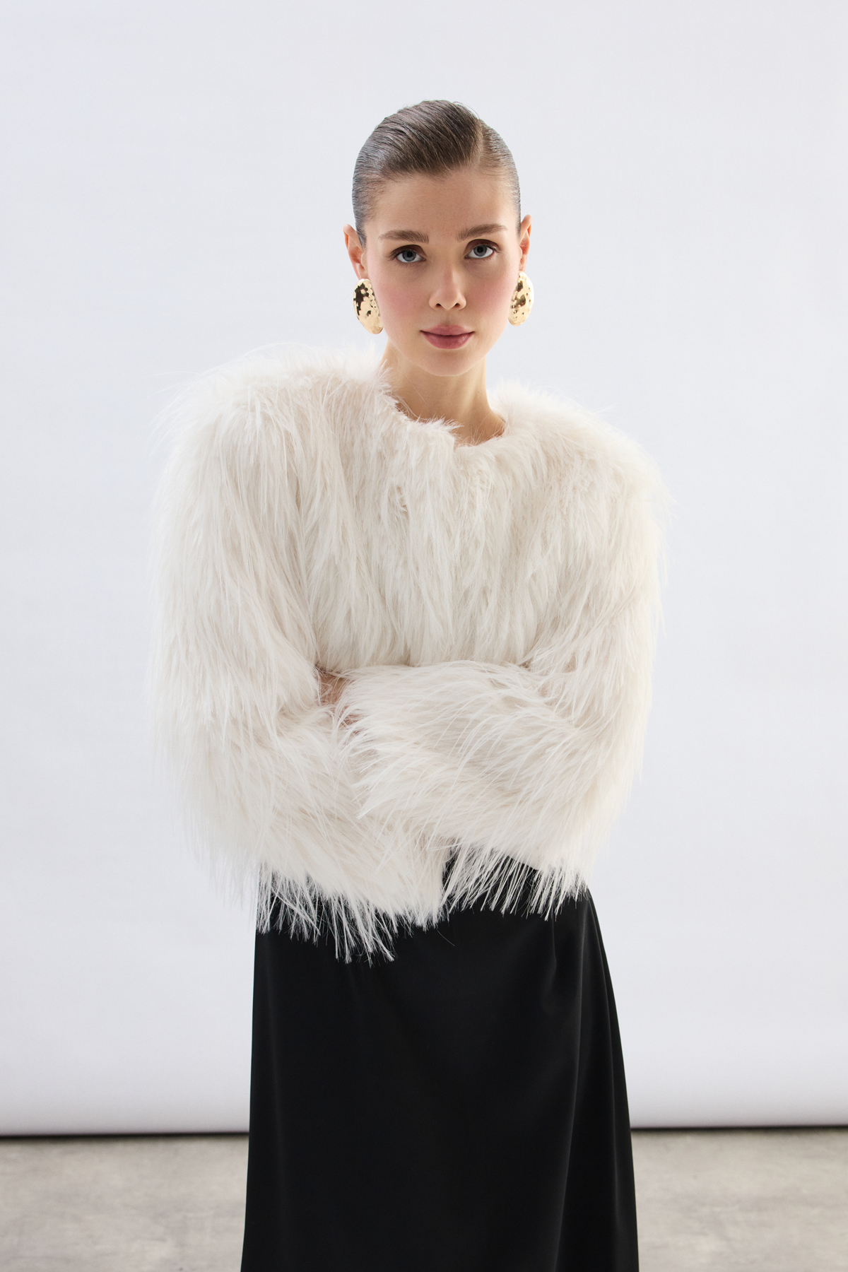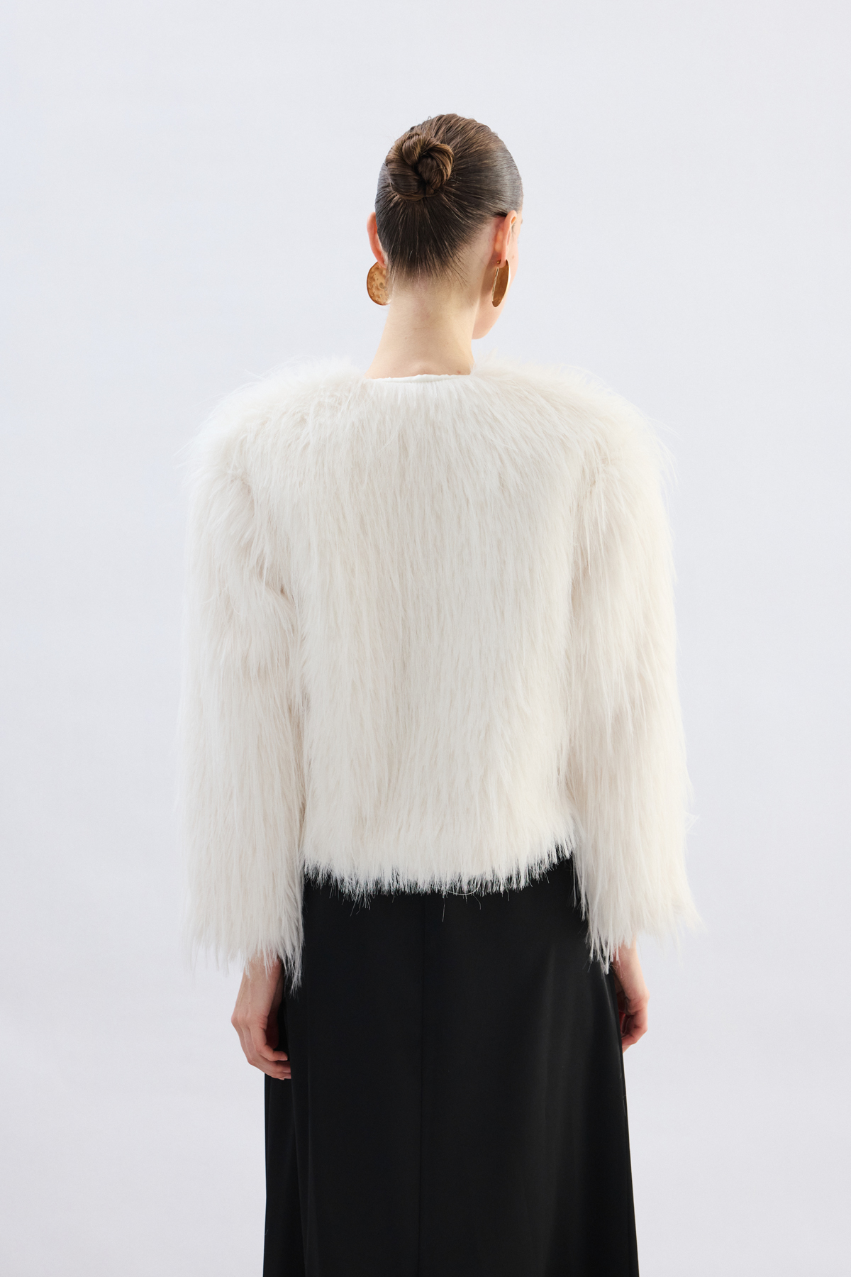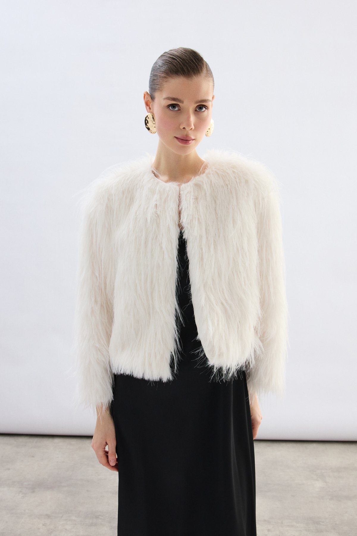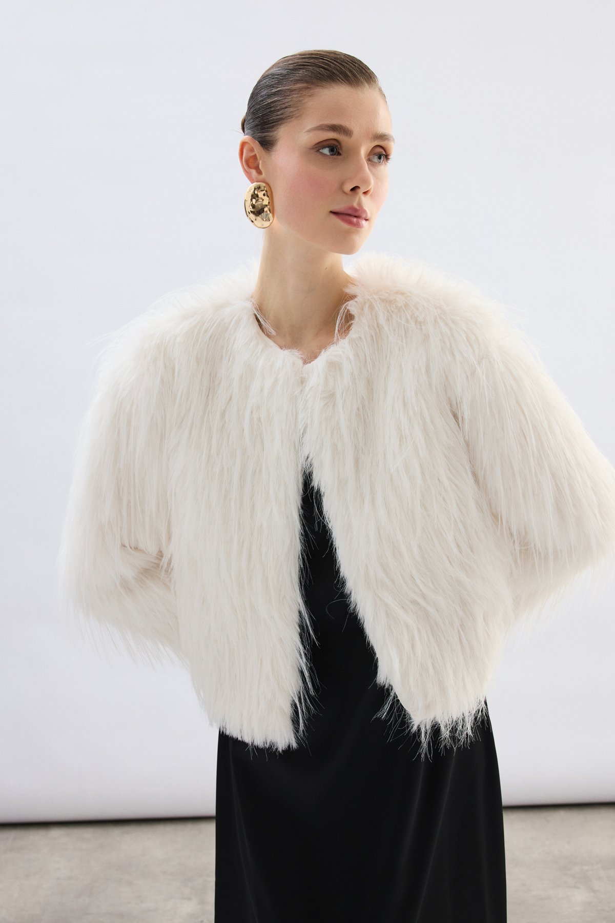 Bisiklet Yaka Suni Kürk - Ekru