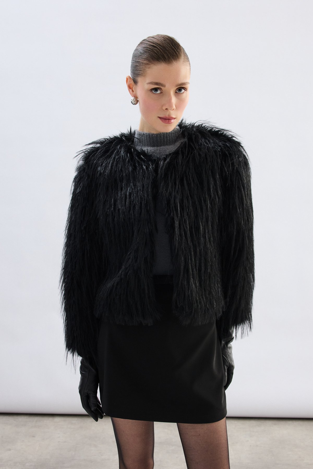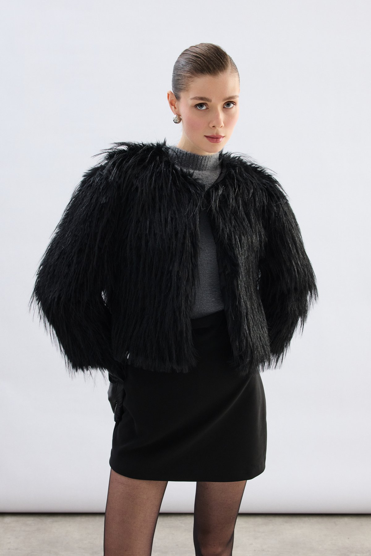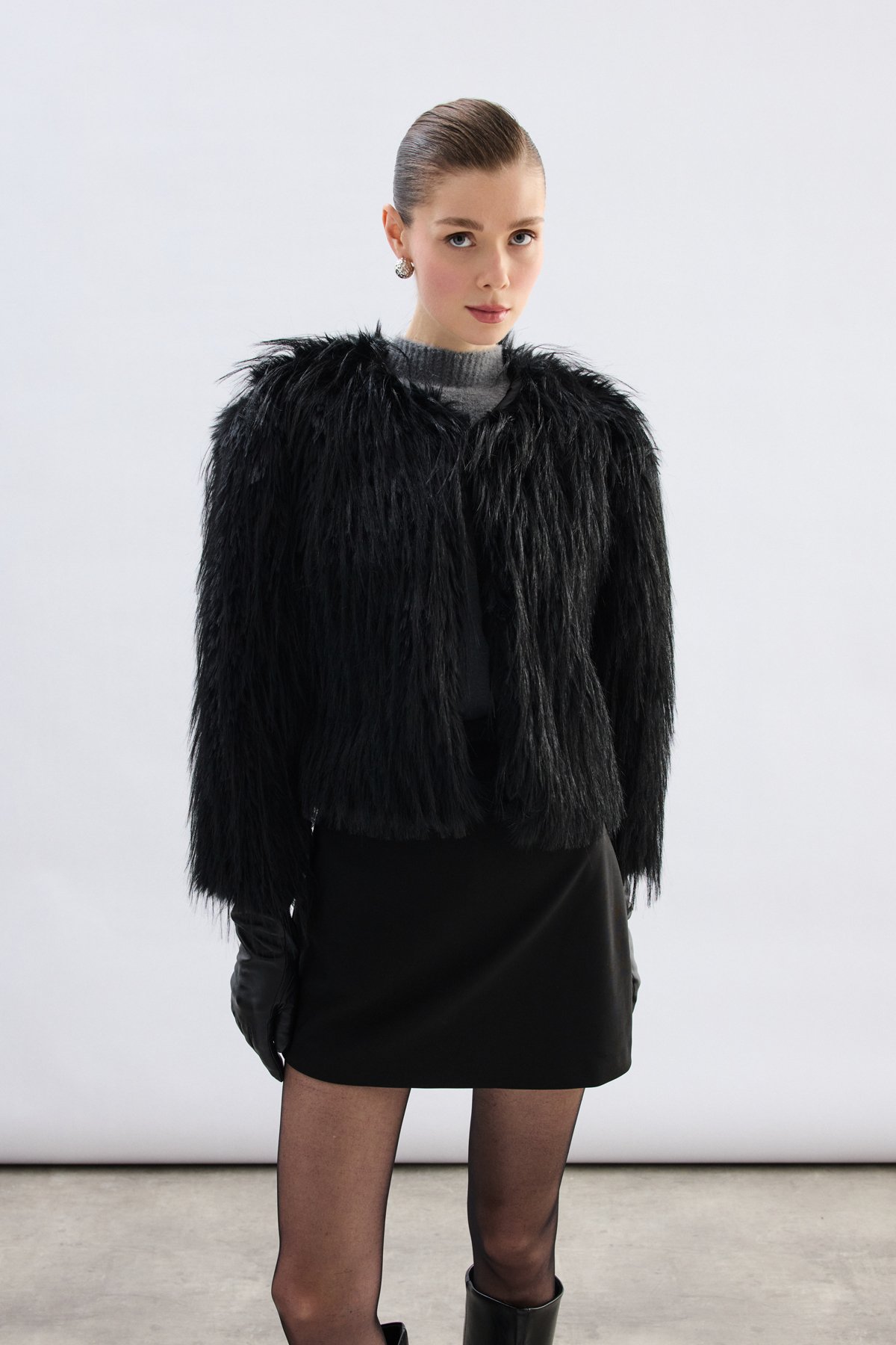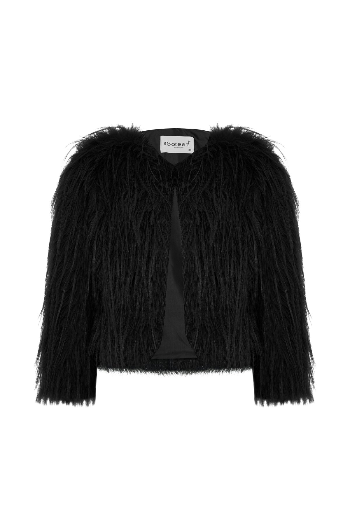 Bisiklet Yaka Suni Kürk - Siyah