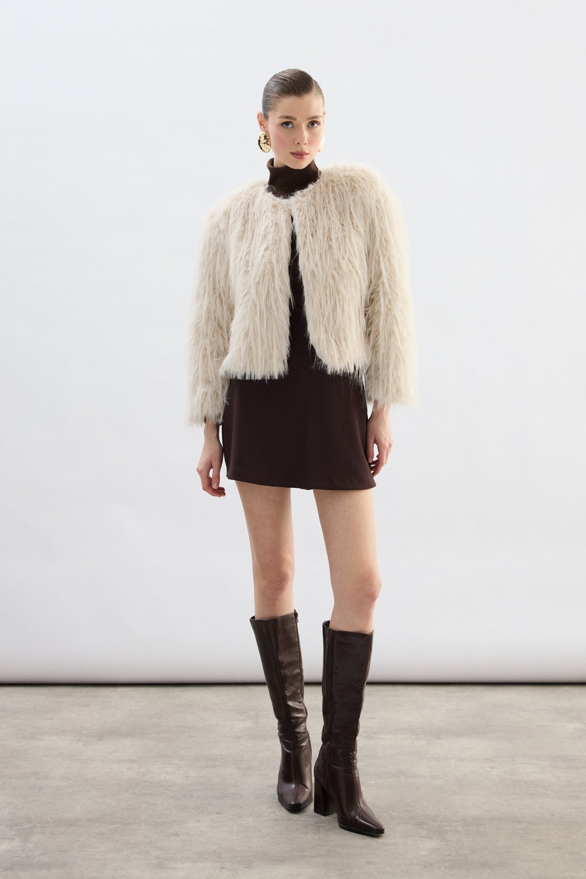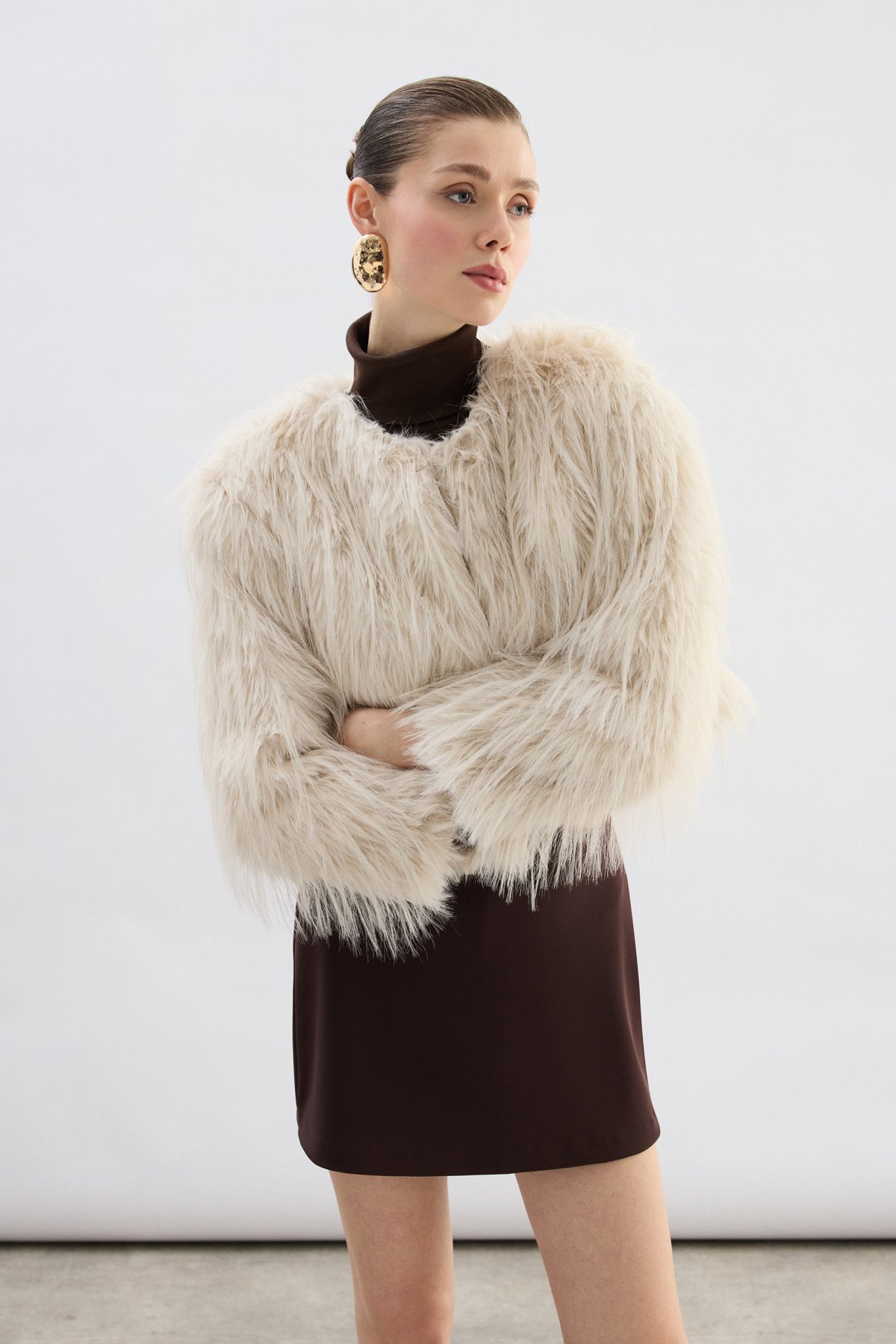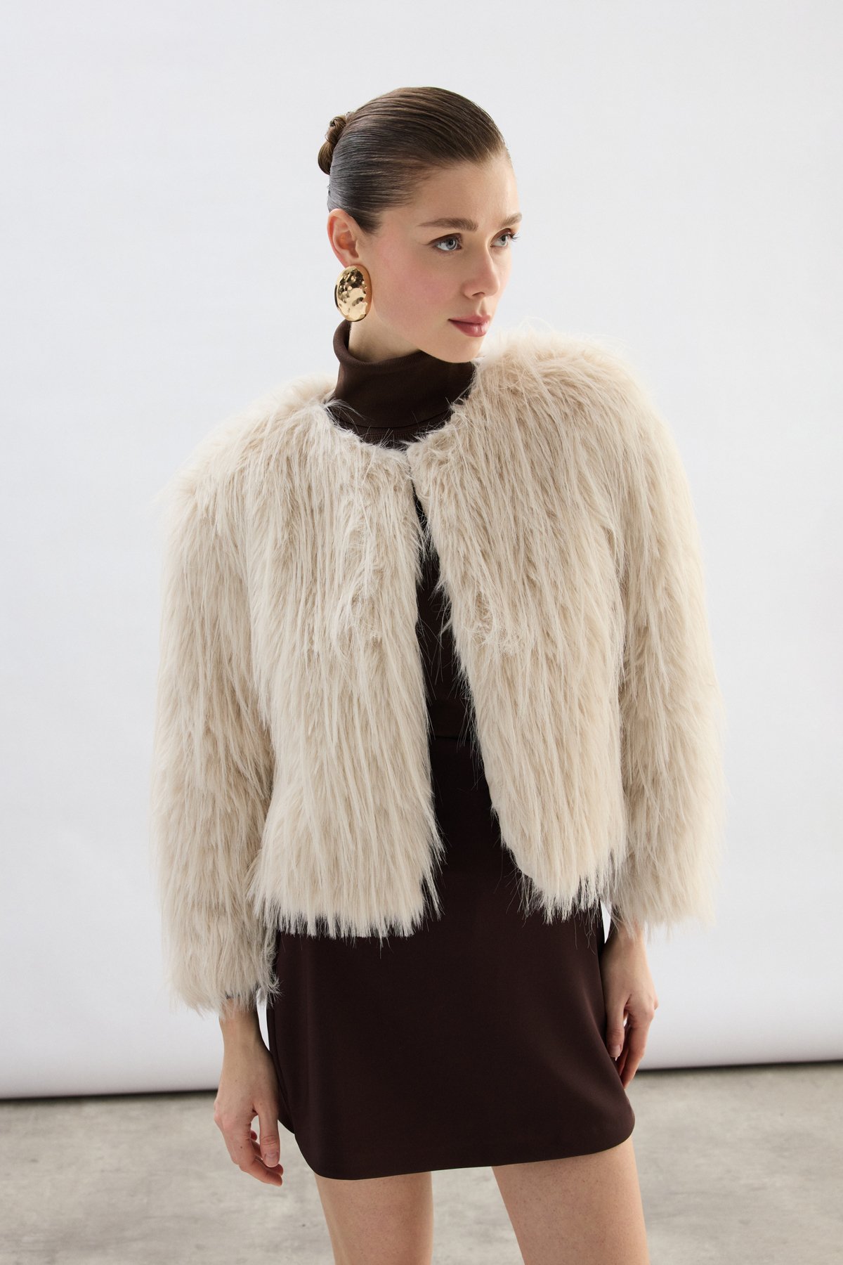 Bisiklet Yaka Suni Kürk - Taş