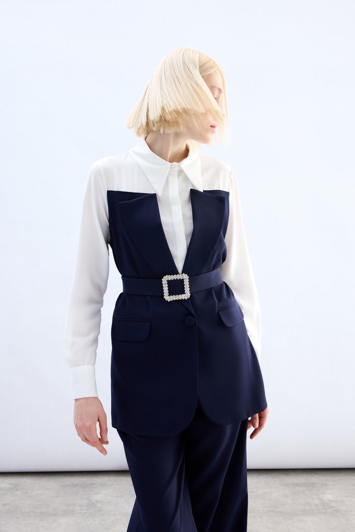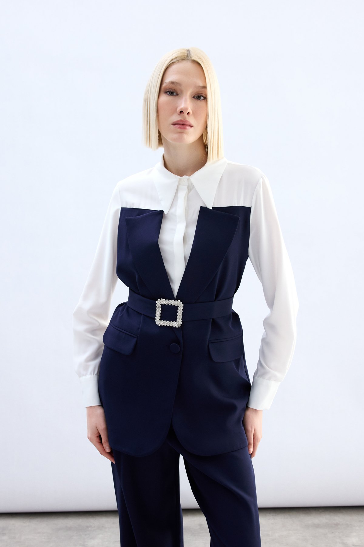 1828-2158 CEKET GÖRÜNÜMLÜ KONTRAST GÖMLEK