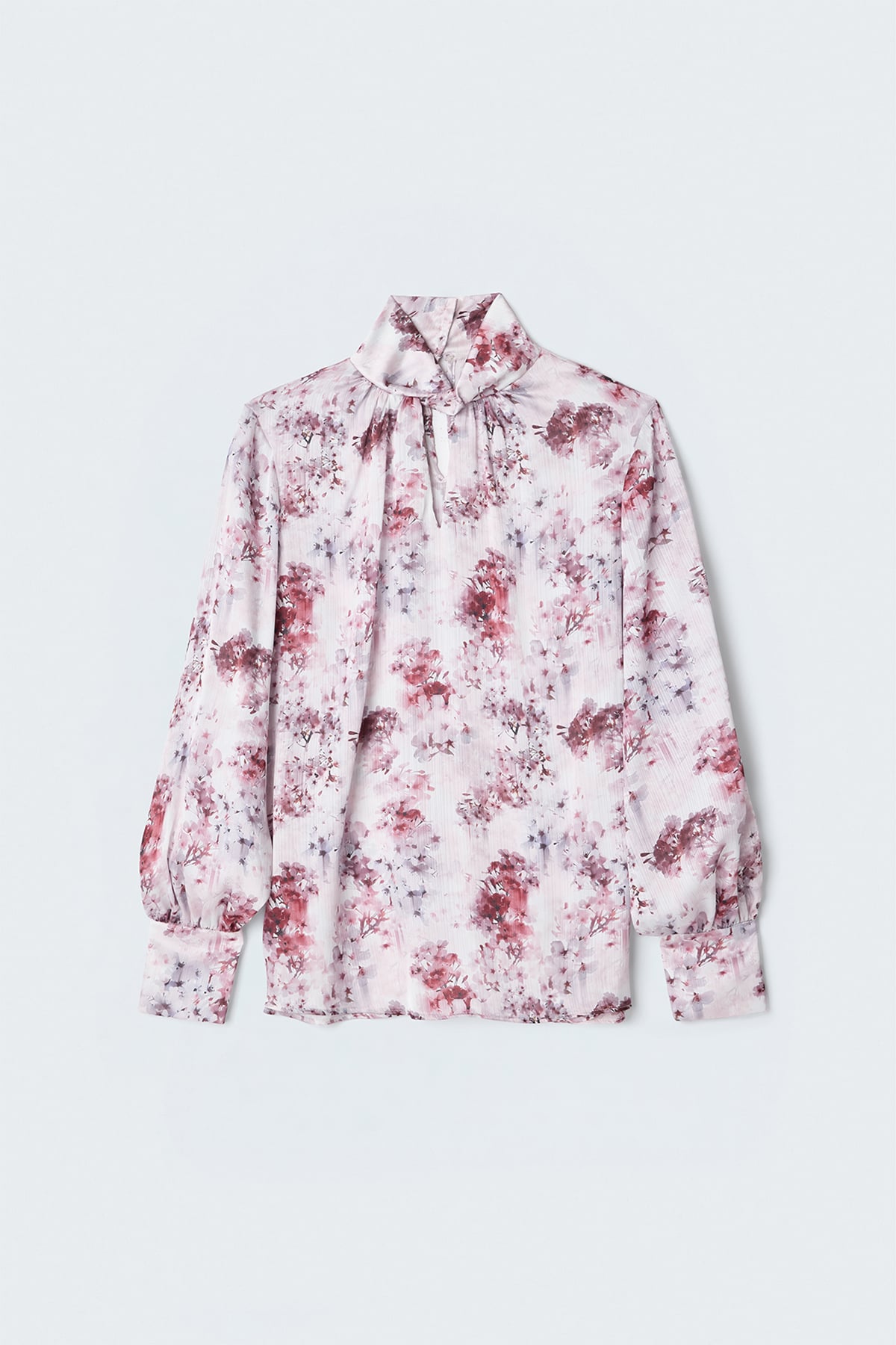 Çiçek Desenli Bluz - Mürdüm