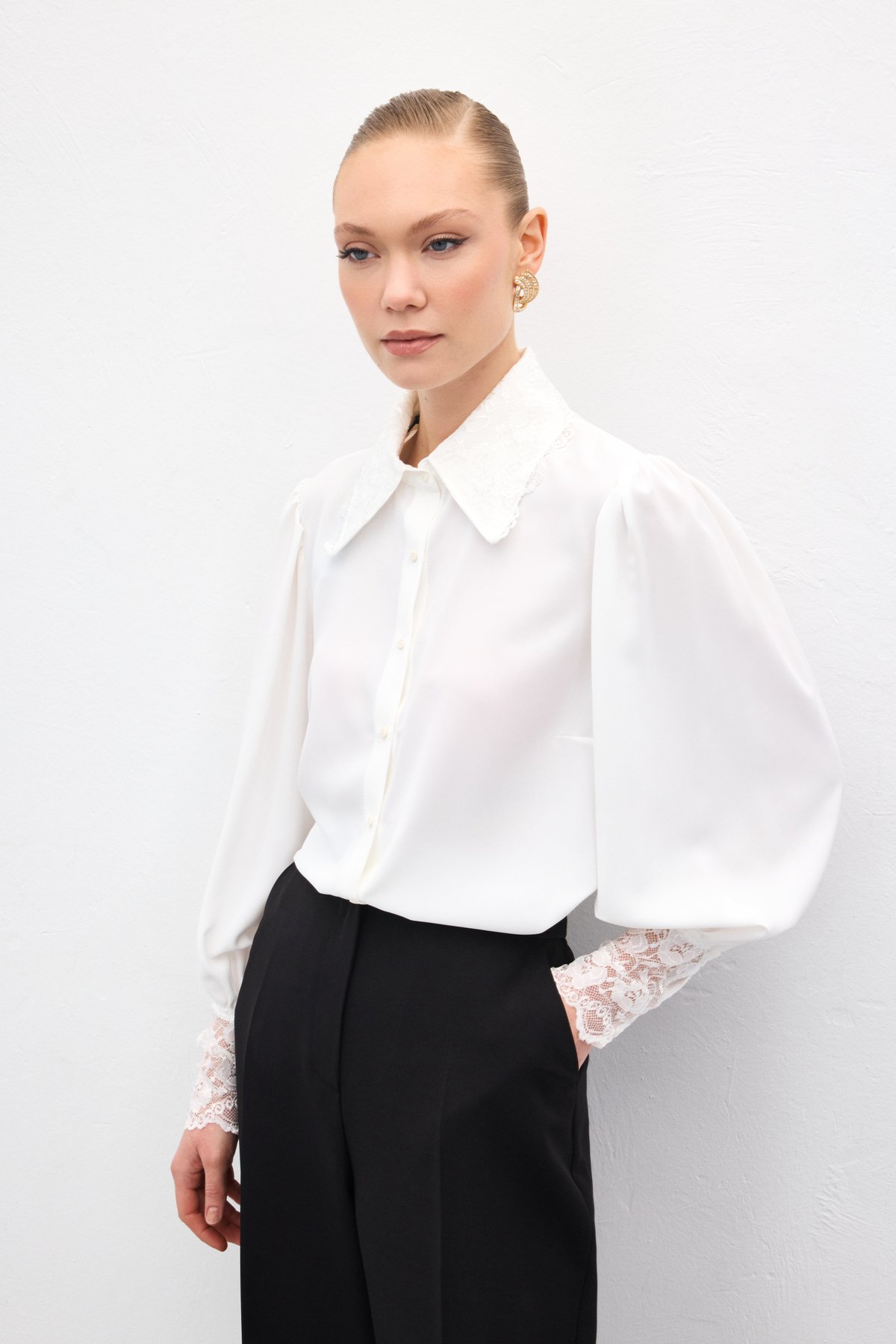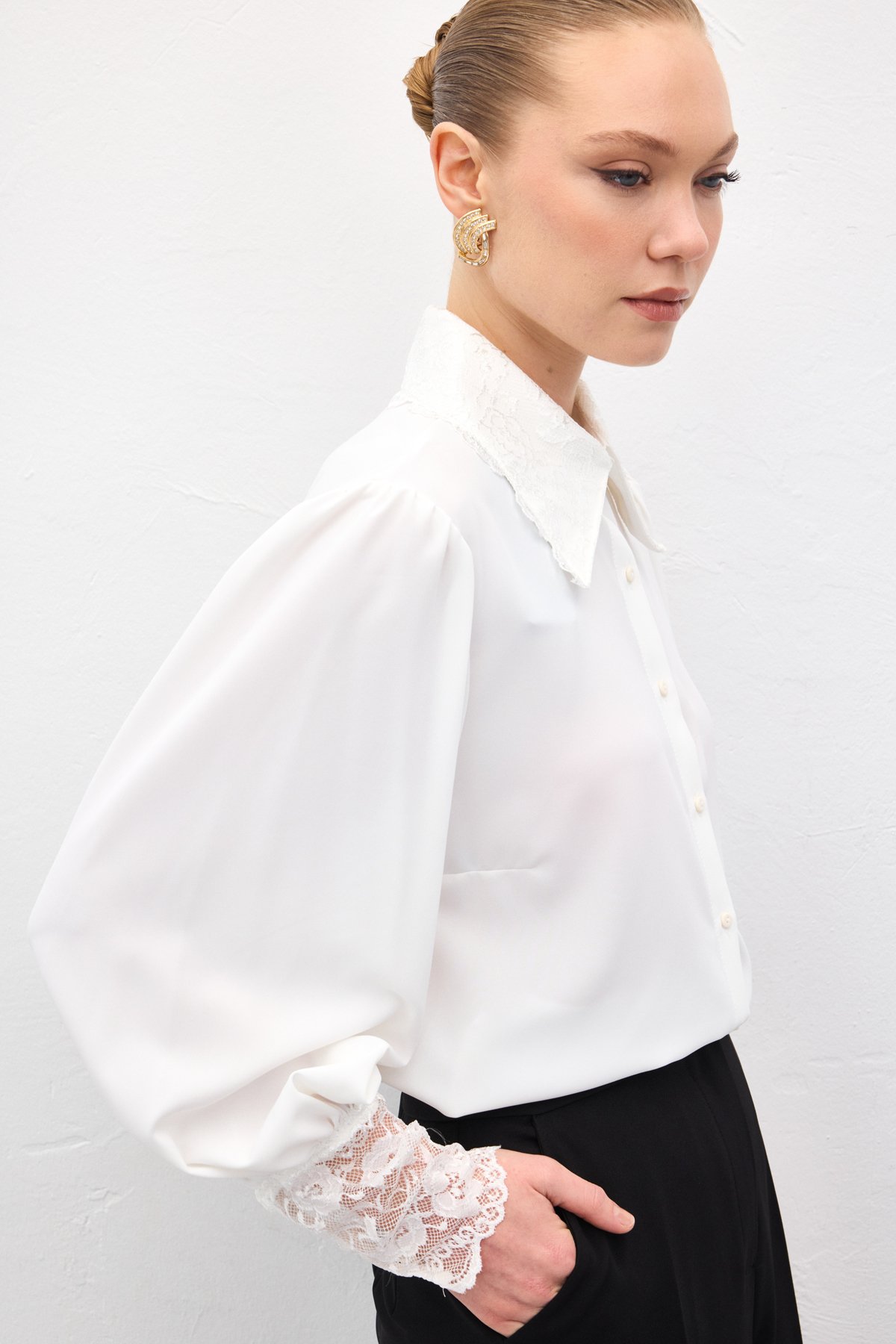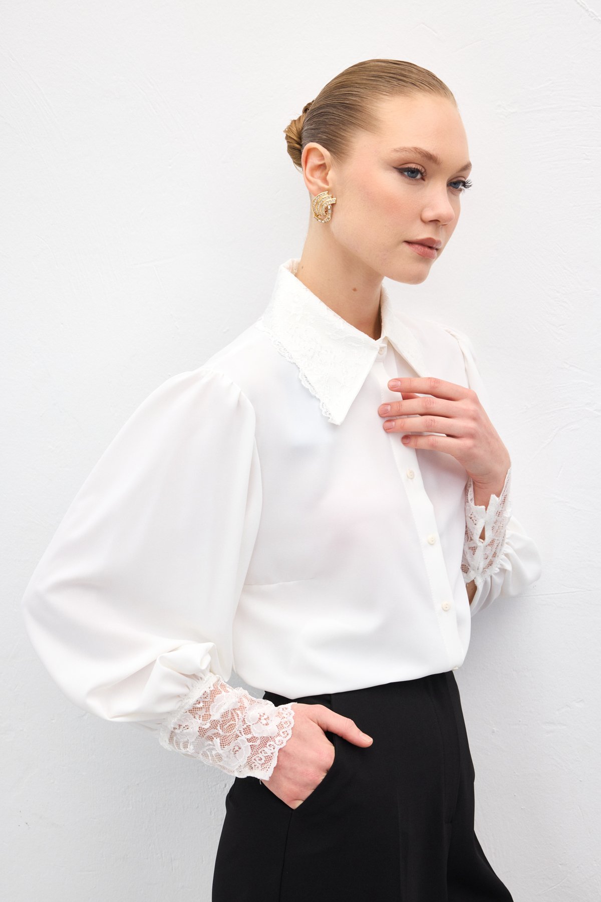 2117-2182 DANTEL MANŞETLİ GÖMLEK