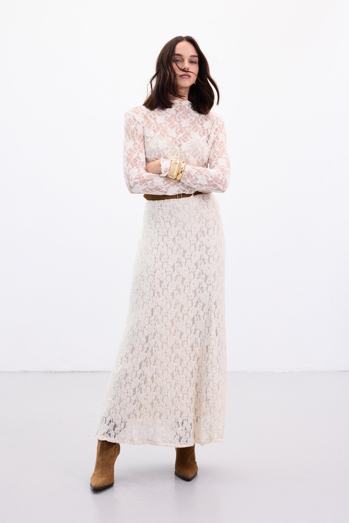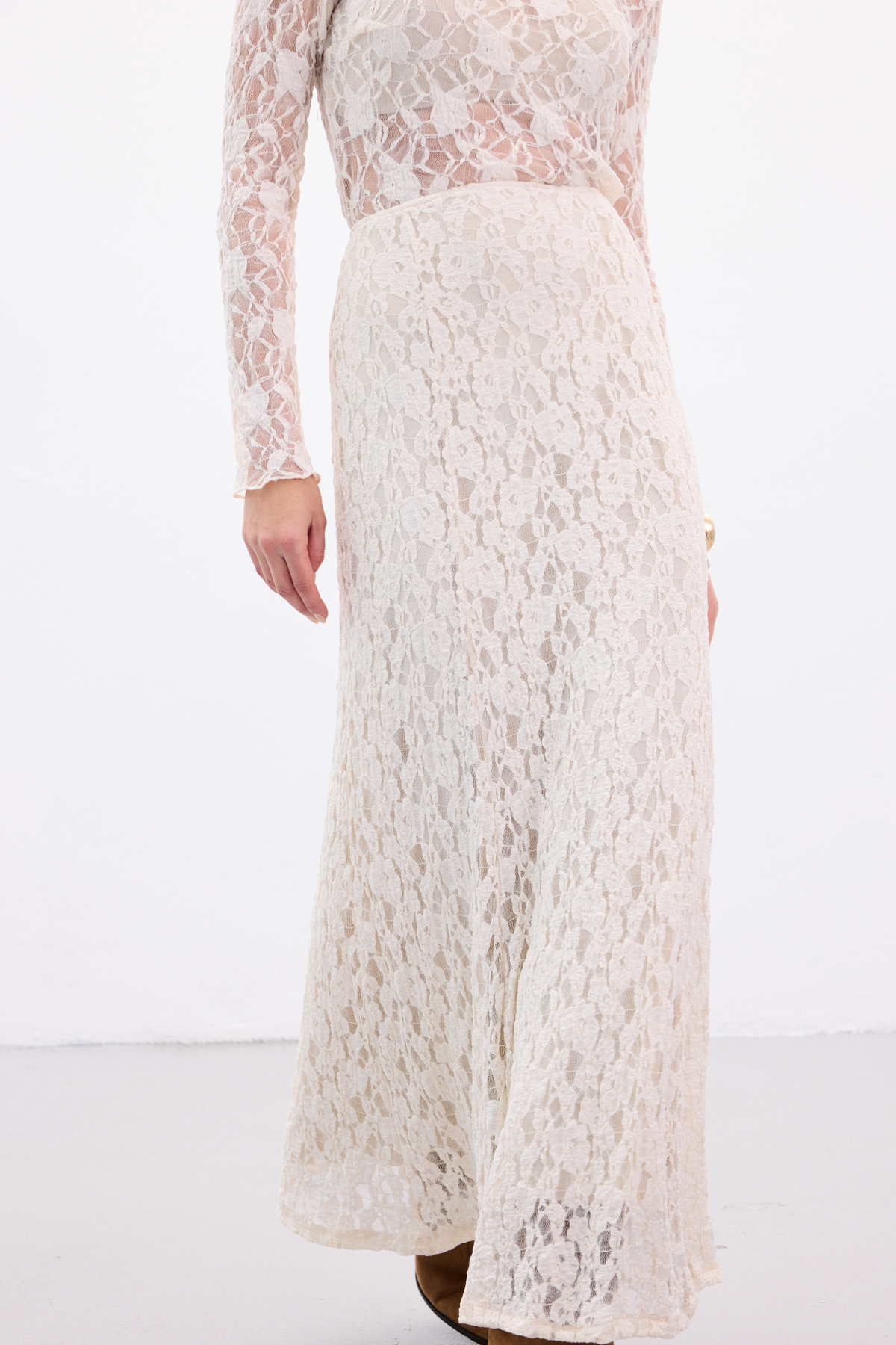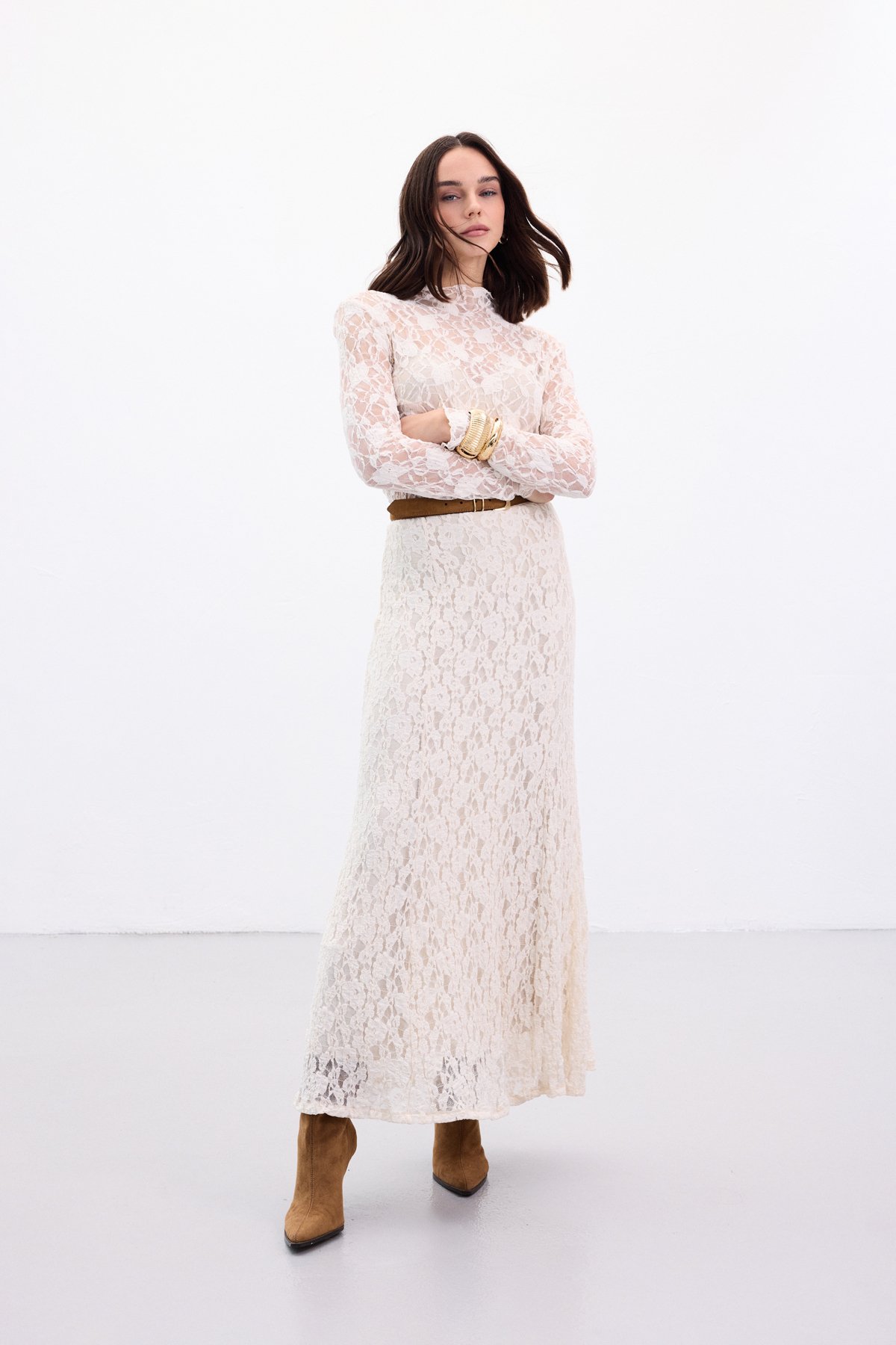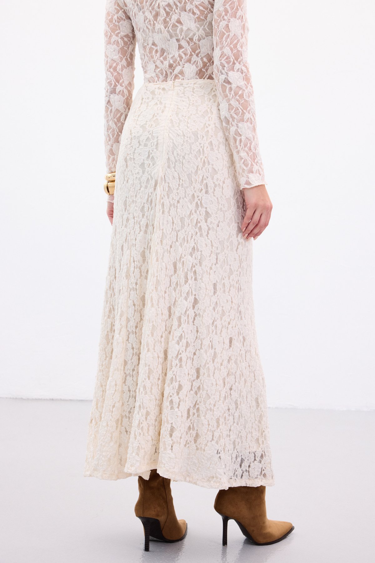 Dantelli Uzun Etek - Bej