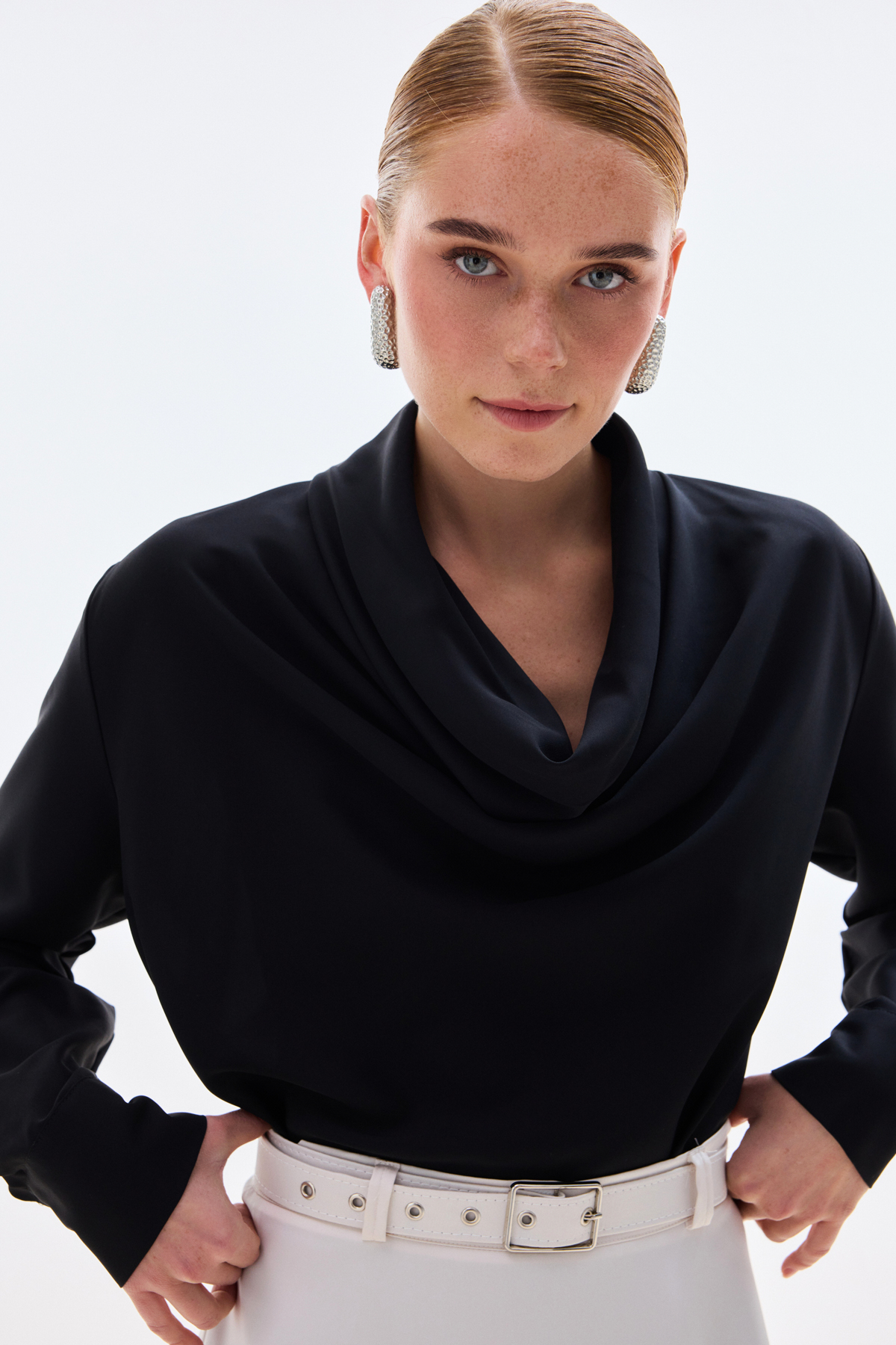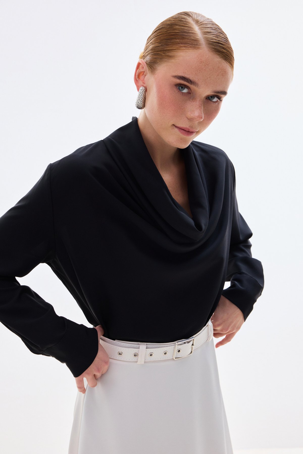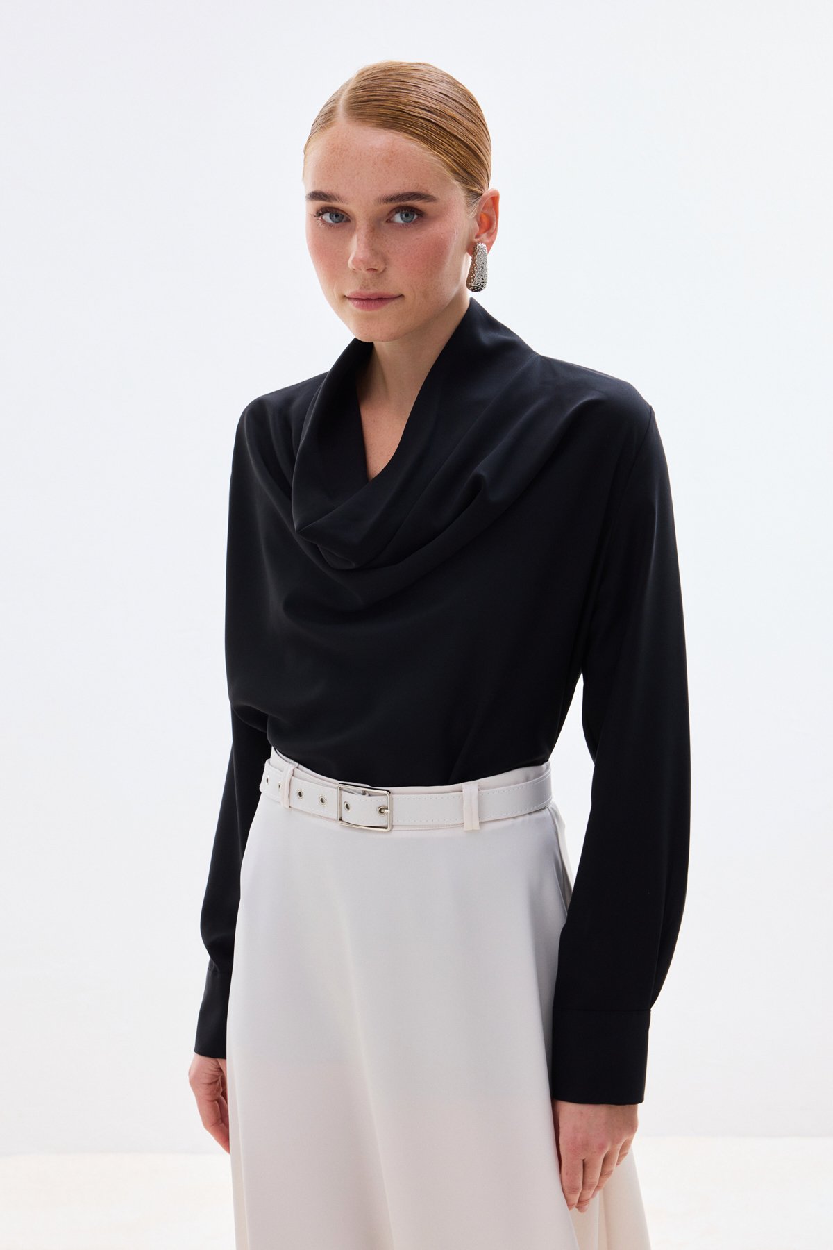 1904-1596 DEGAJE YAKA UZUN KOLLU BLUZ