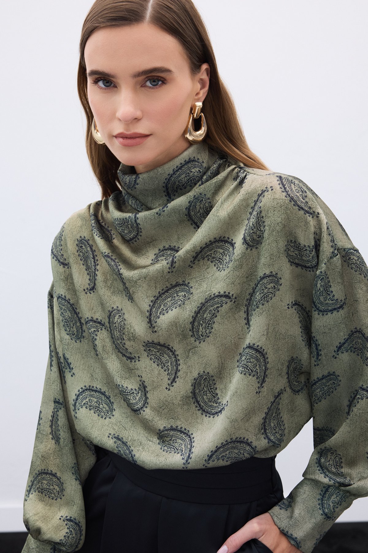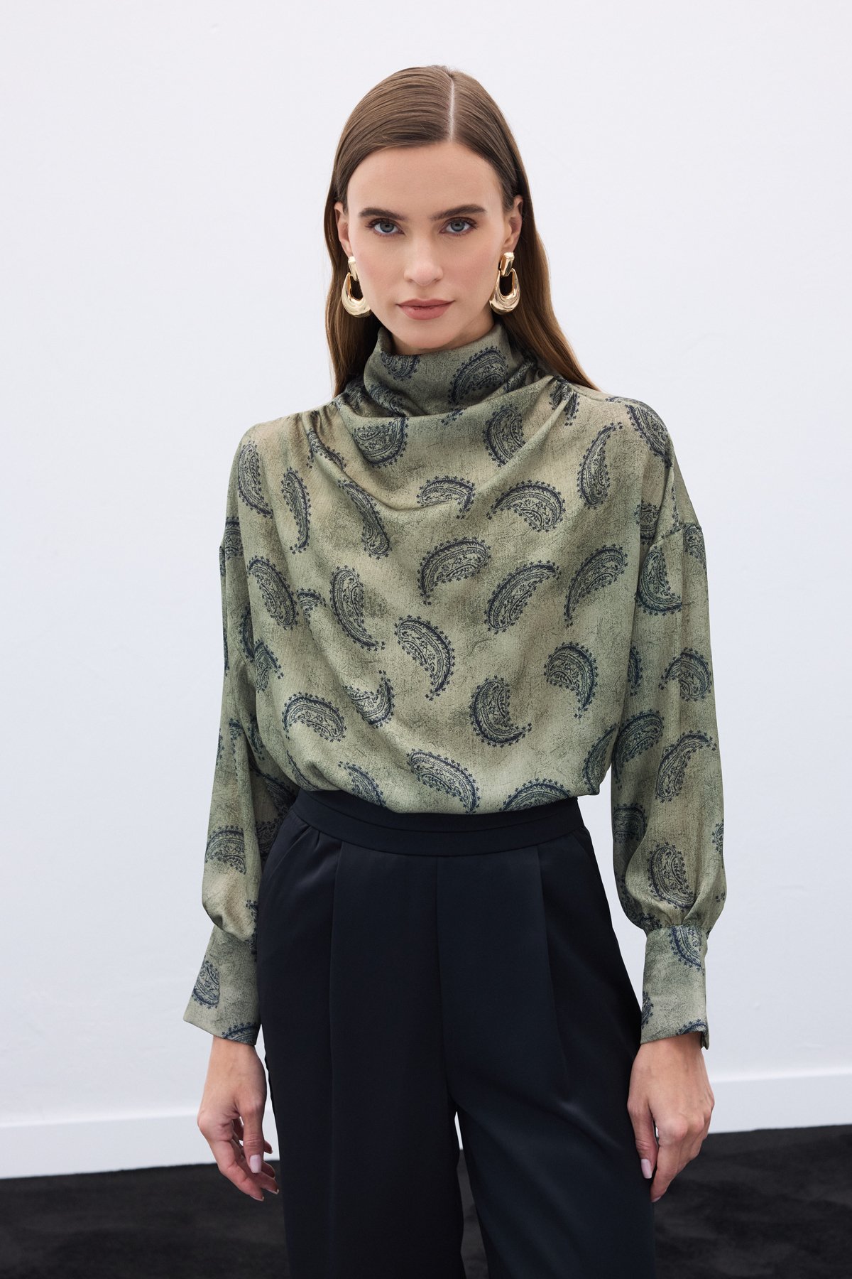 1907-1605 DİK DEGAJE YAKALI DESENLİ BLUZ