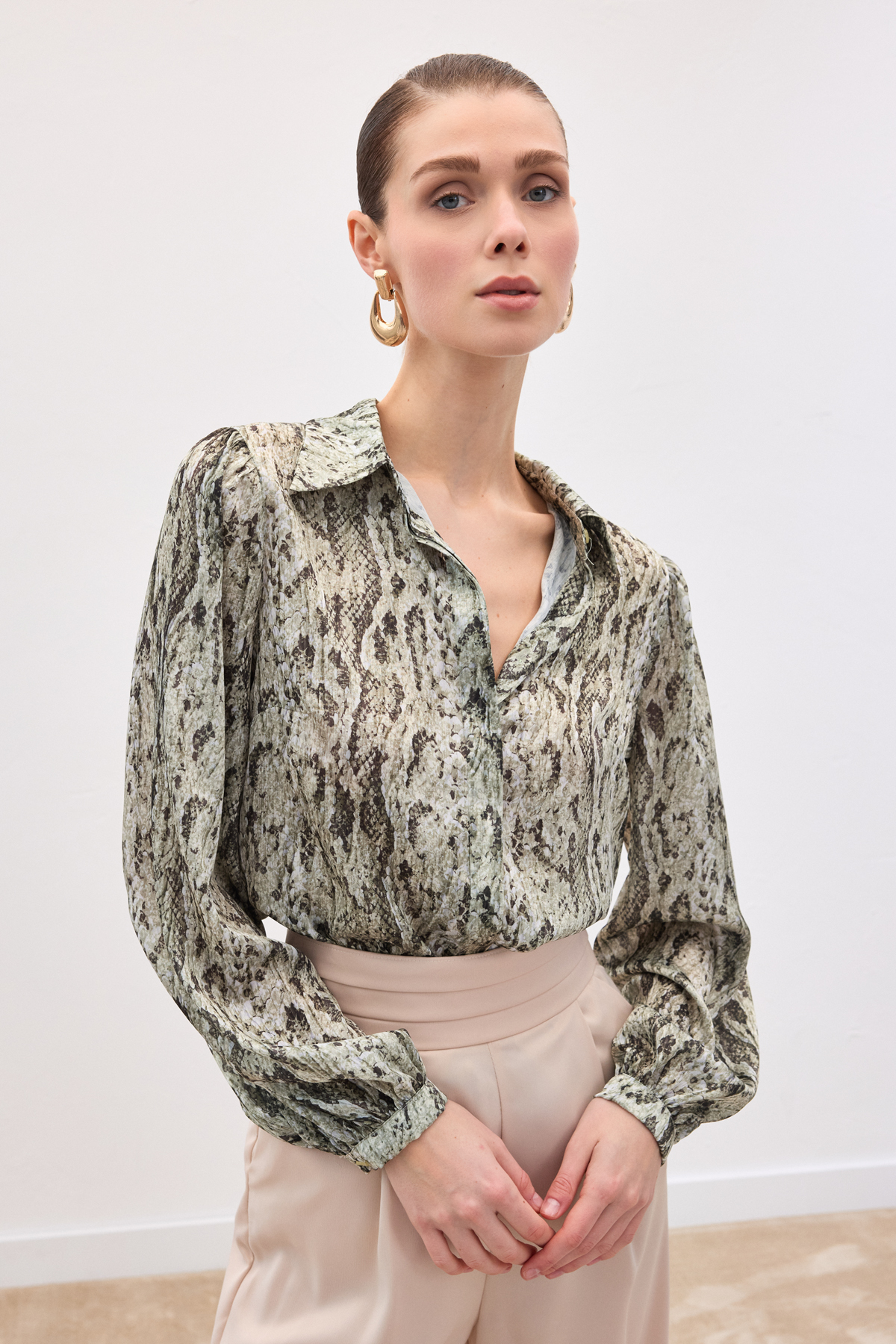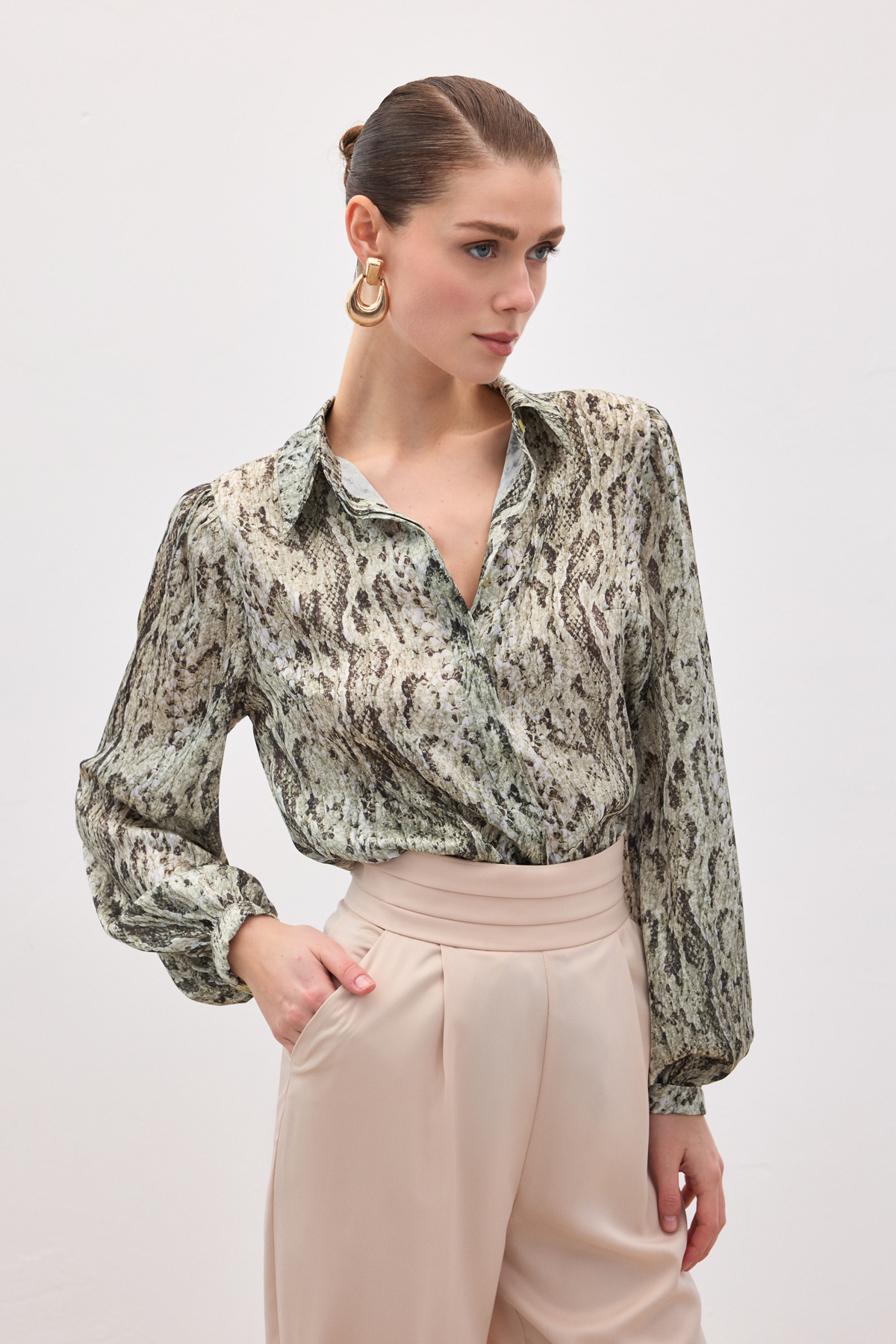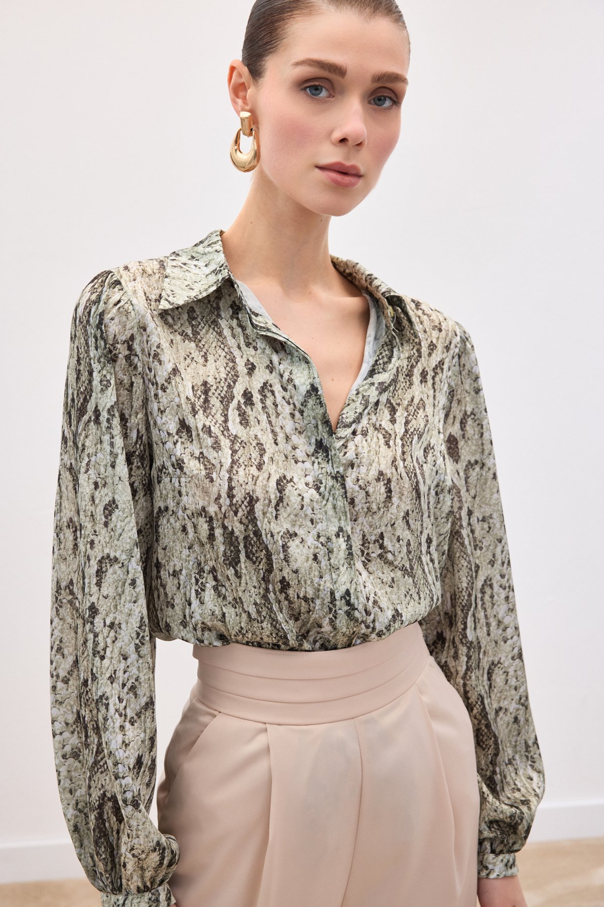 Desenli Gömlek - Haki