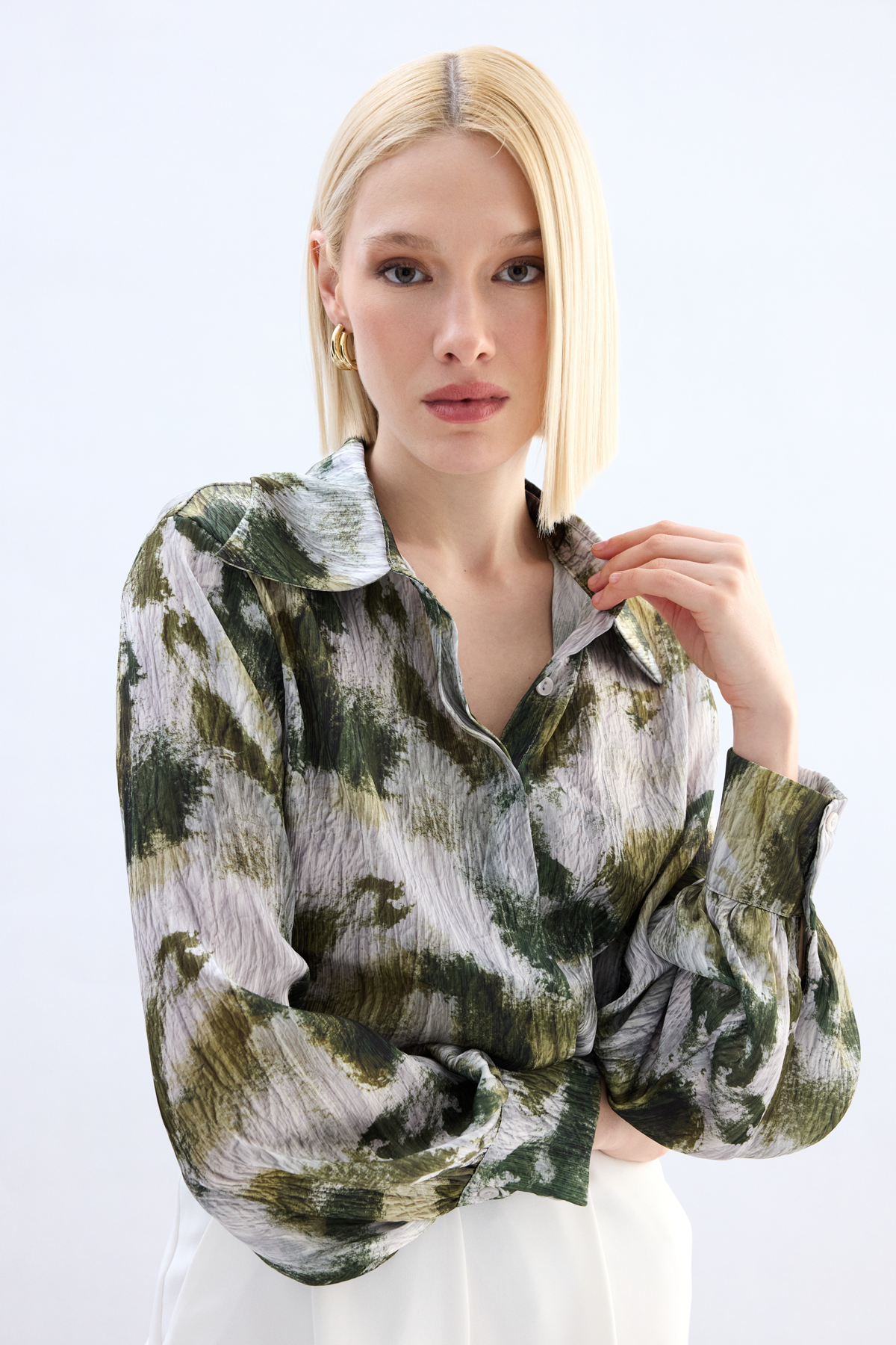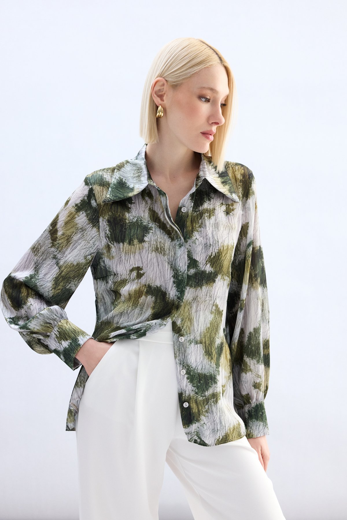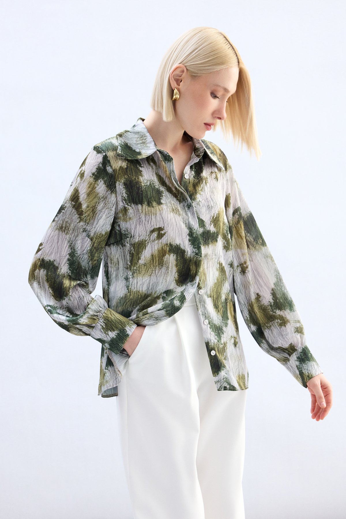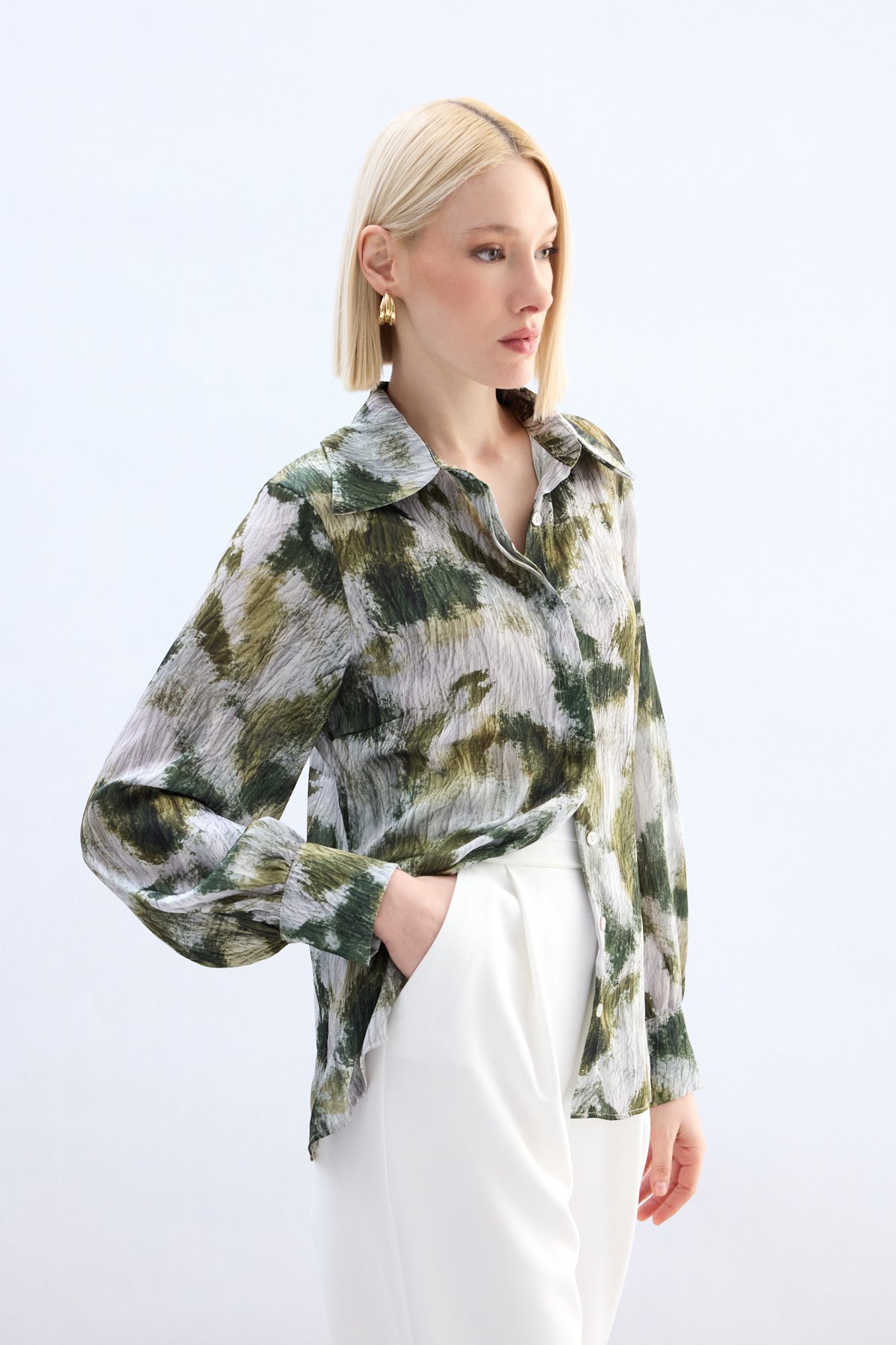 Desenli Gömlek - Haki
