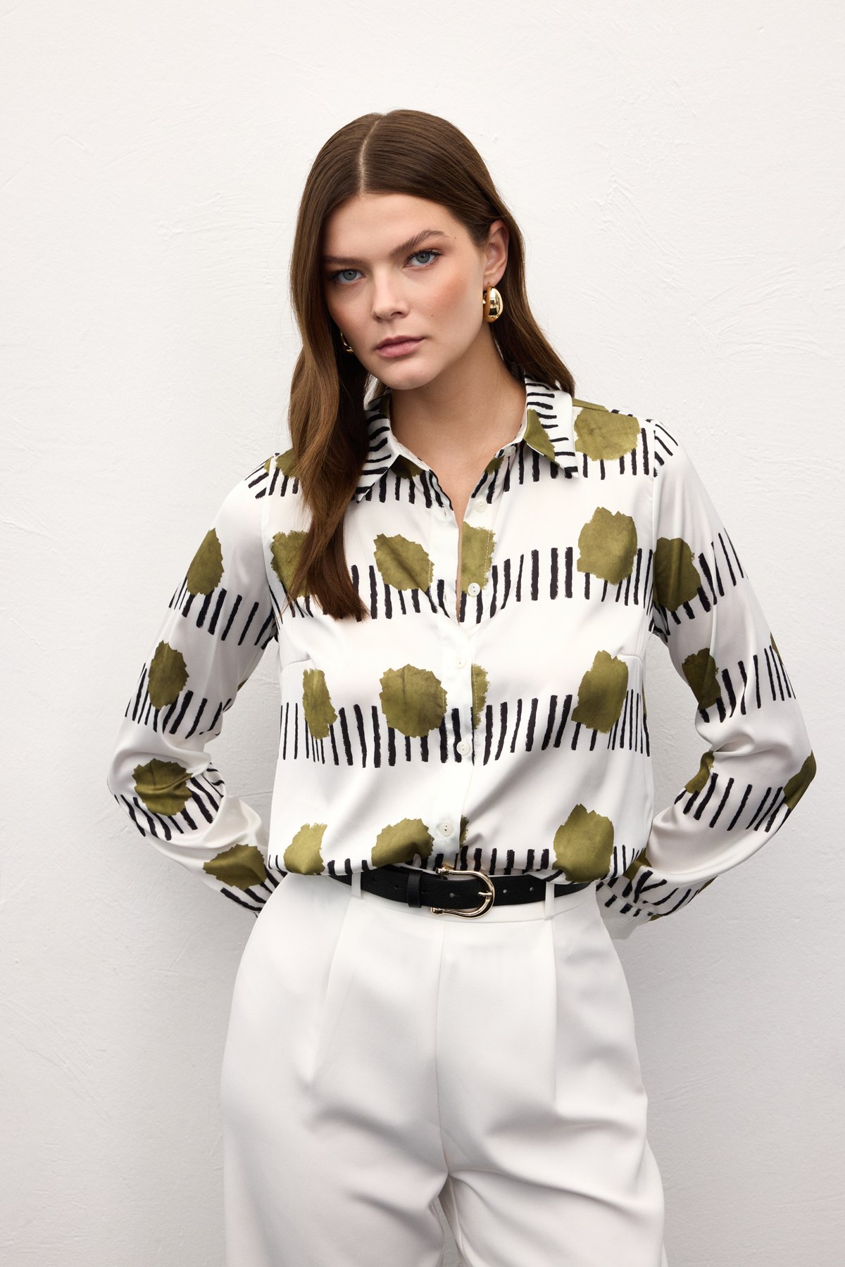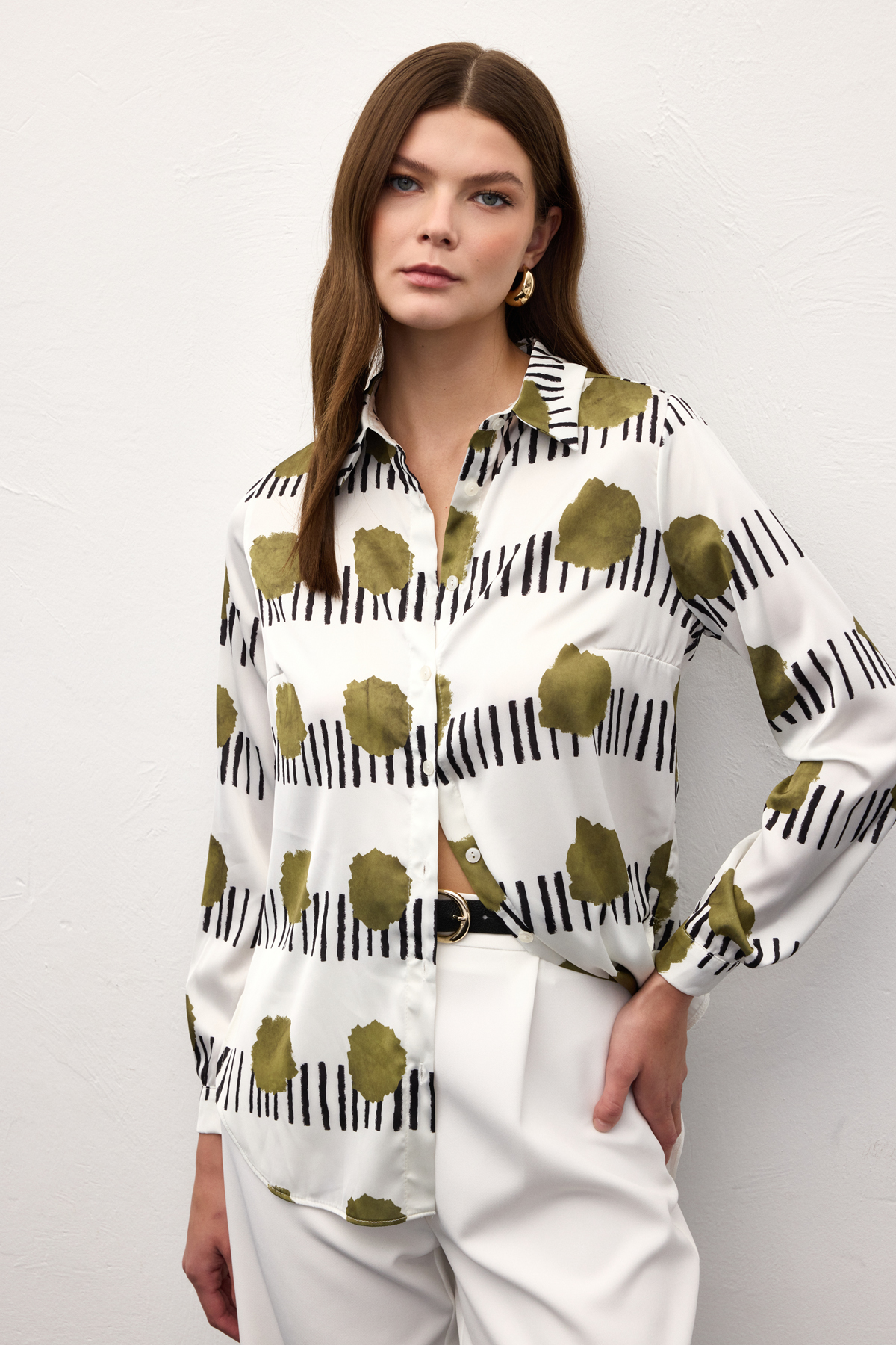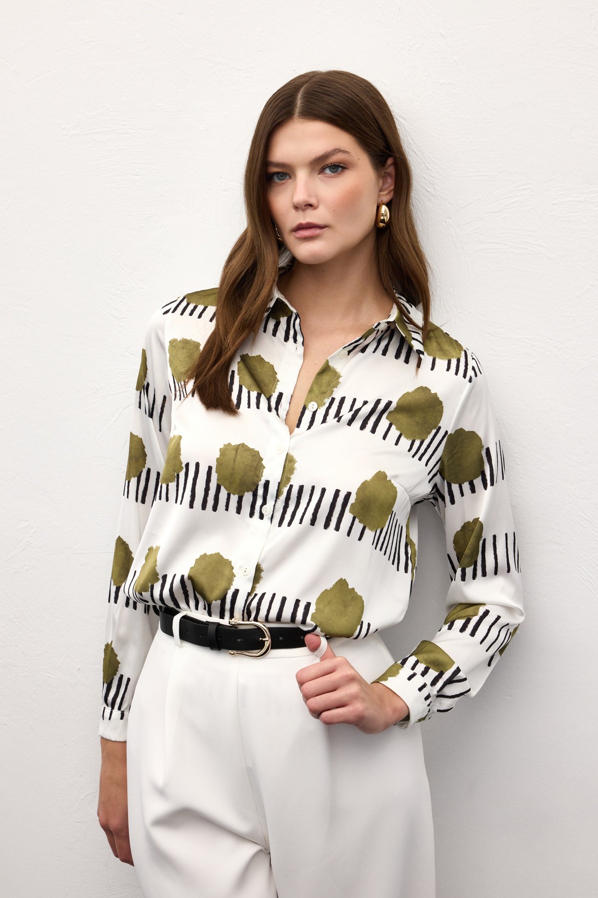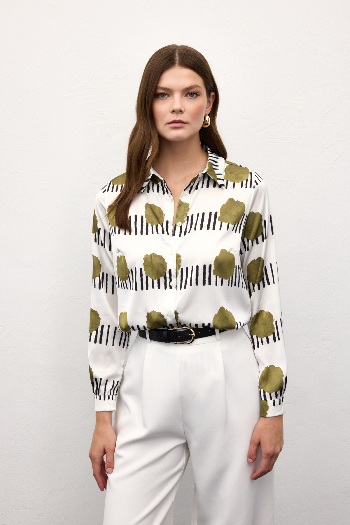 Desenli Klasik Gömlek - Haki