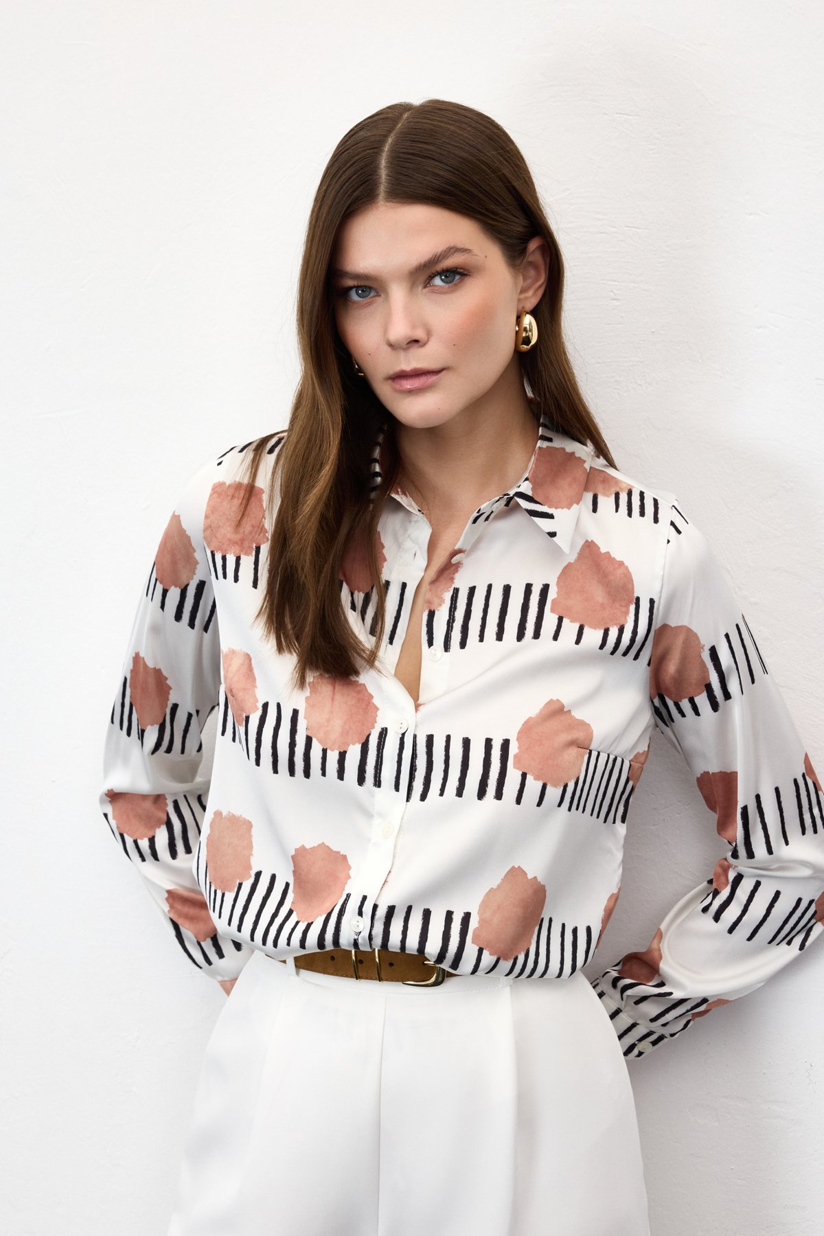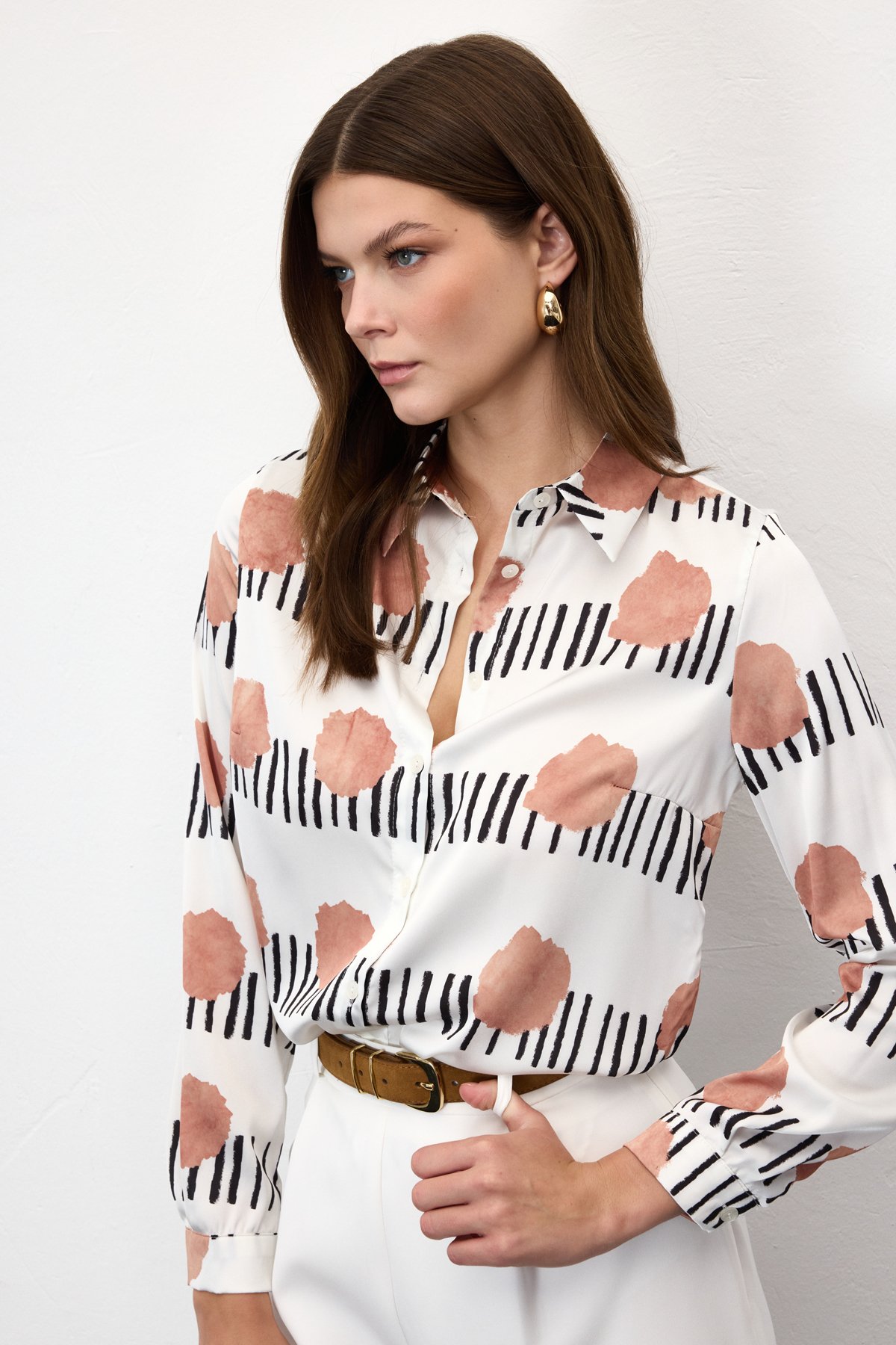 Desenli Klasik Gömlek - Mocha