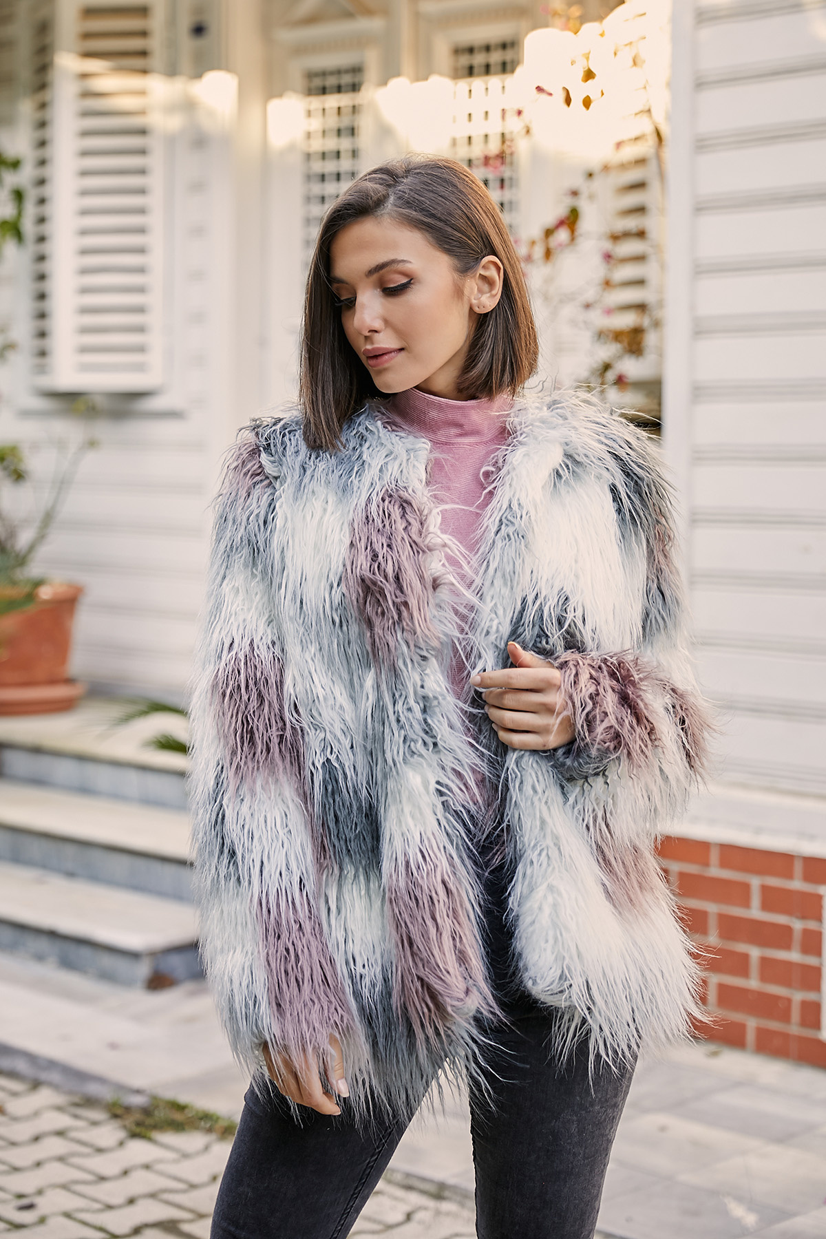 *Renkli Peluş Mont*Metal Kopça Kapma*Renk Geçişli*Düz Yaka*İç Astarlı*Uzun Kol*Tam Kalıp*Boy Uzunluğu: 71 cmNumune Bedeni: 36/S/1Modelin Ölçüleri :Boy:1,74, Göğüs:88, Bel:64, Kalça:94