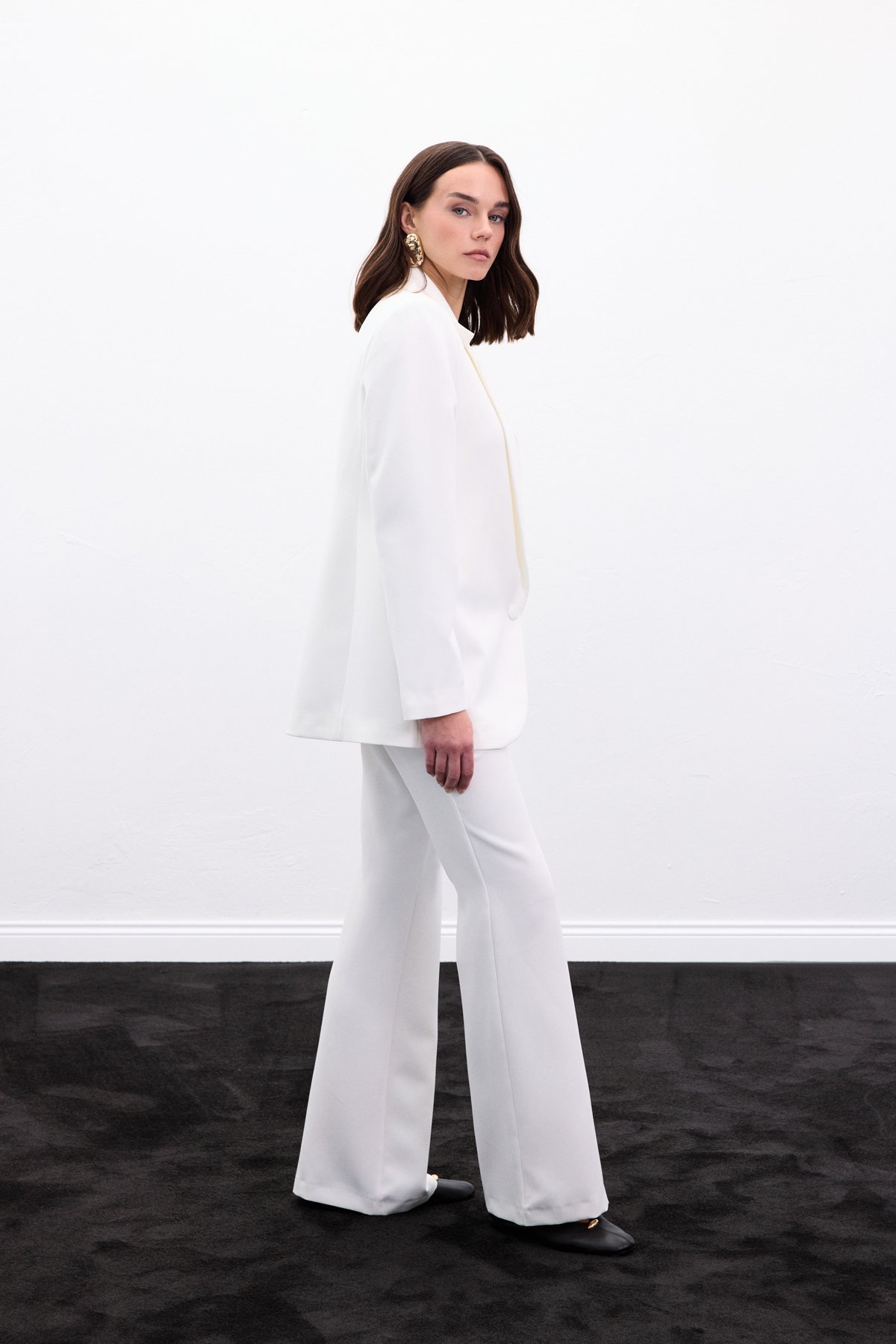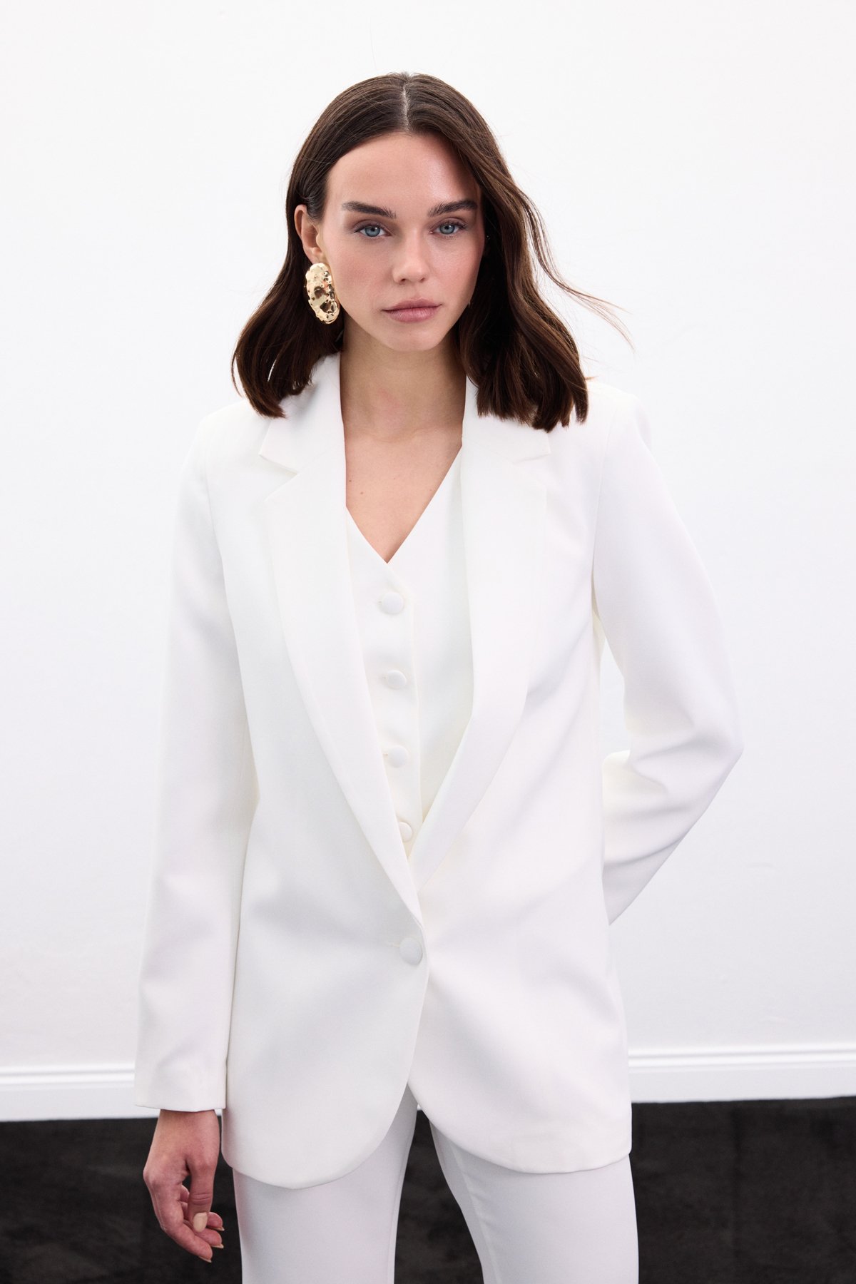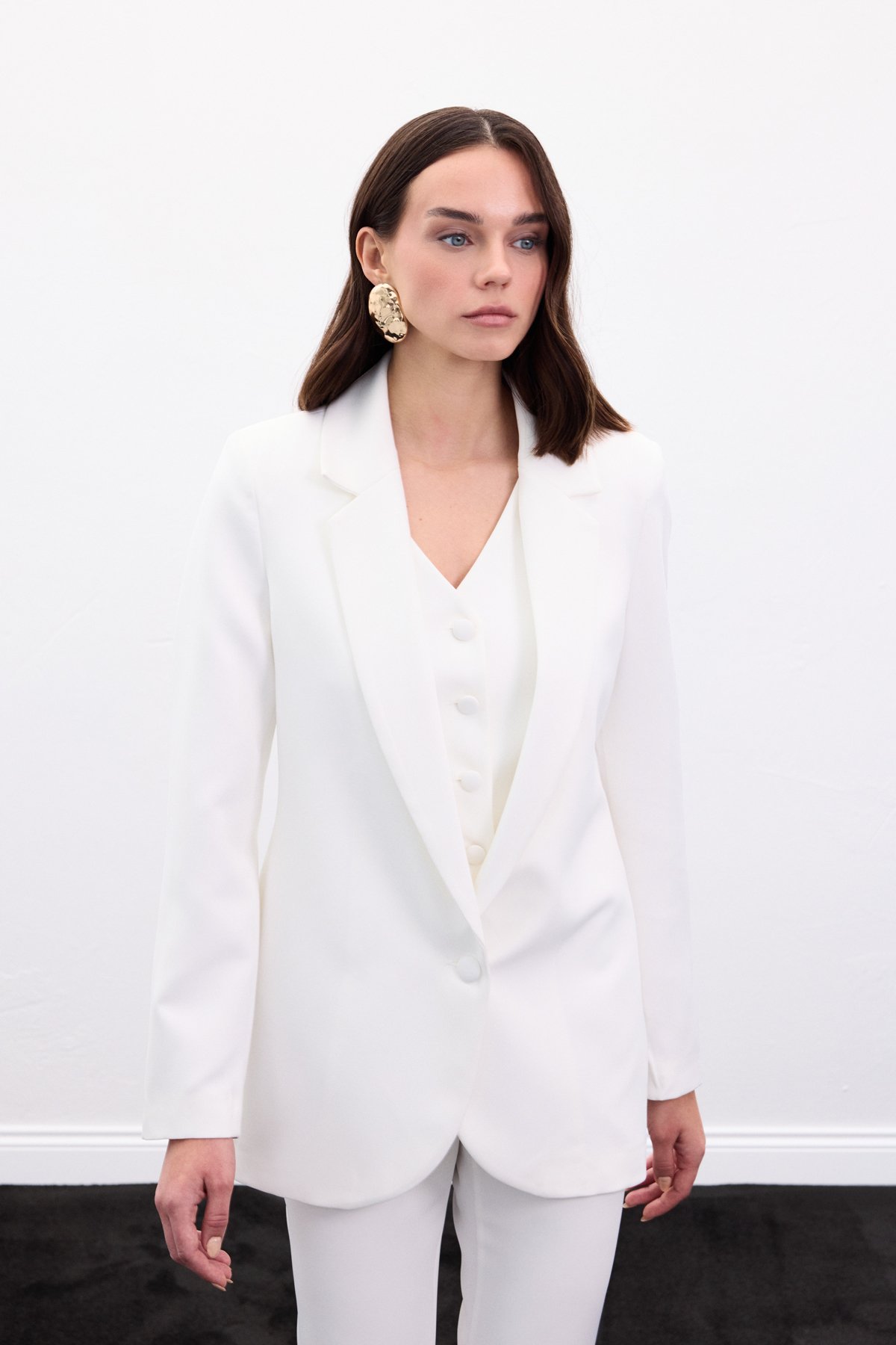 Düğmeli Klasik Ceket - Ekru