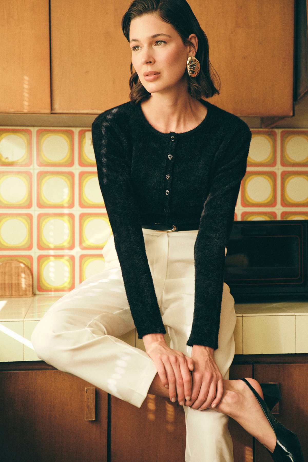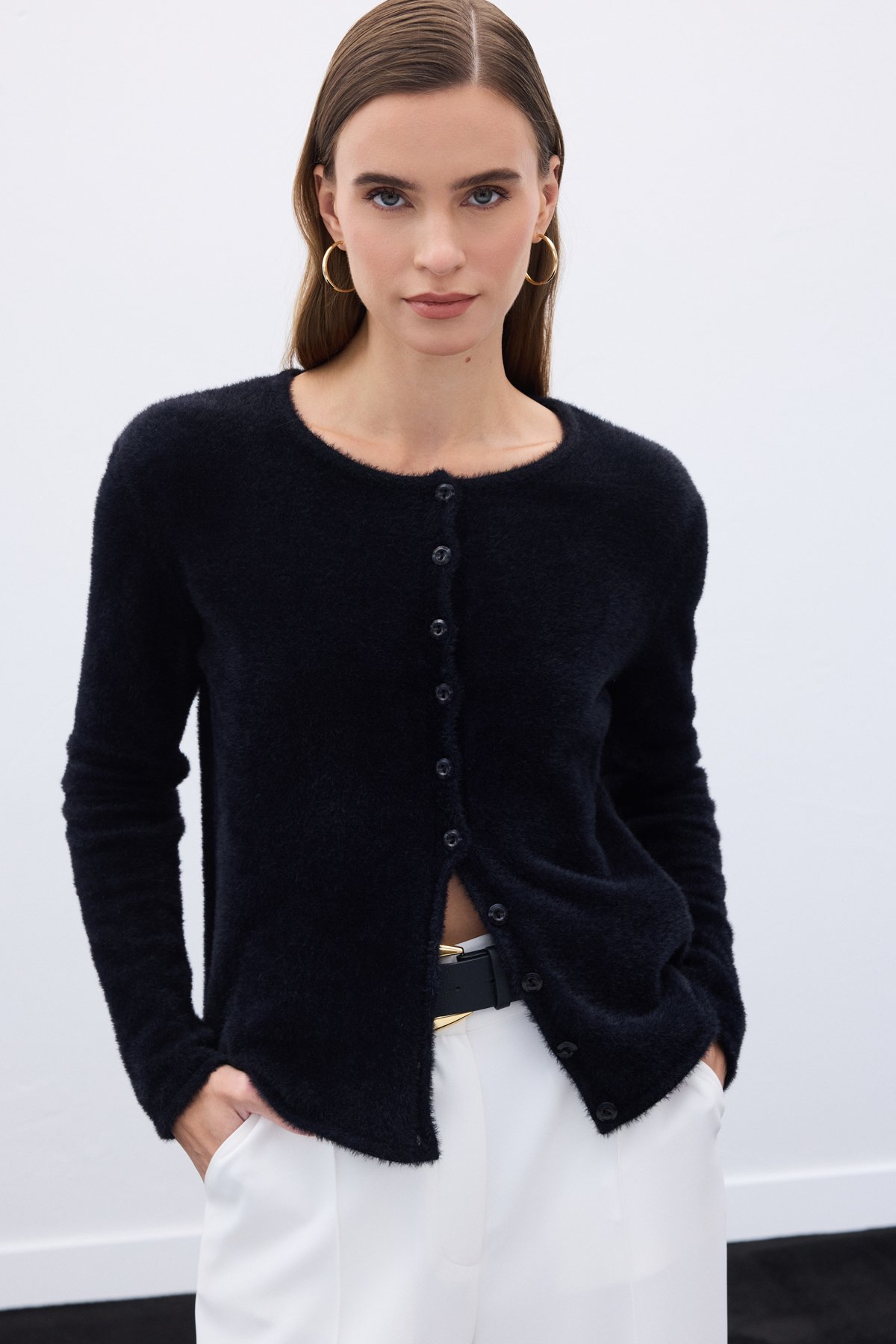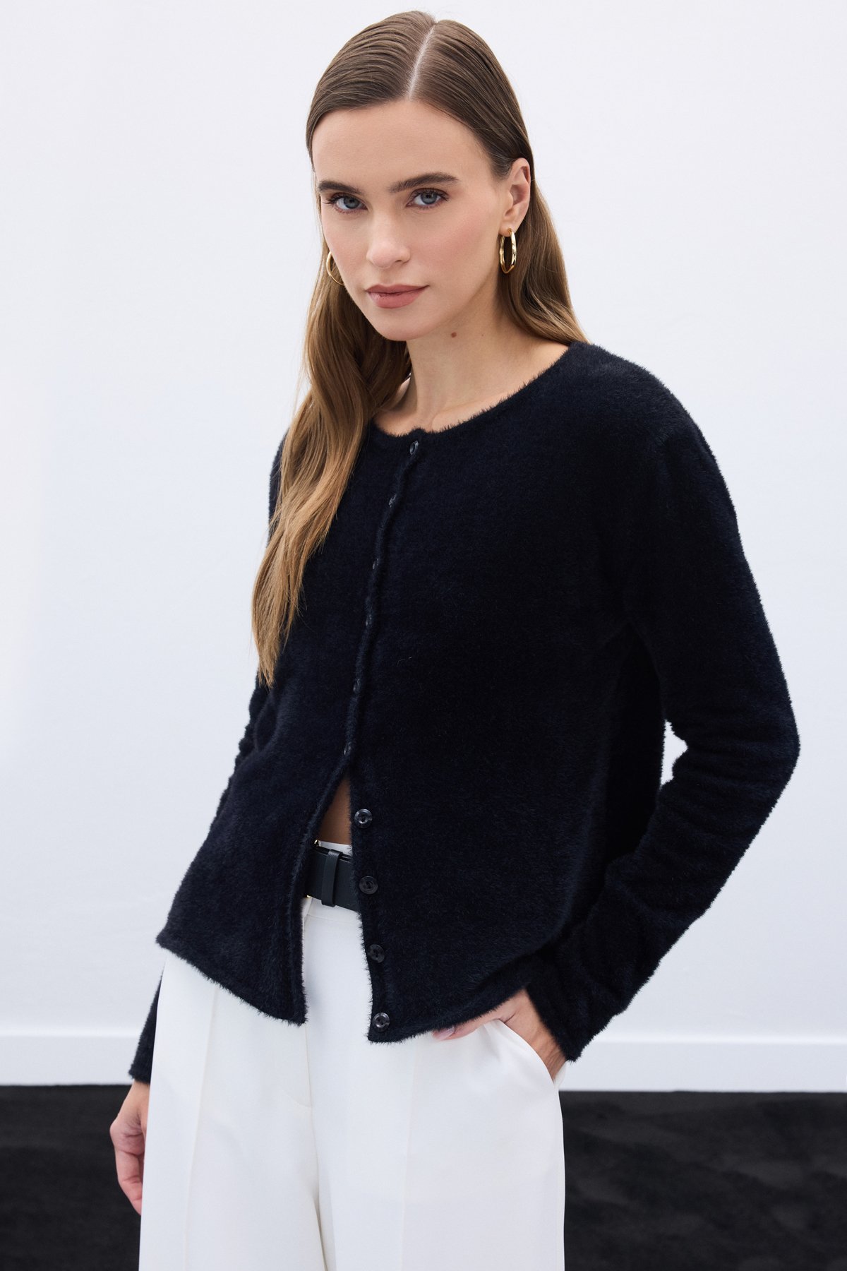 Düğmeli Sakallı Hırka - Siyah