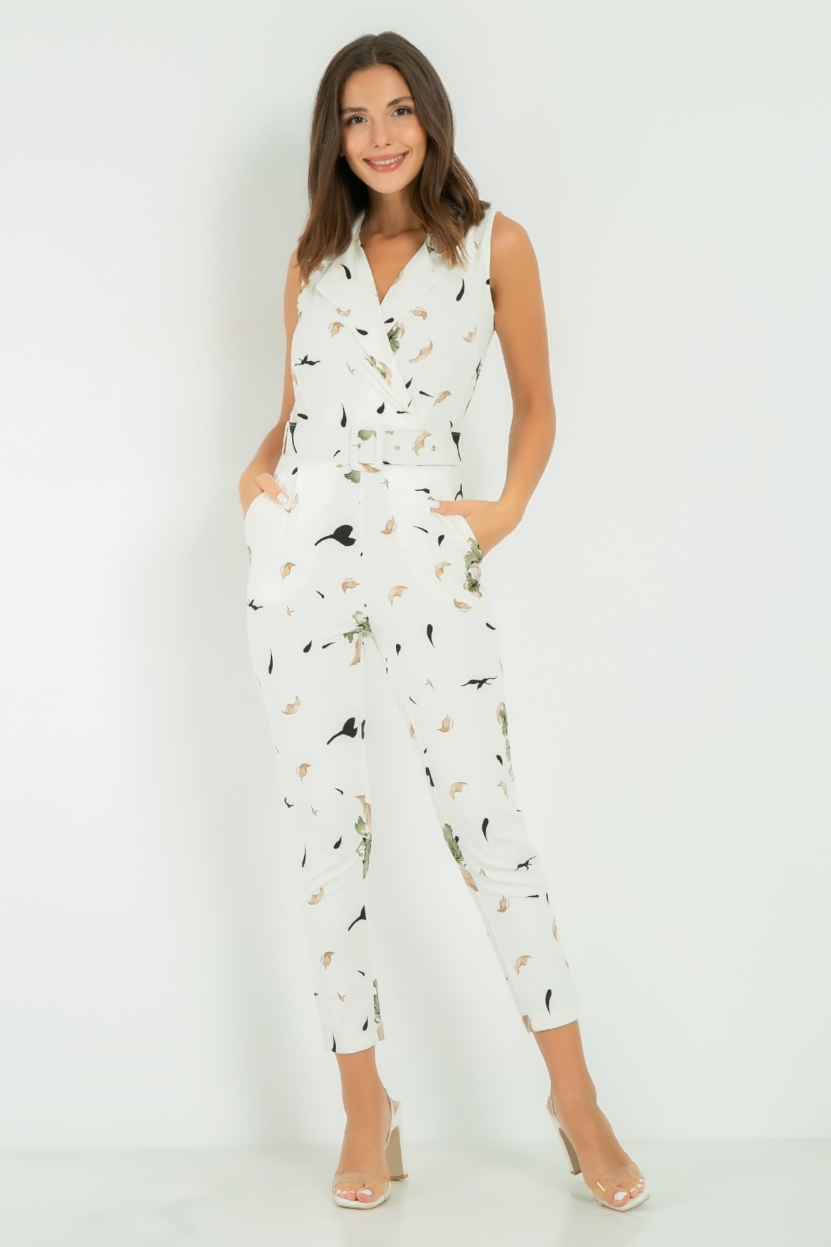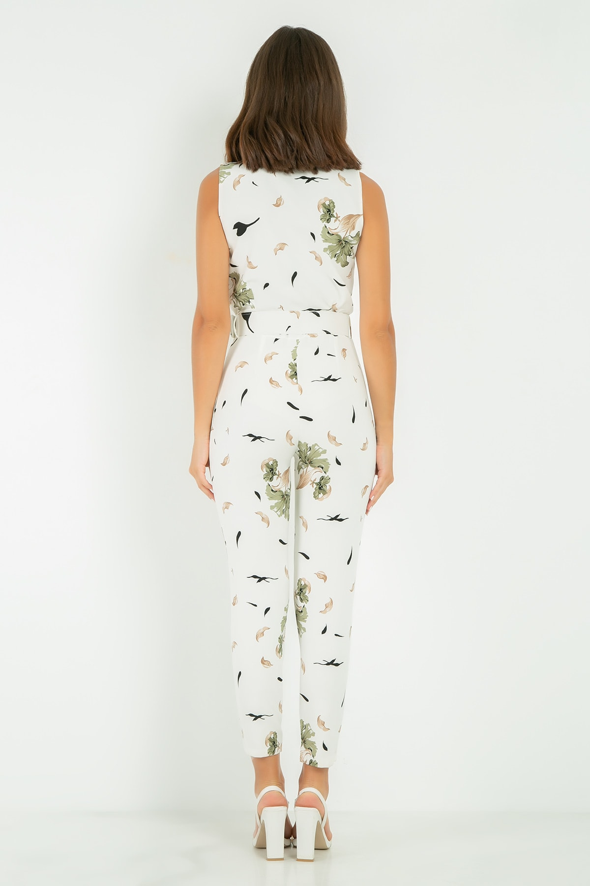 Kumaş Türü: Polyester *Kruvaze-Ceket Yaka *Kolsuz *Yan Fermuarlı *Düz Paça *Cepli*Çiçek Desenli *Kemerli *Tam kalıp *Boy Uzunluğu:135 cmModelin Üzerindeki Ürün 36/S Bedendir.Dış Çekim Modelin Ölçüleri:Boy:1,74, Göğüs:89, Bel:59, Kalça:93İç Çekim Modelin Ölçüleri :Boy:1,74, Göğüs:88, Bel:64, Kalça:94Konsept çekimlerinde renkler ışık farklılığından dolayı değişiklik gösterebilir, stüdyo çekimlerindeki renkleri esas almanız önerilir.