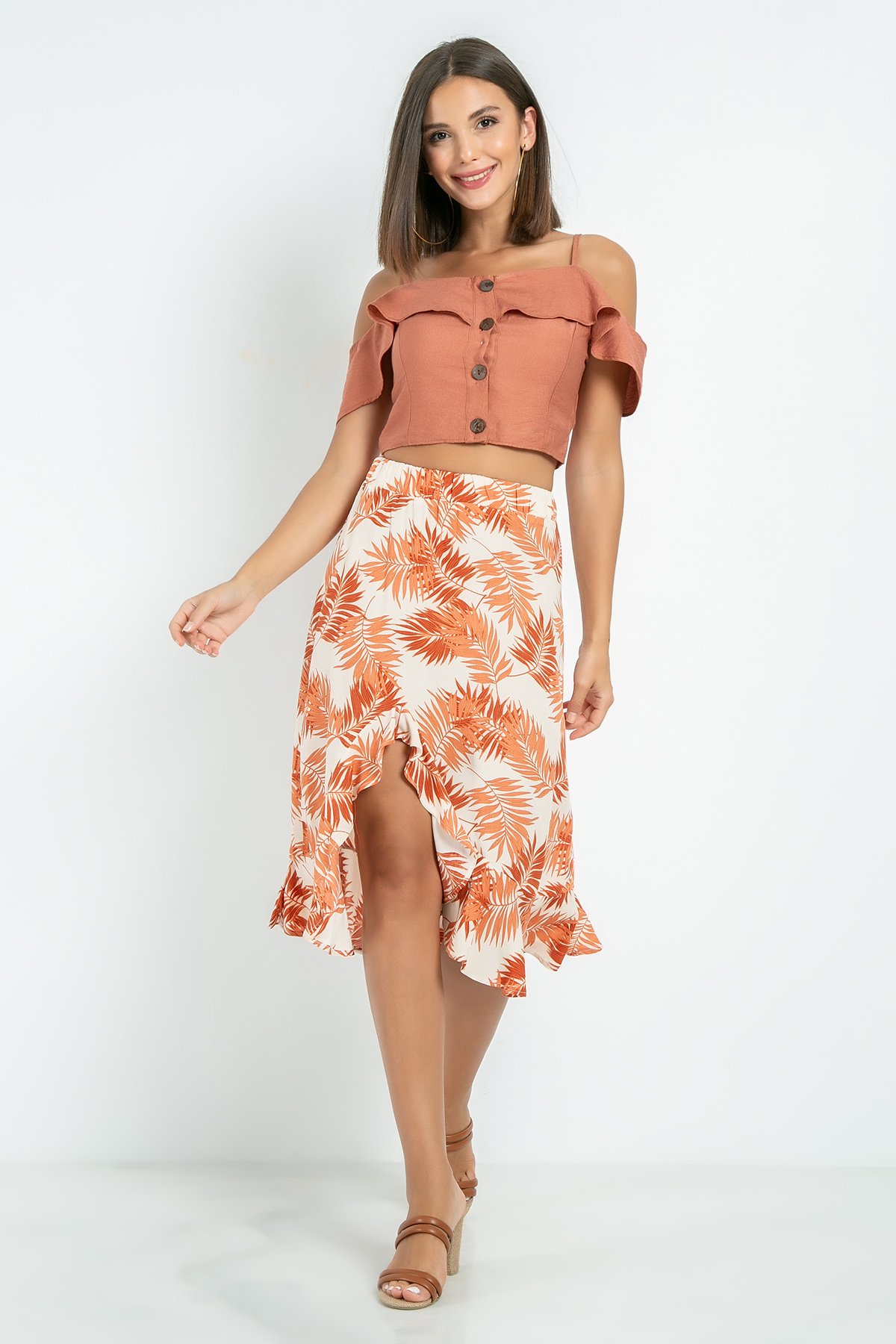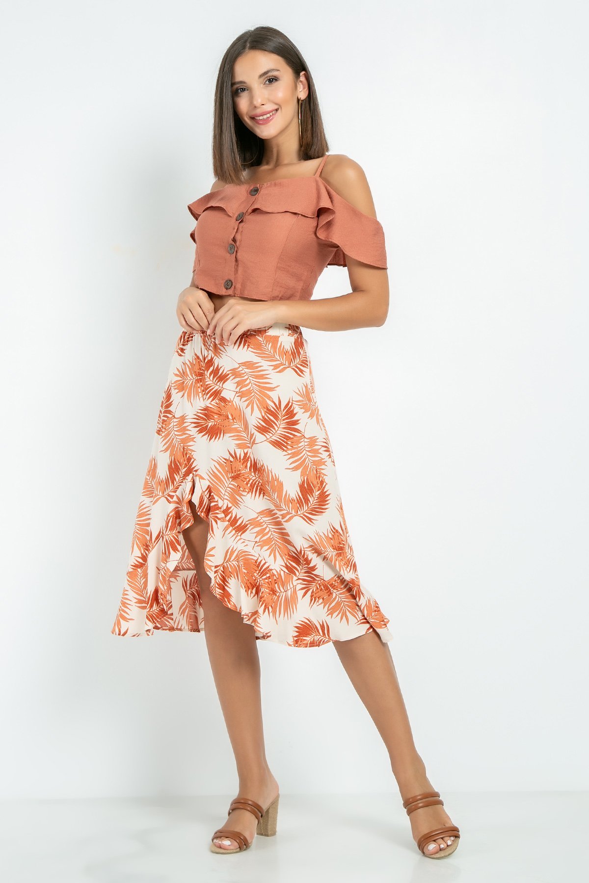 Kumaş Türü: Viskon-Pamuk*Beli Lastikli*Yandan Fermuarlı *Volanlı Etek Ucu *Desenli *Tam Kalıp *Boy Uzunluğu: 76 cmNumune Bedeni: 36/S/1Modelin Ölçüleri : Boy:1,74, Göğüs:88, Bel:64, Kalça:94
