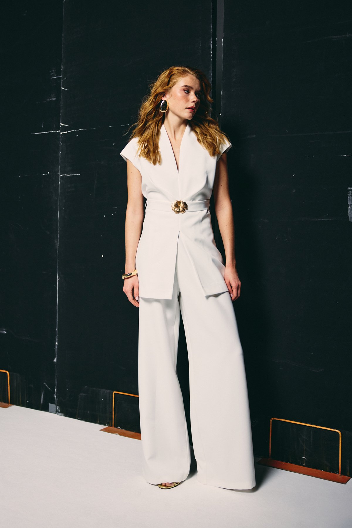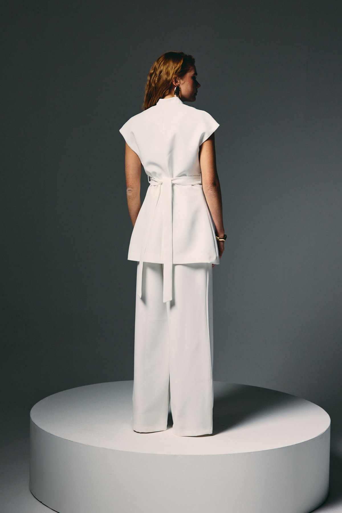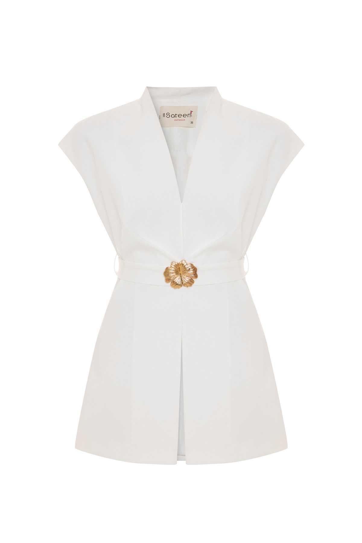Accessory Belted Sleeveless Blouse - Ecru