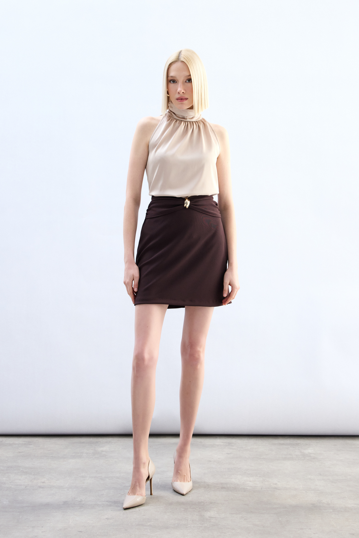Turtleneck Sleeveless Blouse - Beıge