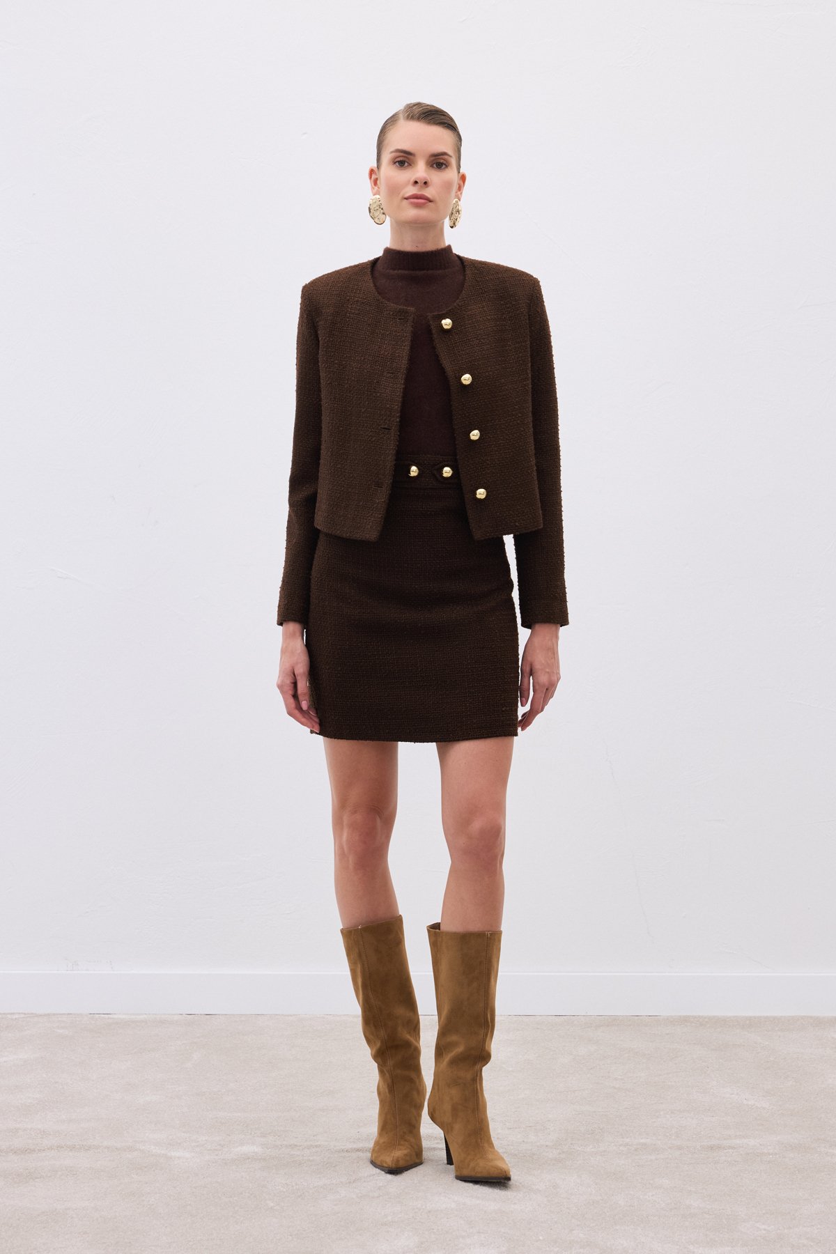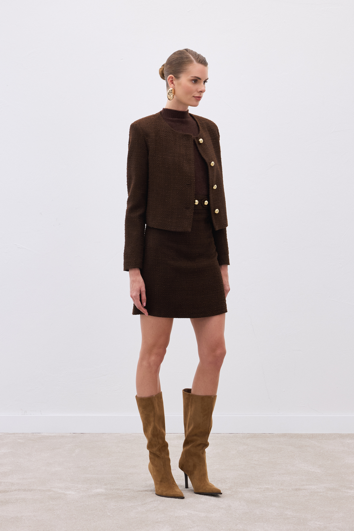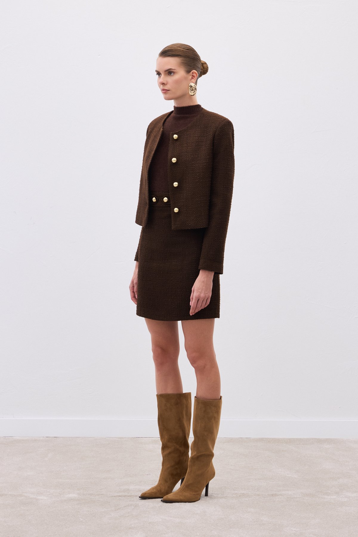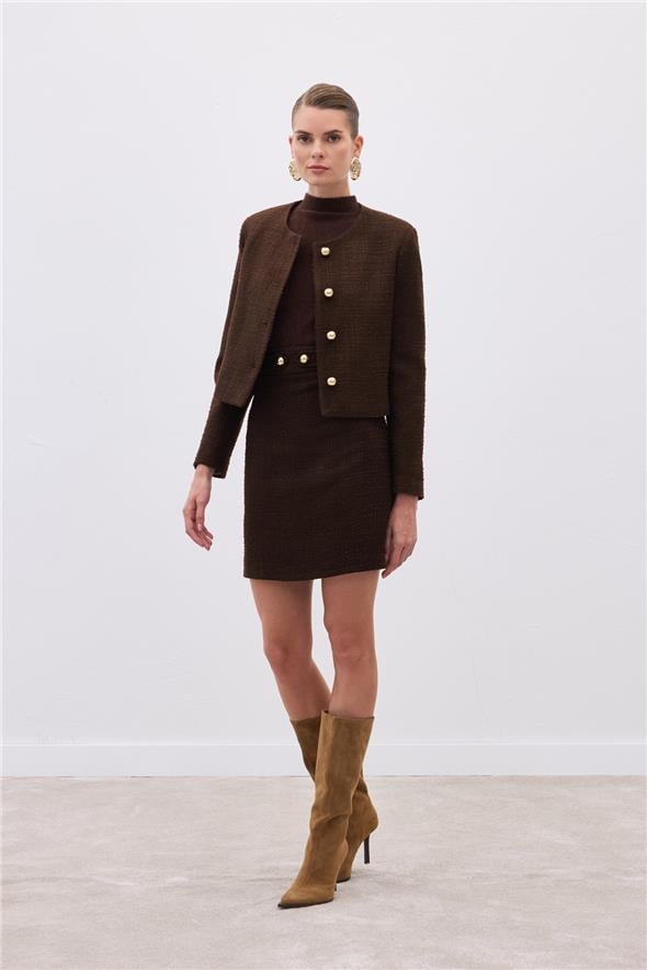 Düğme Detaylı Mini Tüvit Etek - Kahve