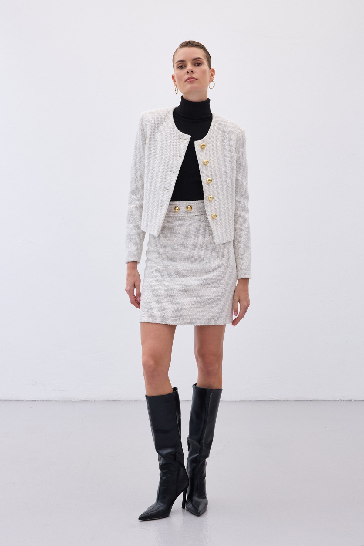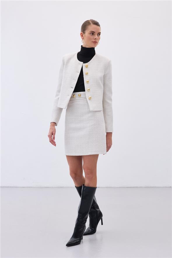 Düğme Detaylı Mini Tüvit Etek - Taş
