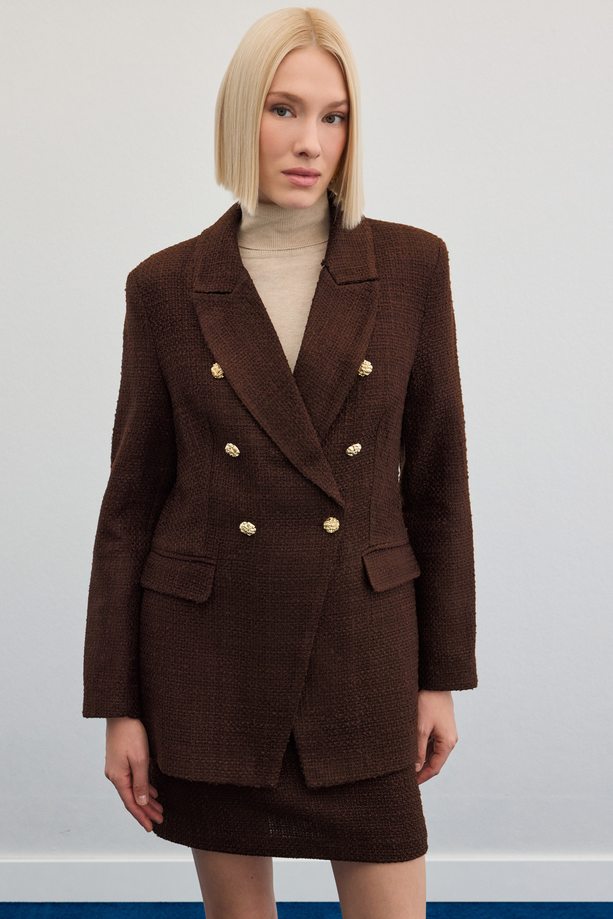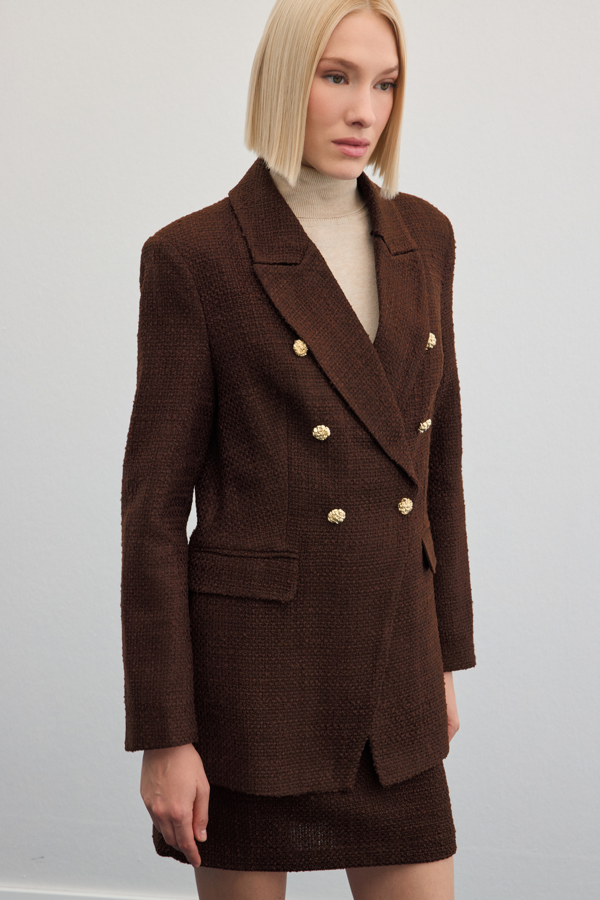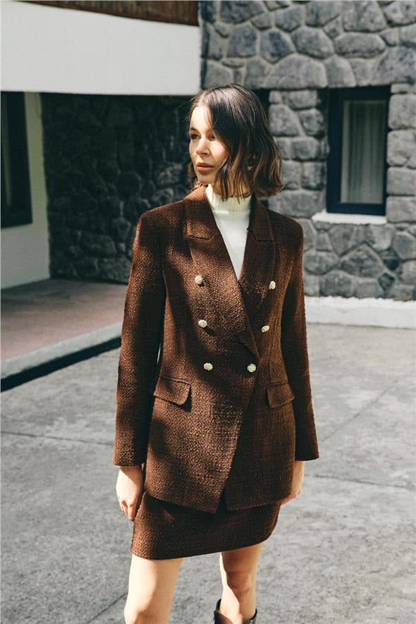 Button Detailed Tweed Jacket - Brown