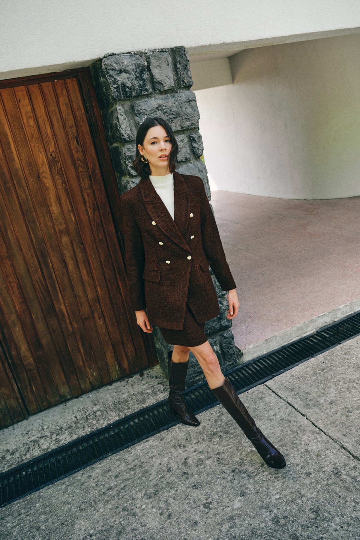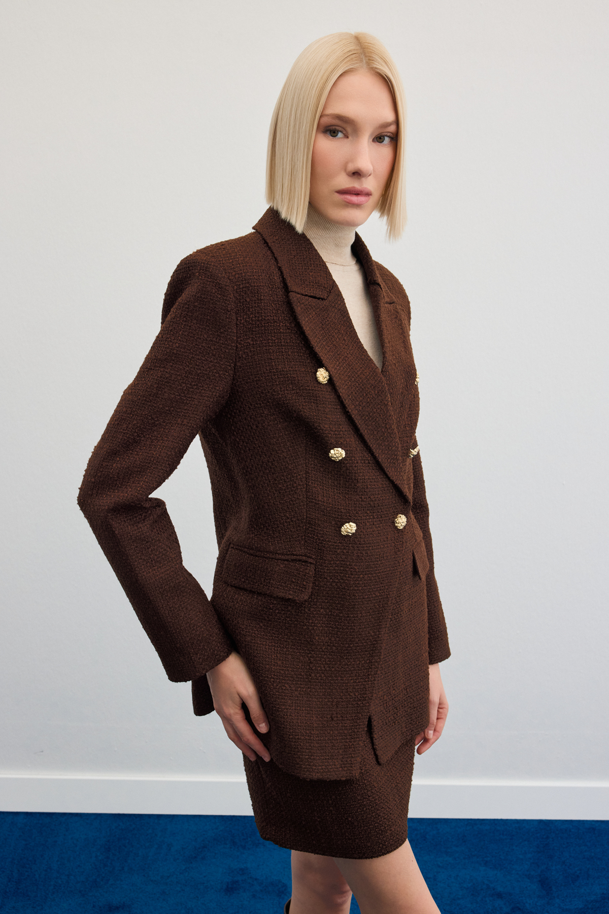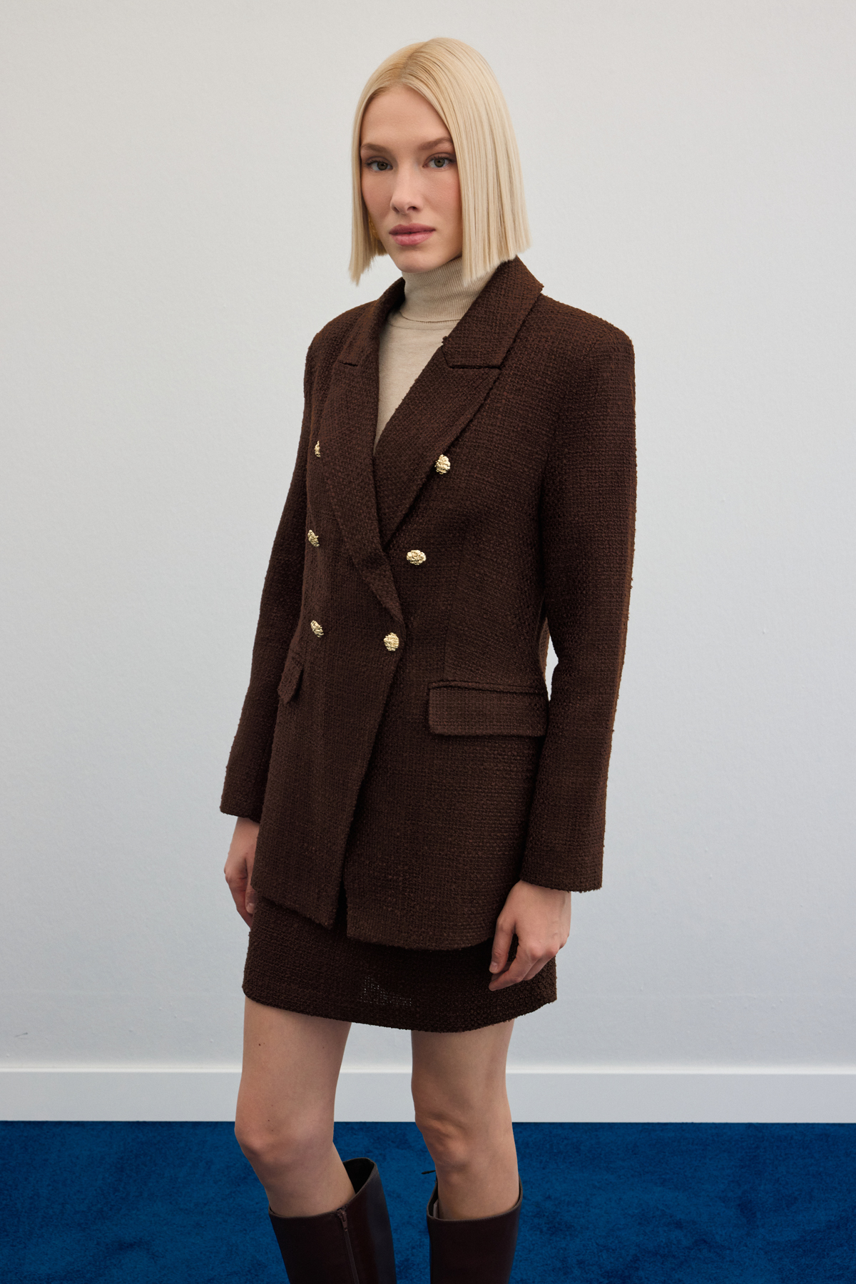 Button Detailed Tweed Jacket - Brown