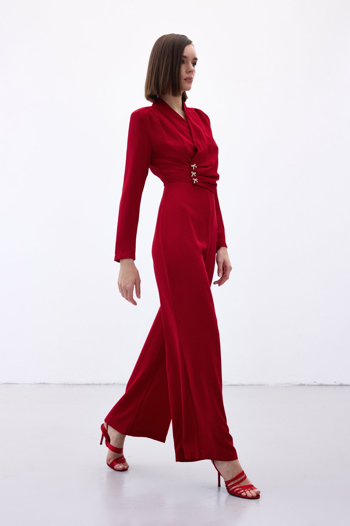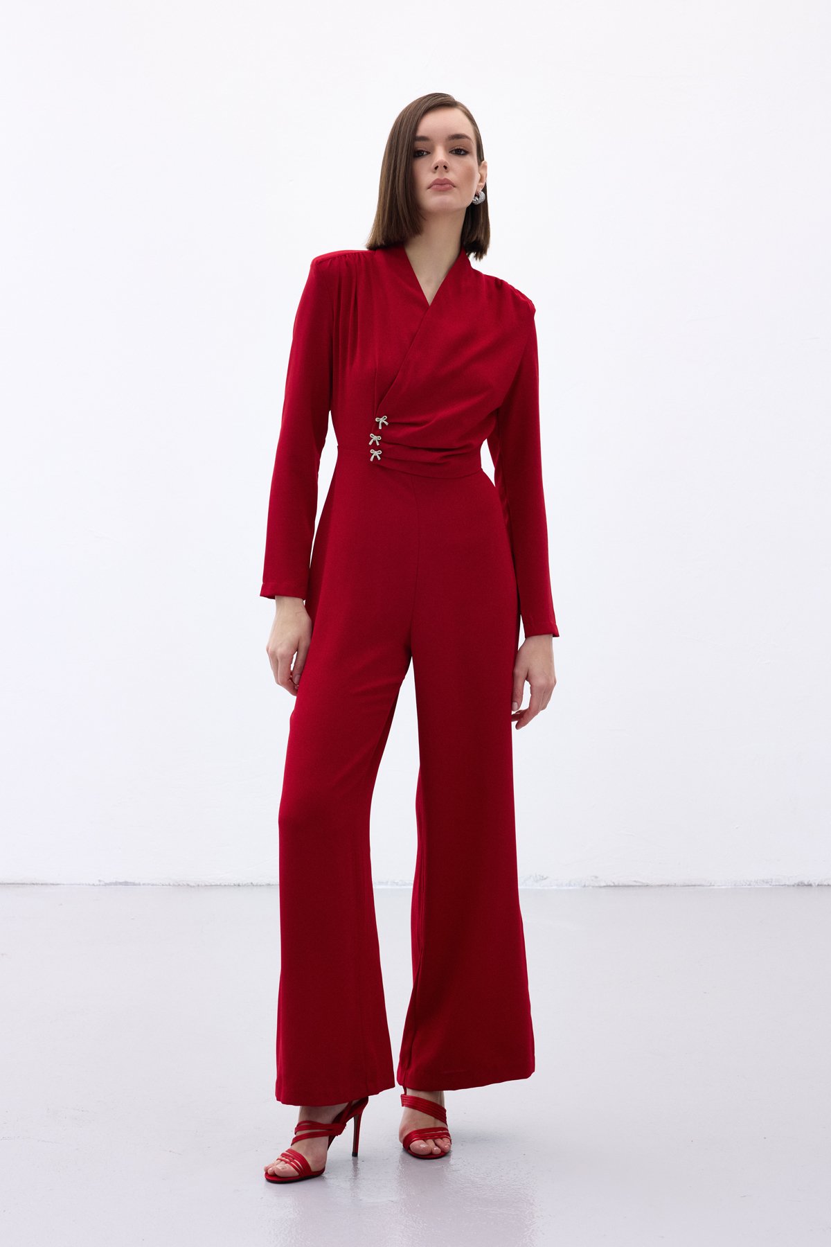 Crepe Jumpsuit with Bow Accessory - Red