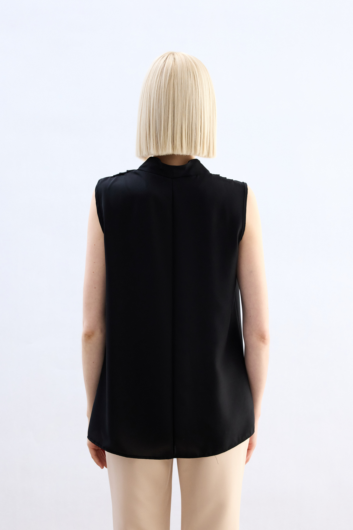 Mandarin Collar Sleeveless Blouse - Black