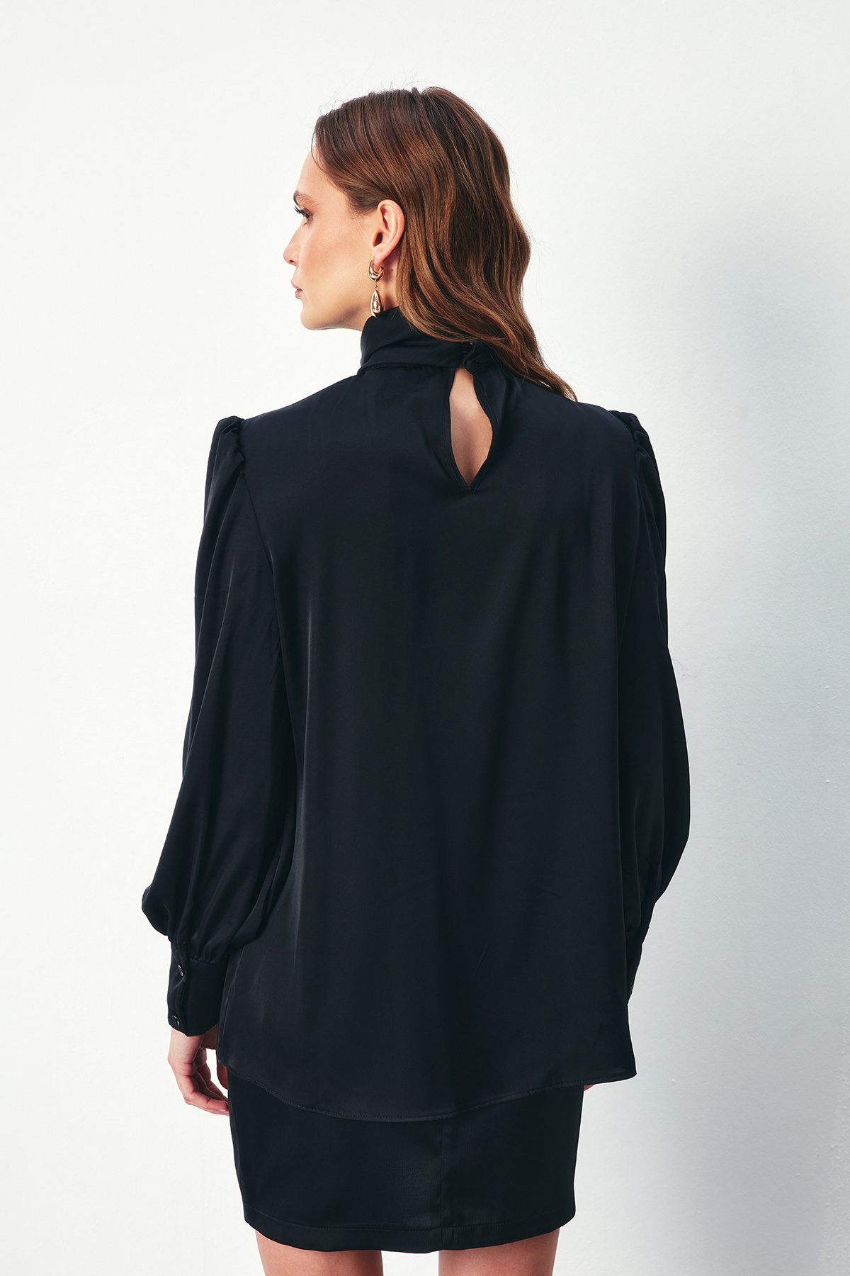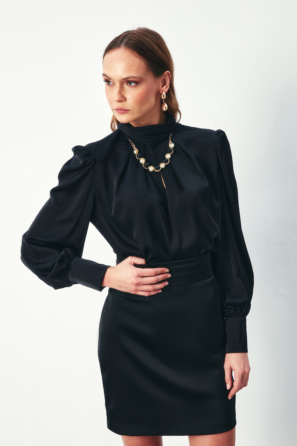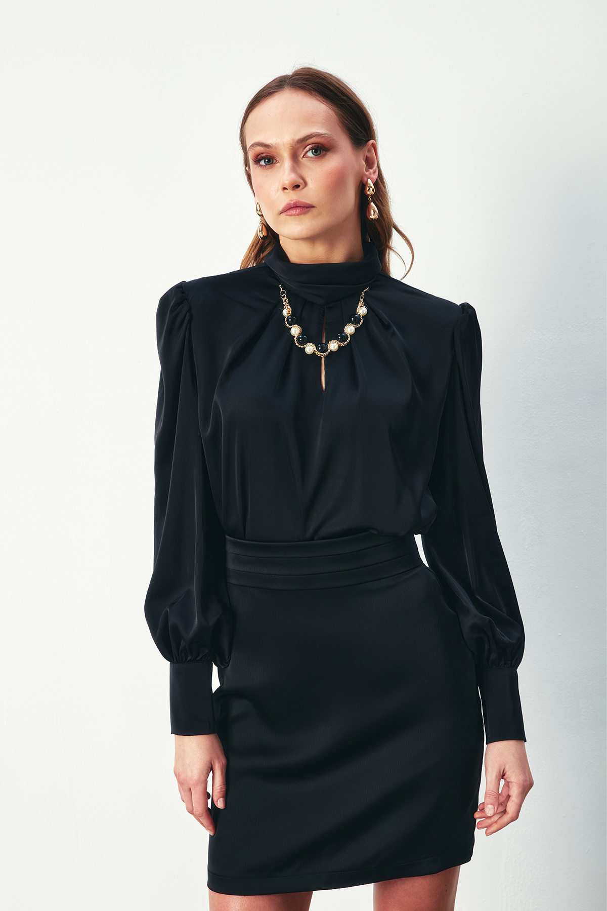 1367-1003 YÜKSEK YAKALI ÖNÜ DAMLALI BLUZ