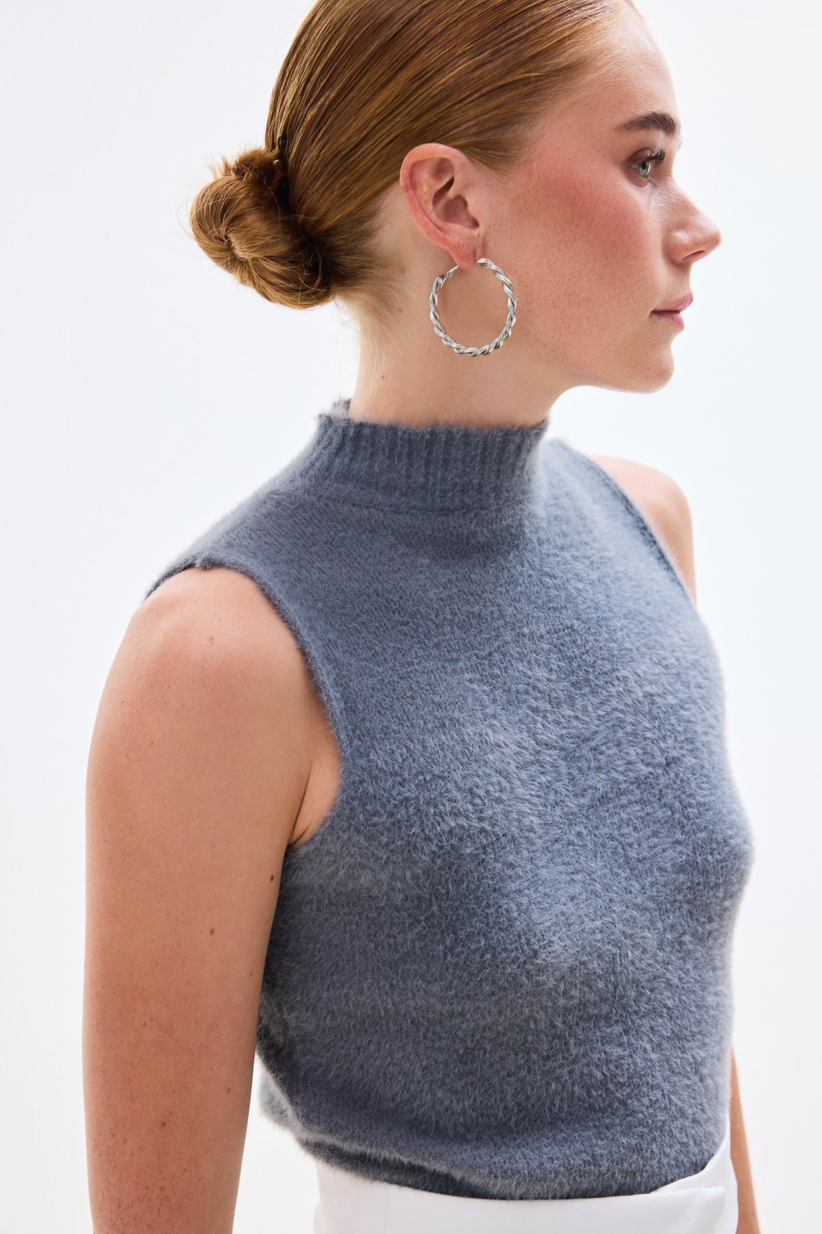 Zero Sleeve Bearded Knit Blouse - Anthracıte