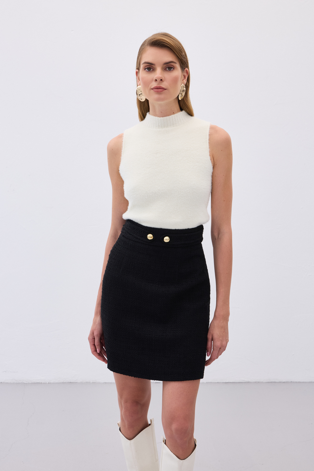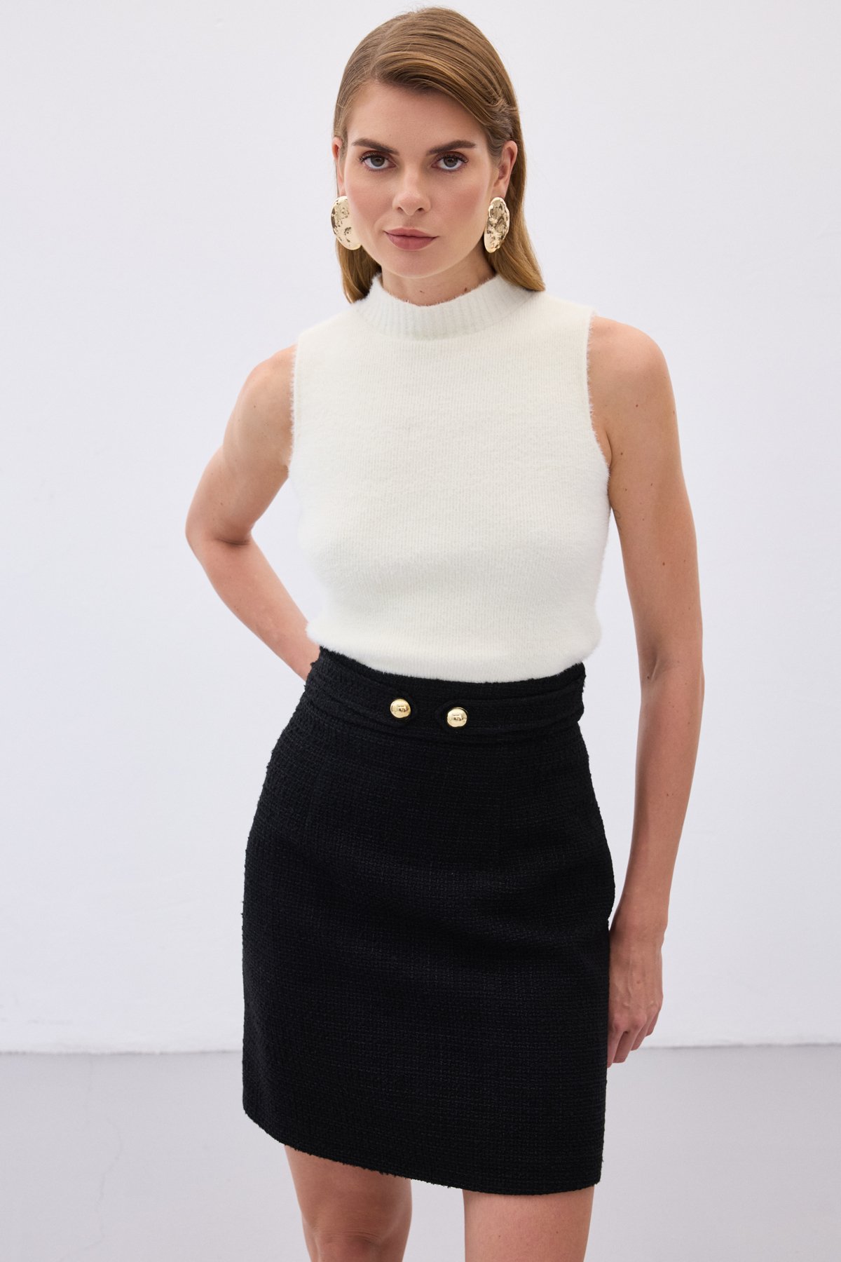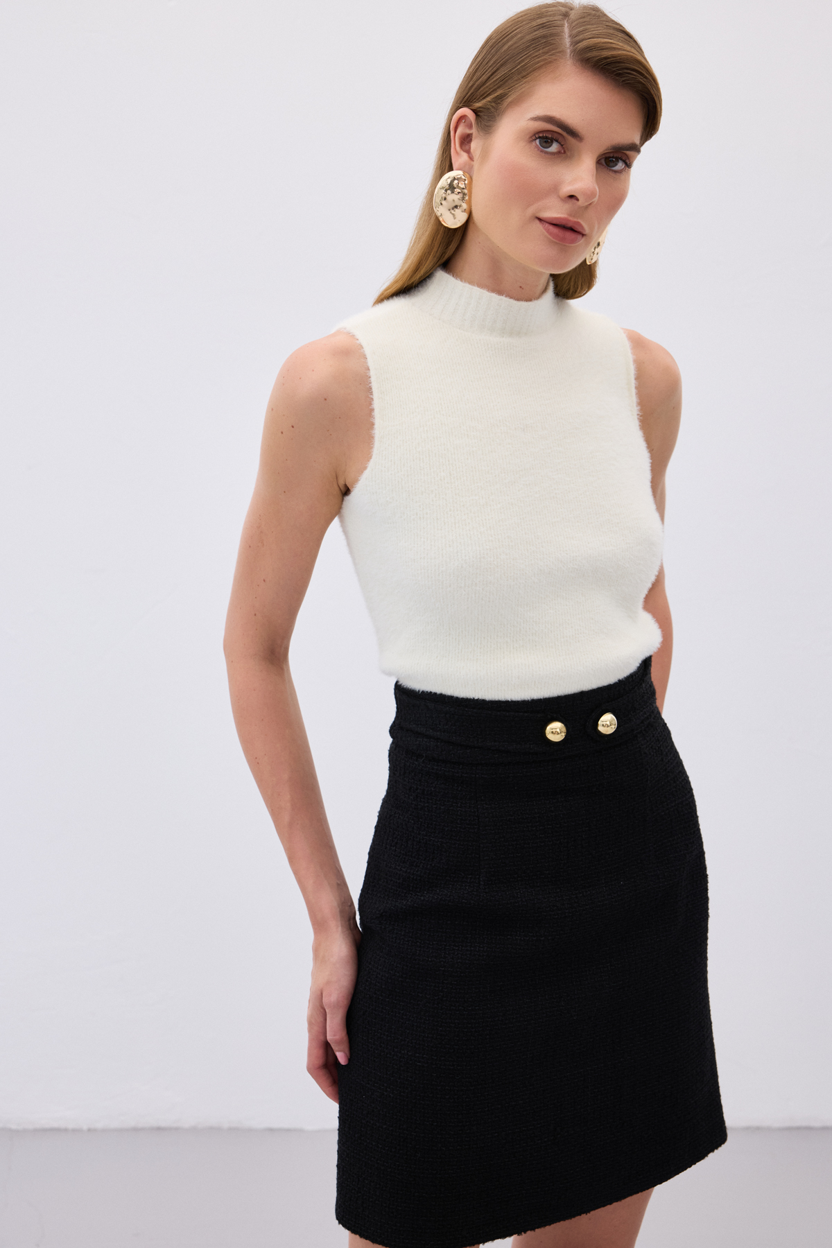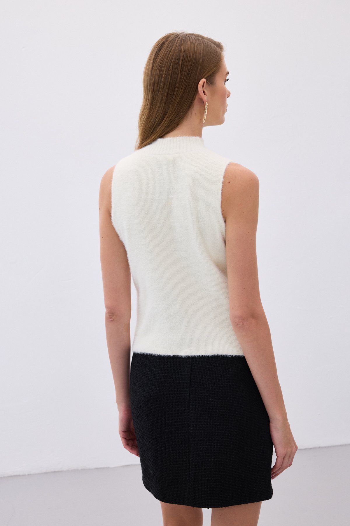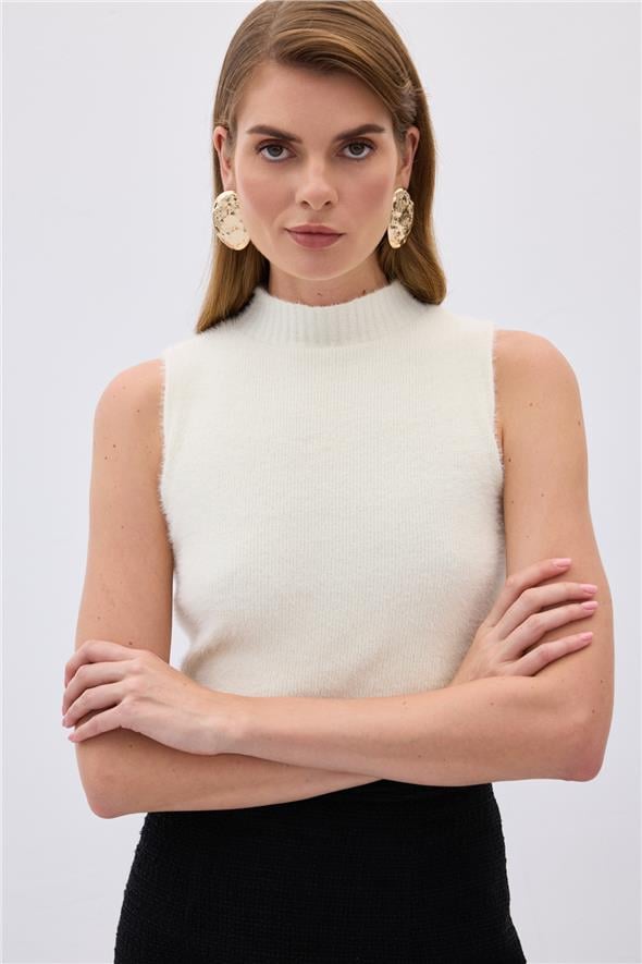 Sıfır Kol Sakallı Triko Bluz - Ekru