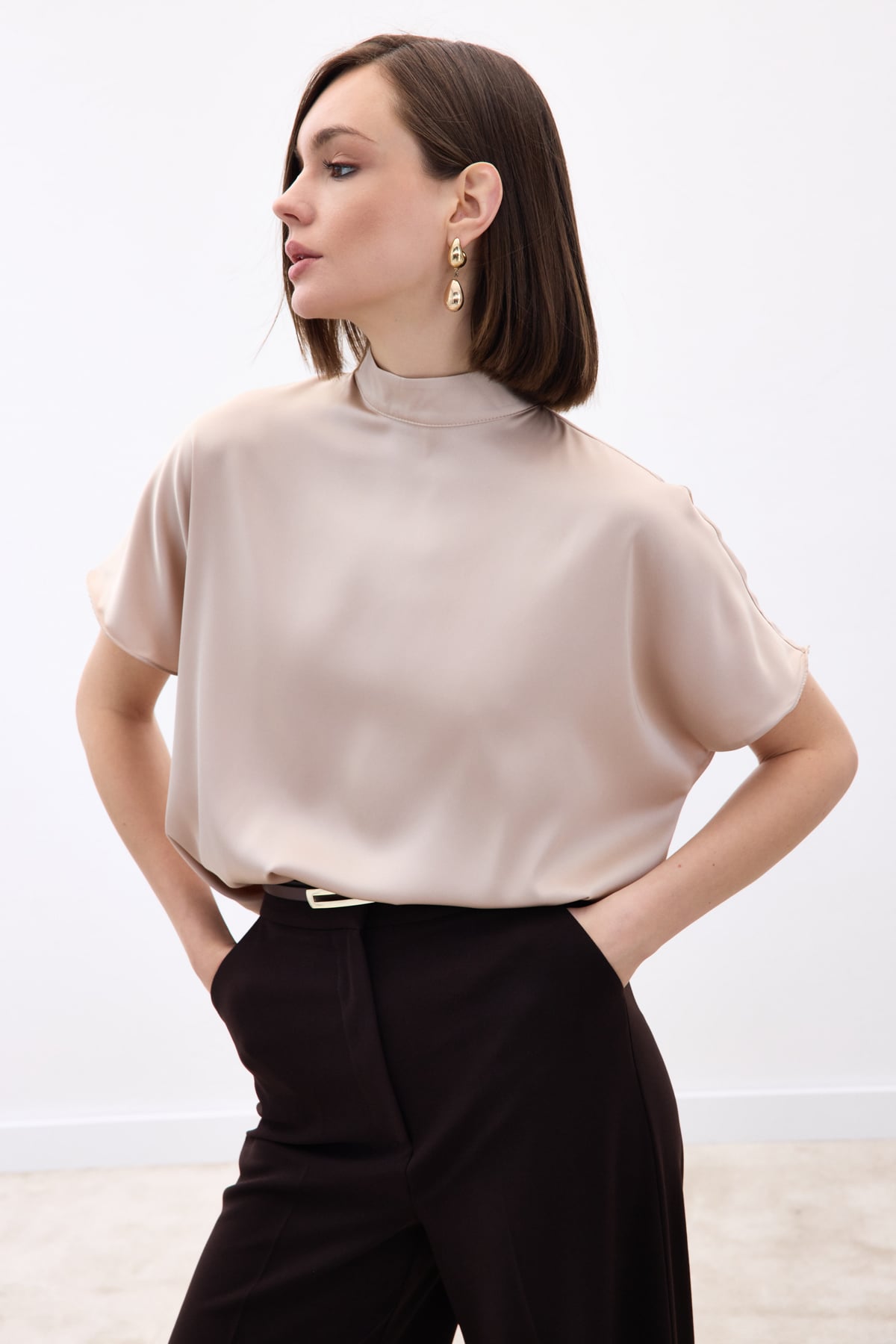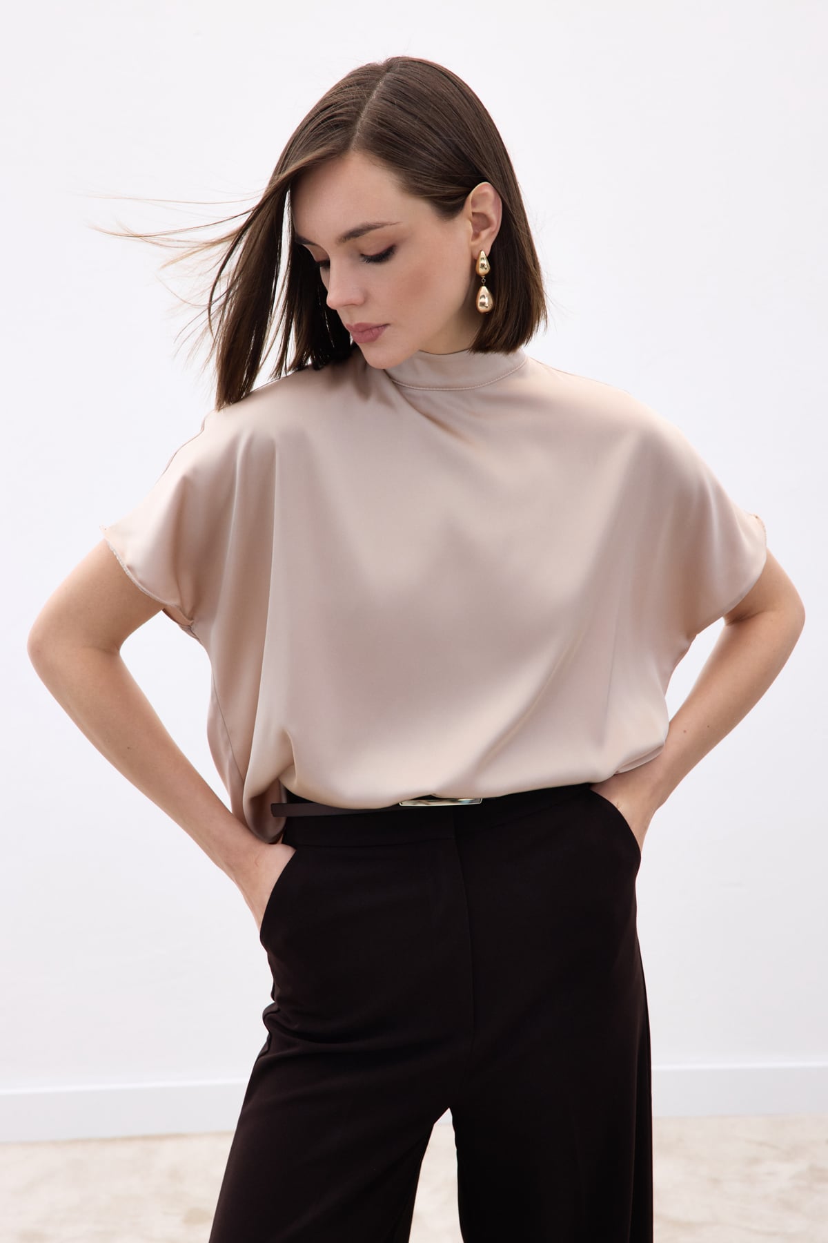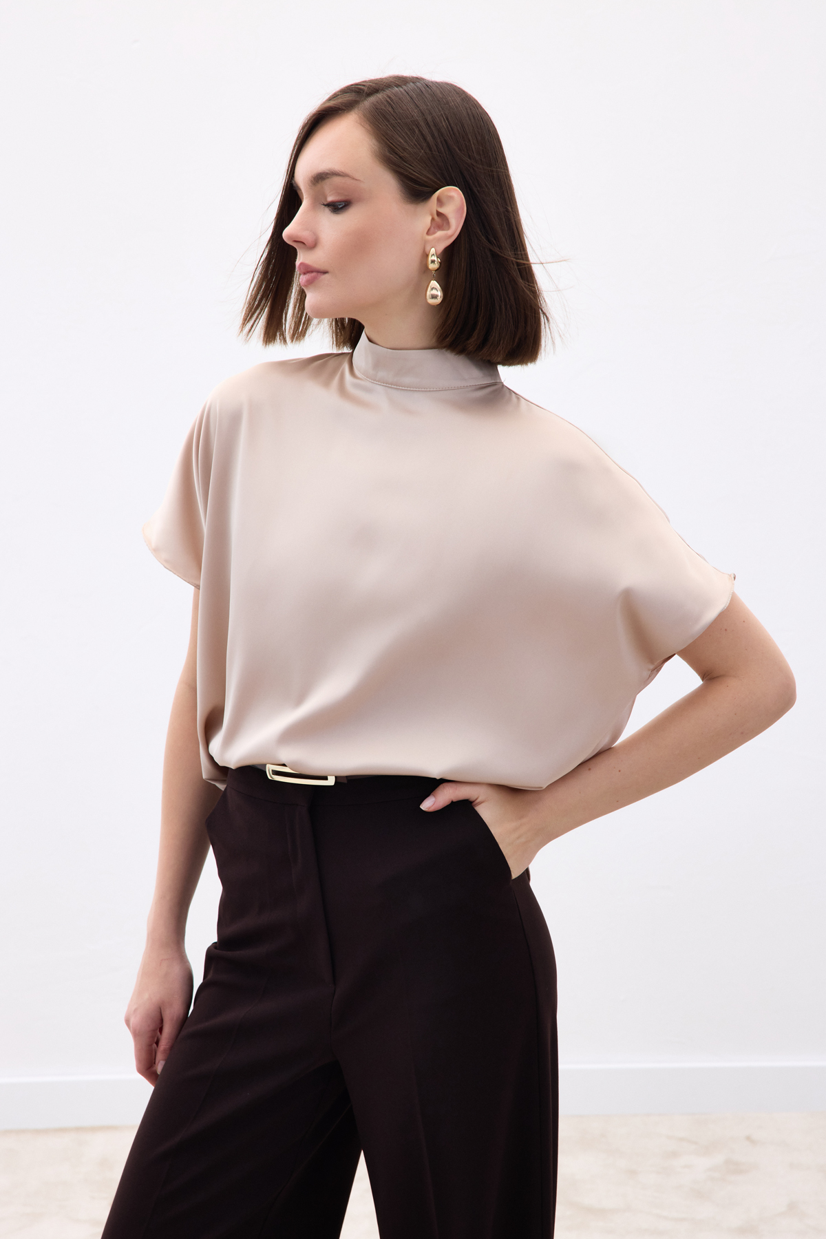 Bat Sleeve Casual Blouse - Beıge