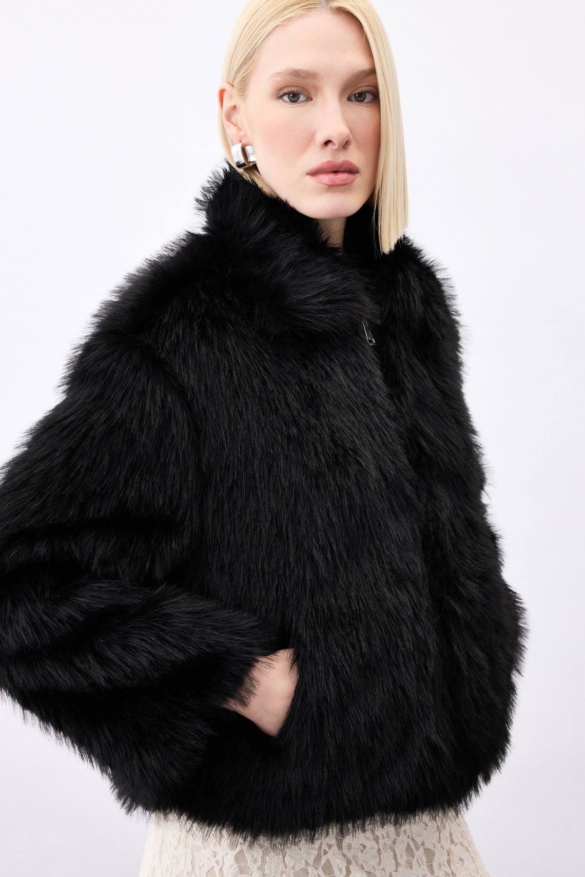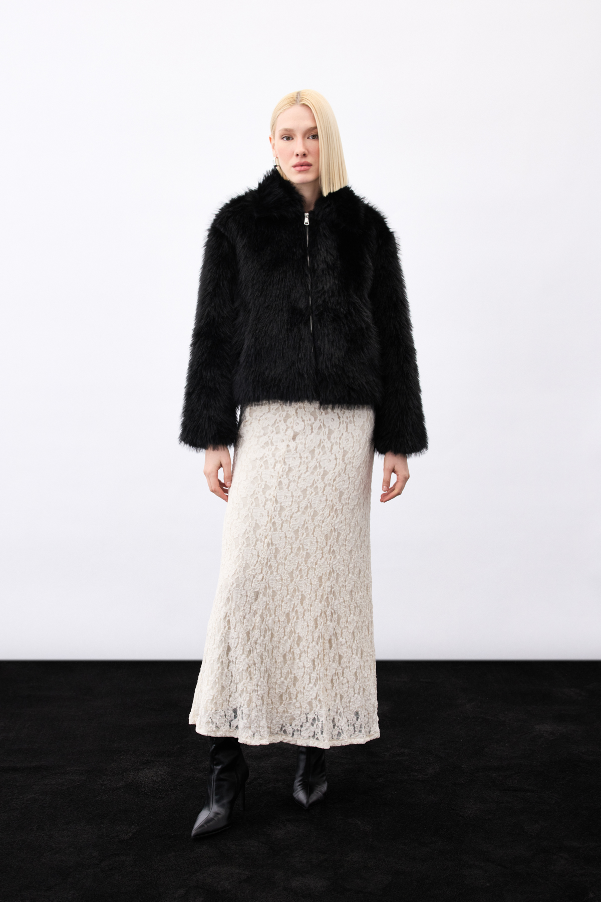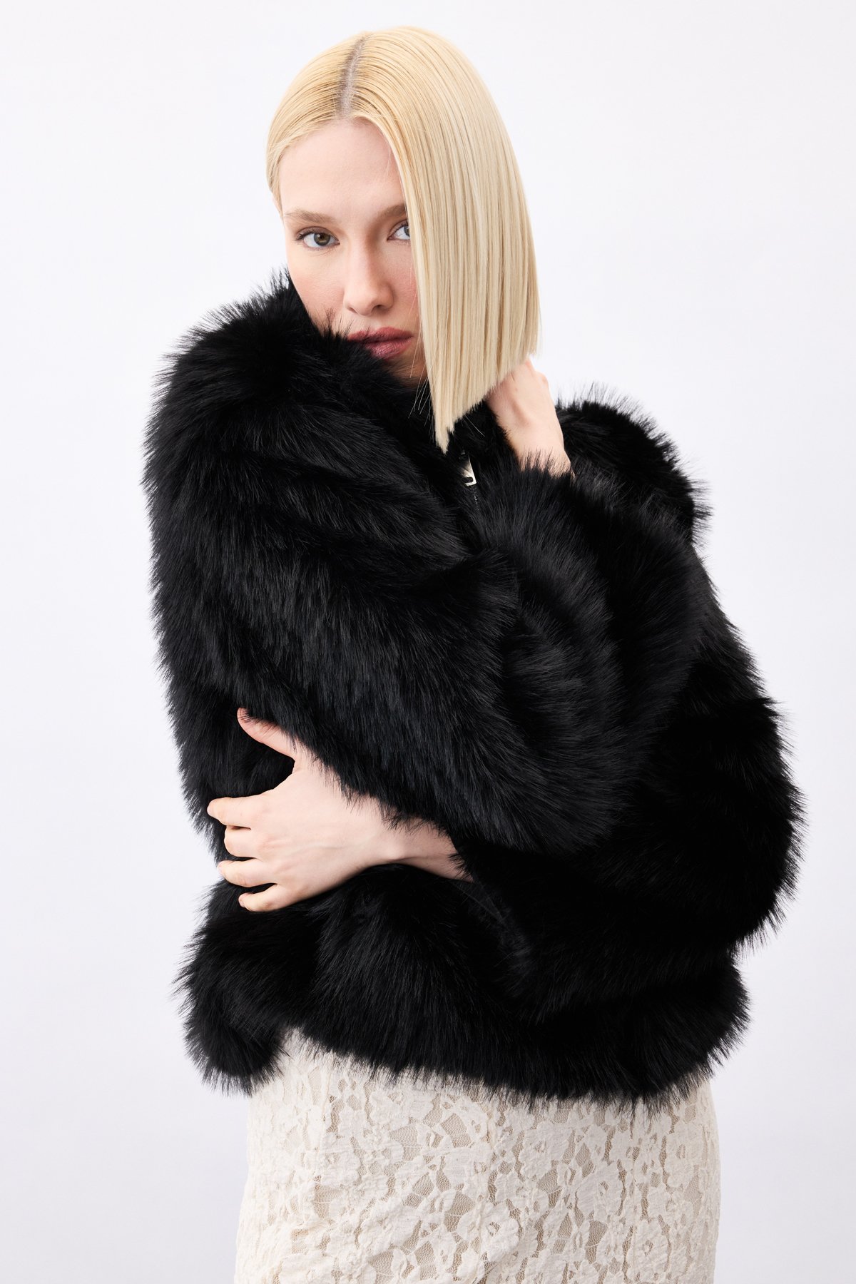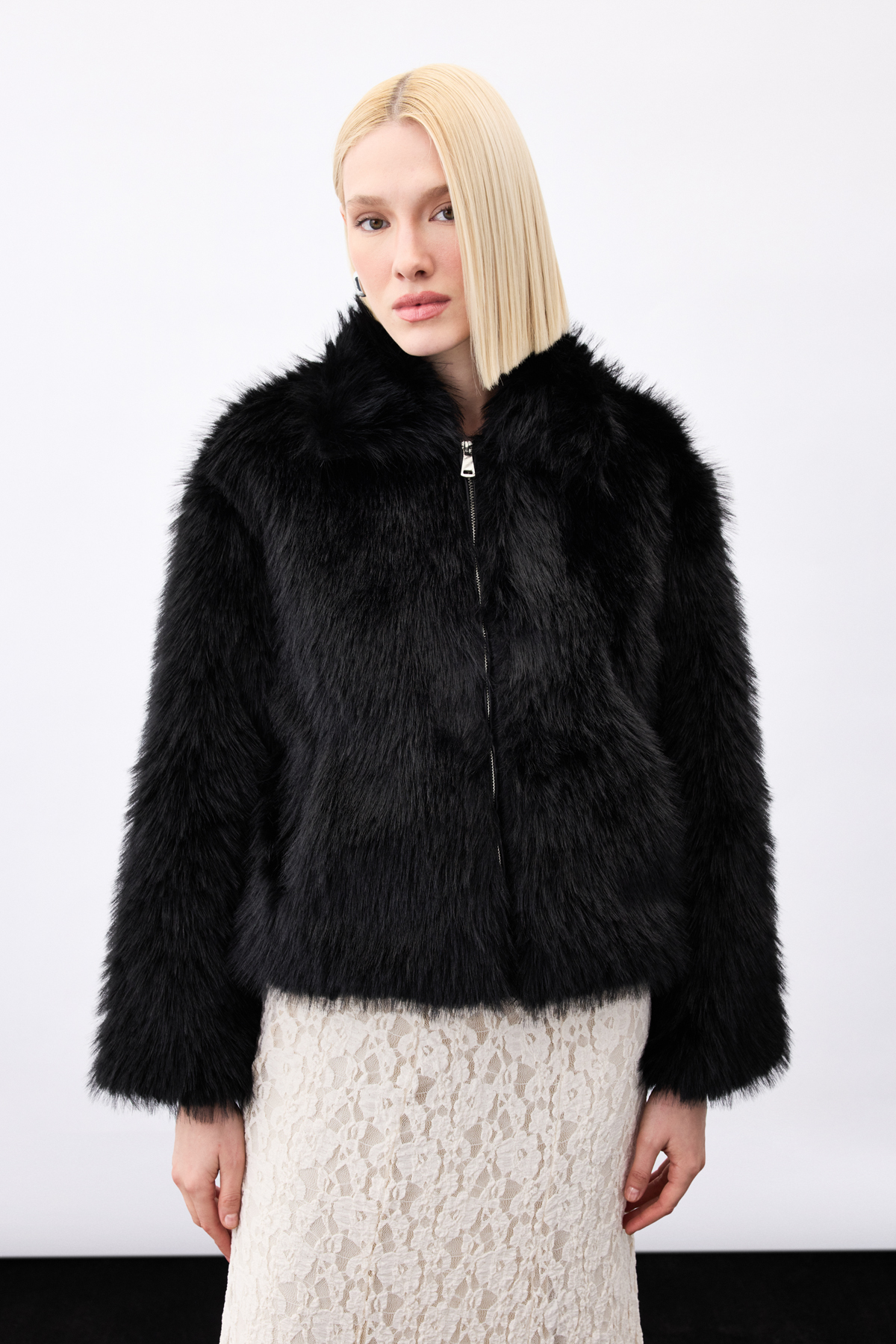 Fermuarlı Kürk - Siyah