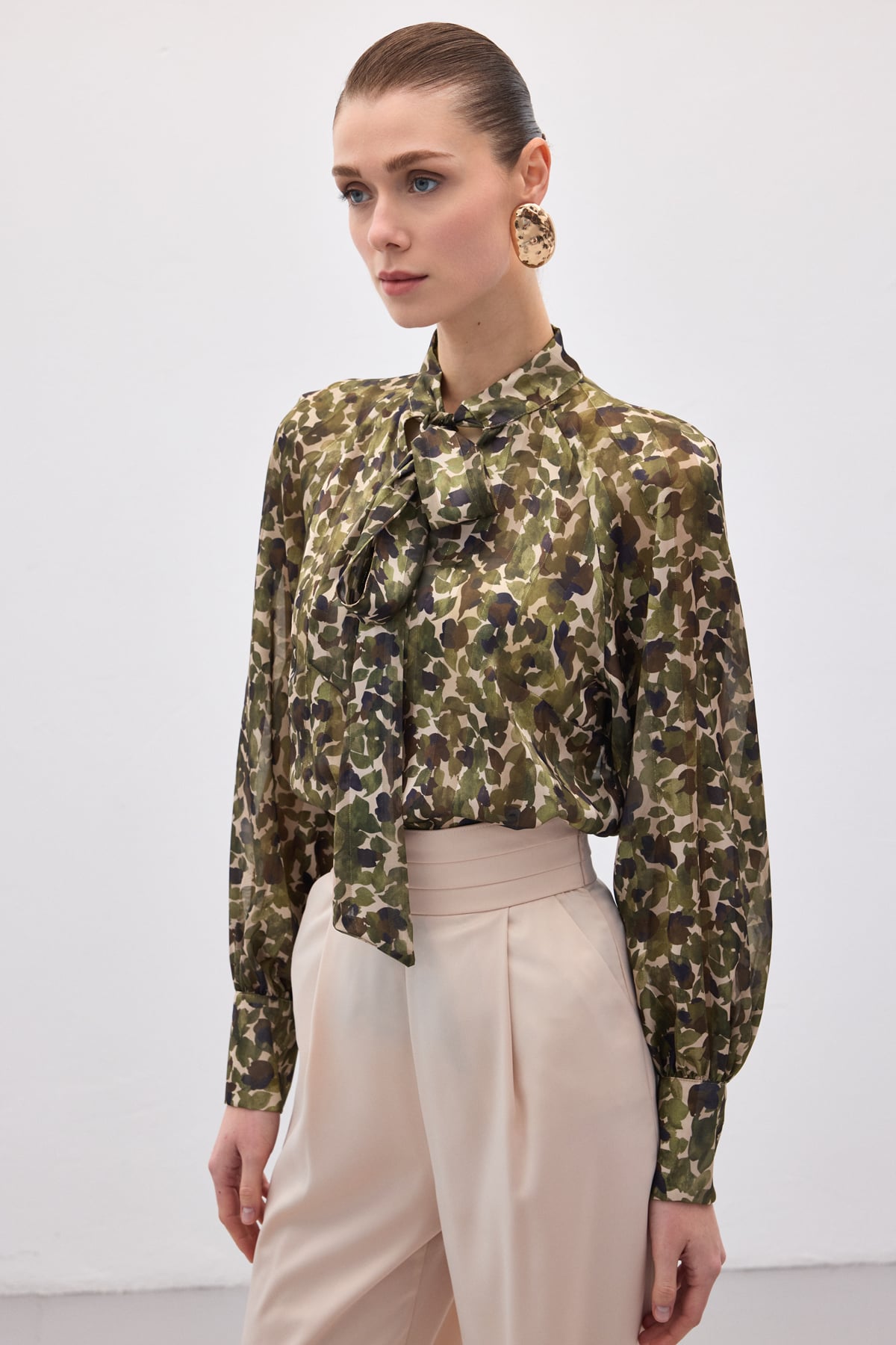 Fular Detaylı Bluz - Haki