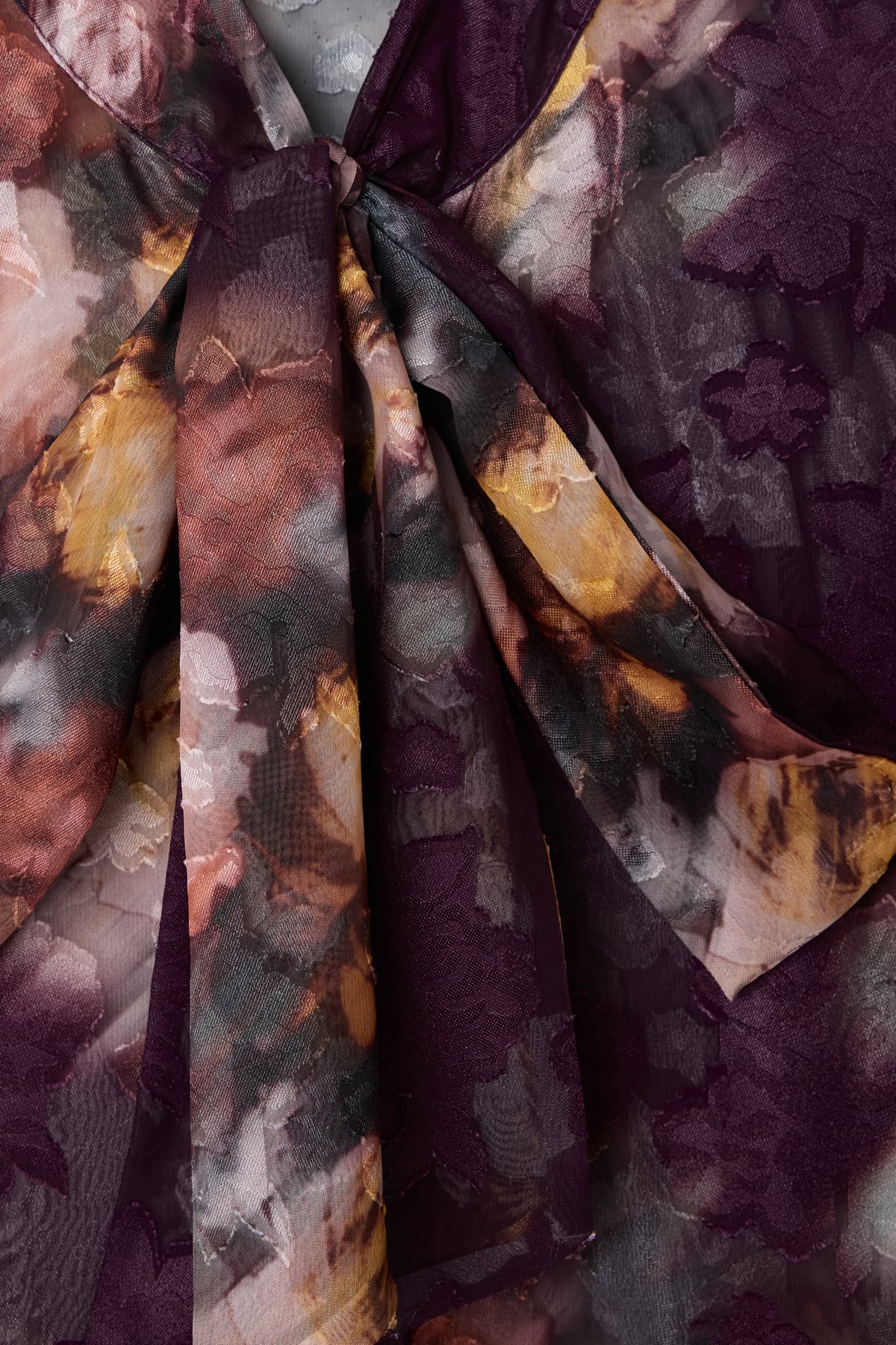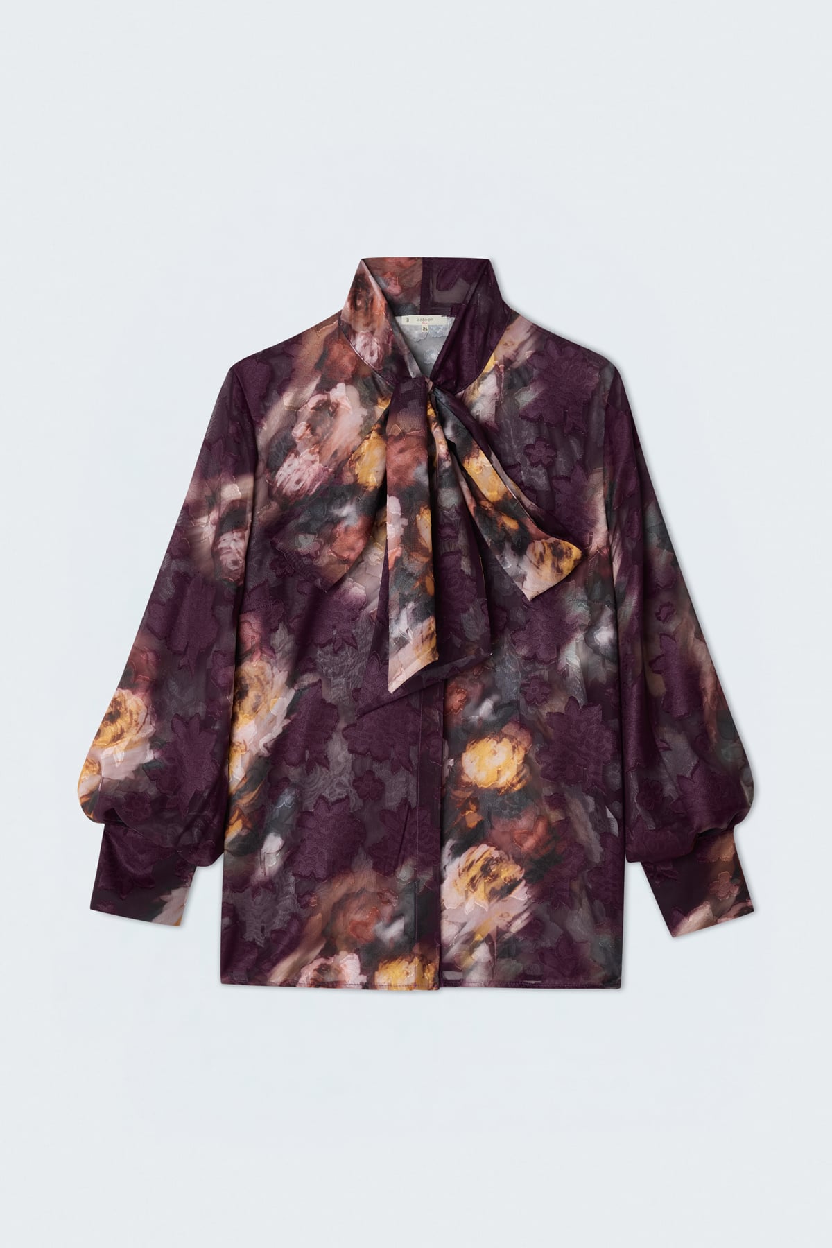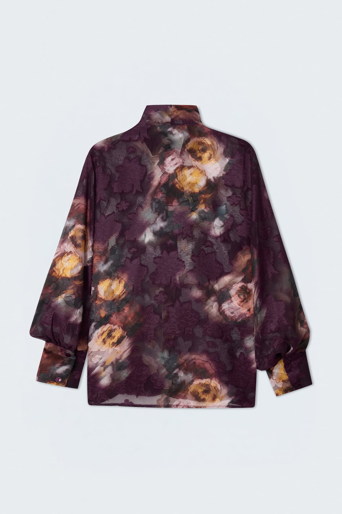 Fularlı Desenli Gömlek - Mürdüm