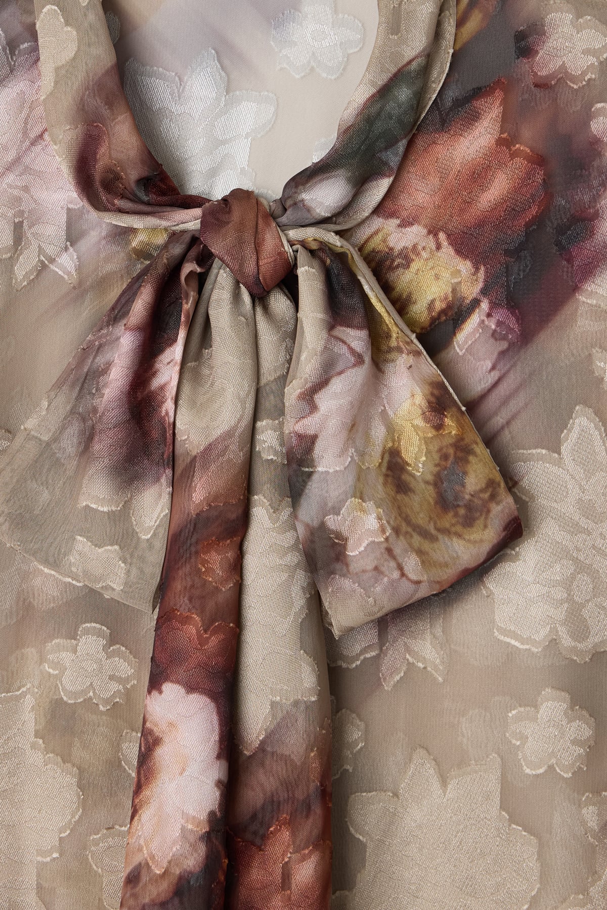 Fularlı Desenli Gömlek - Vizon
