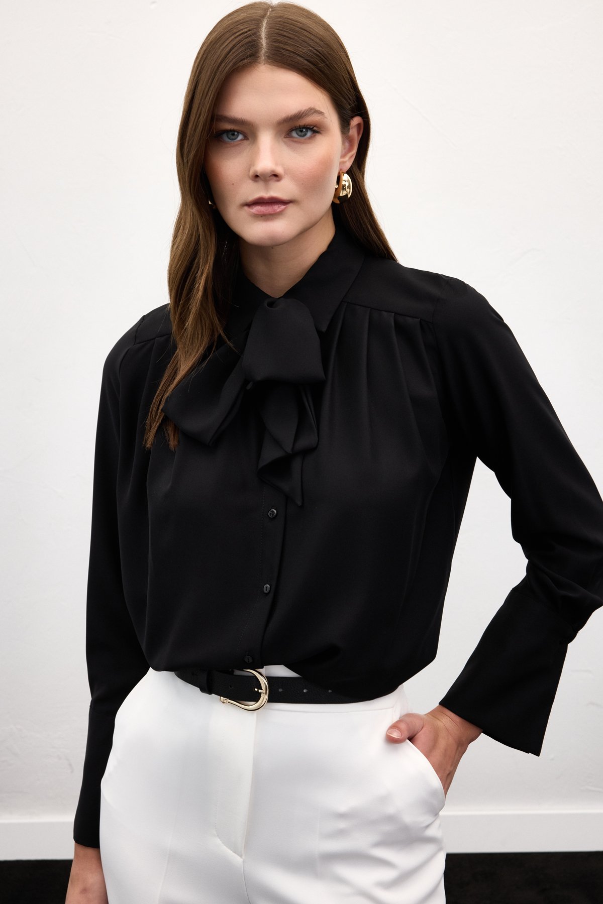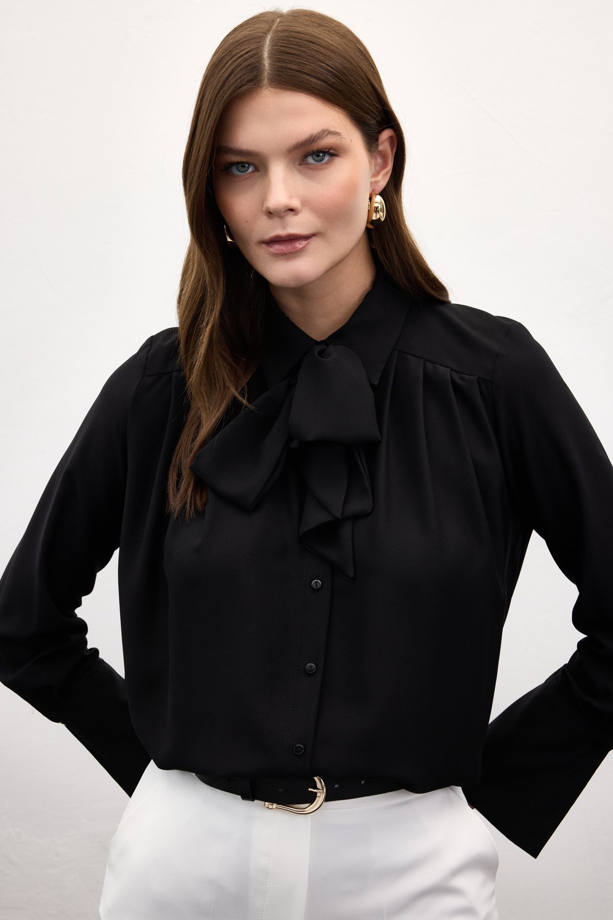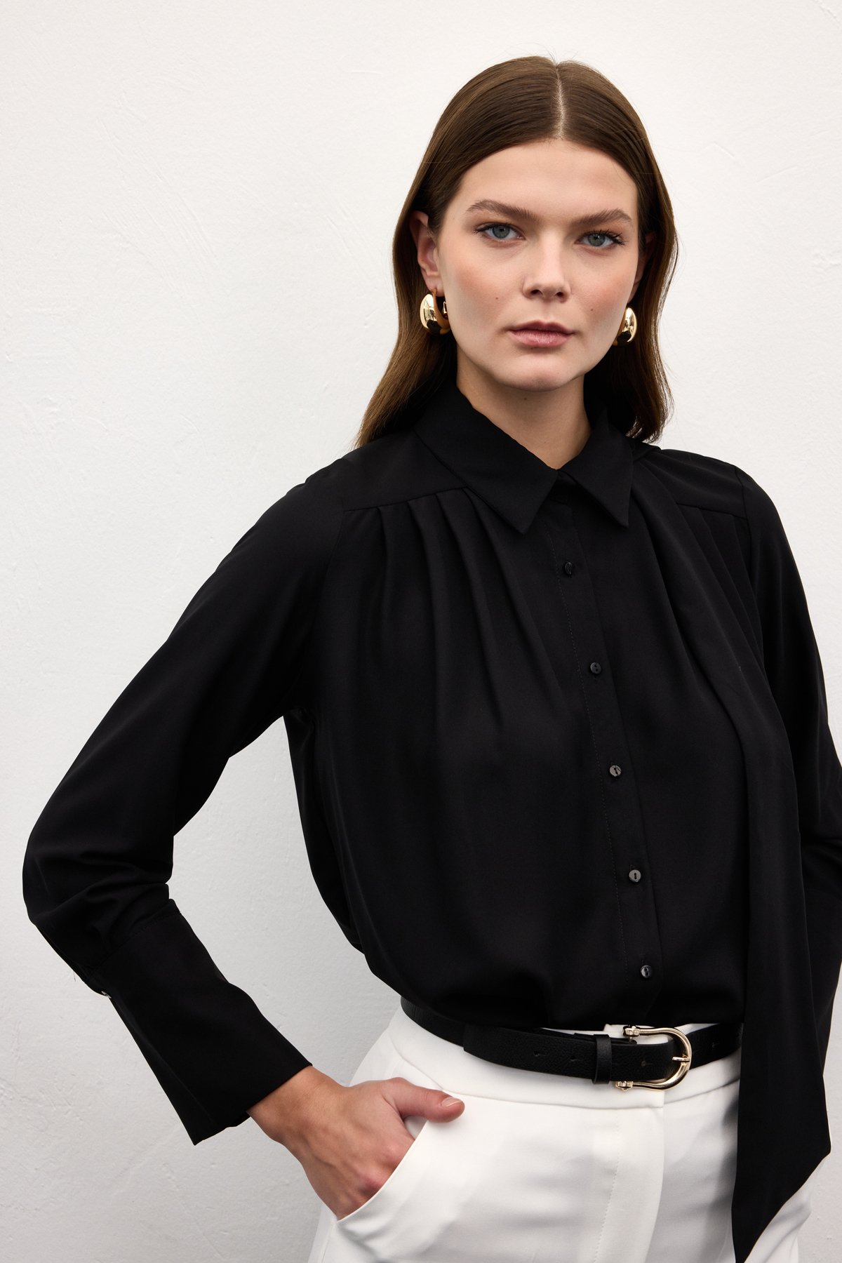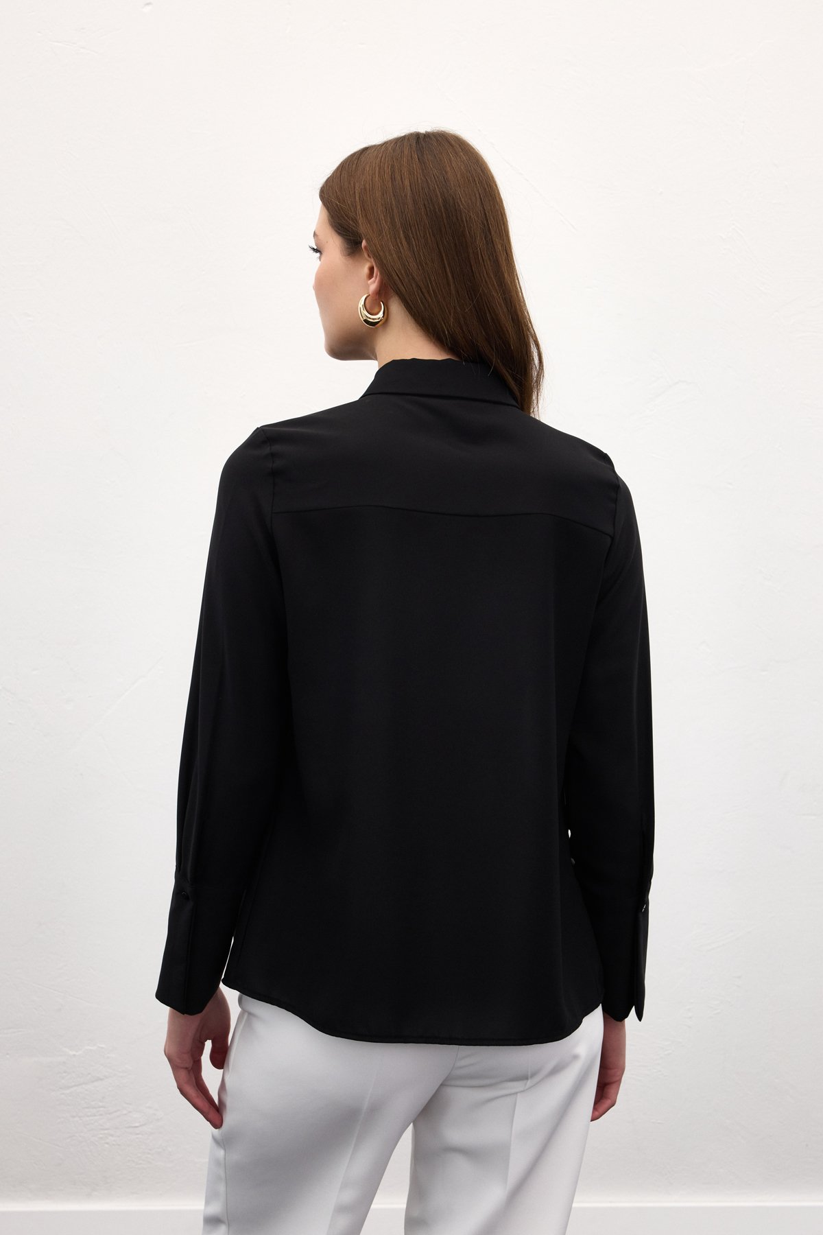 Fularlı Gömlek - Siyah