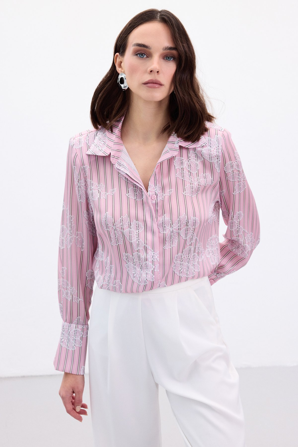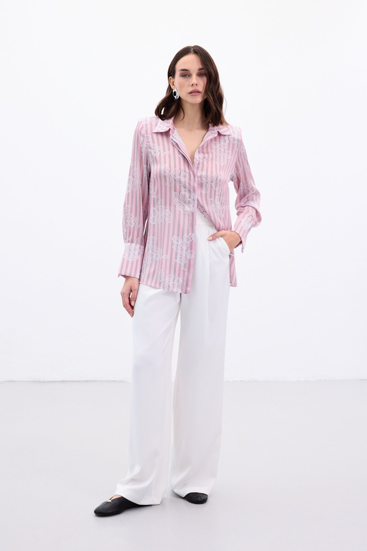 Geniş Manşetli Gömlek - Pembe