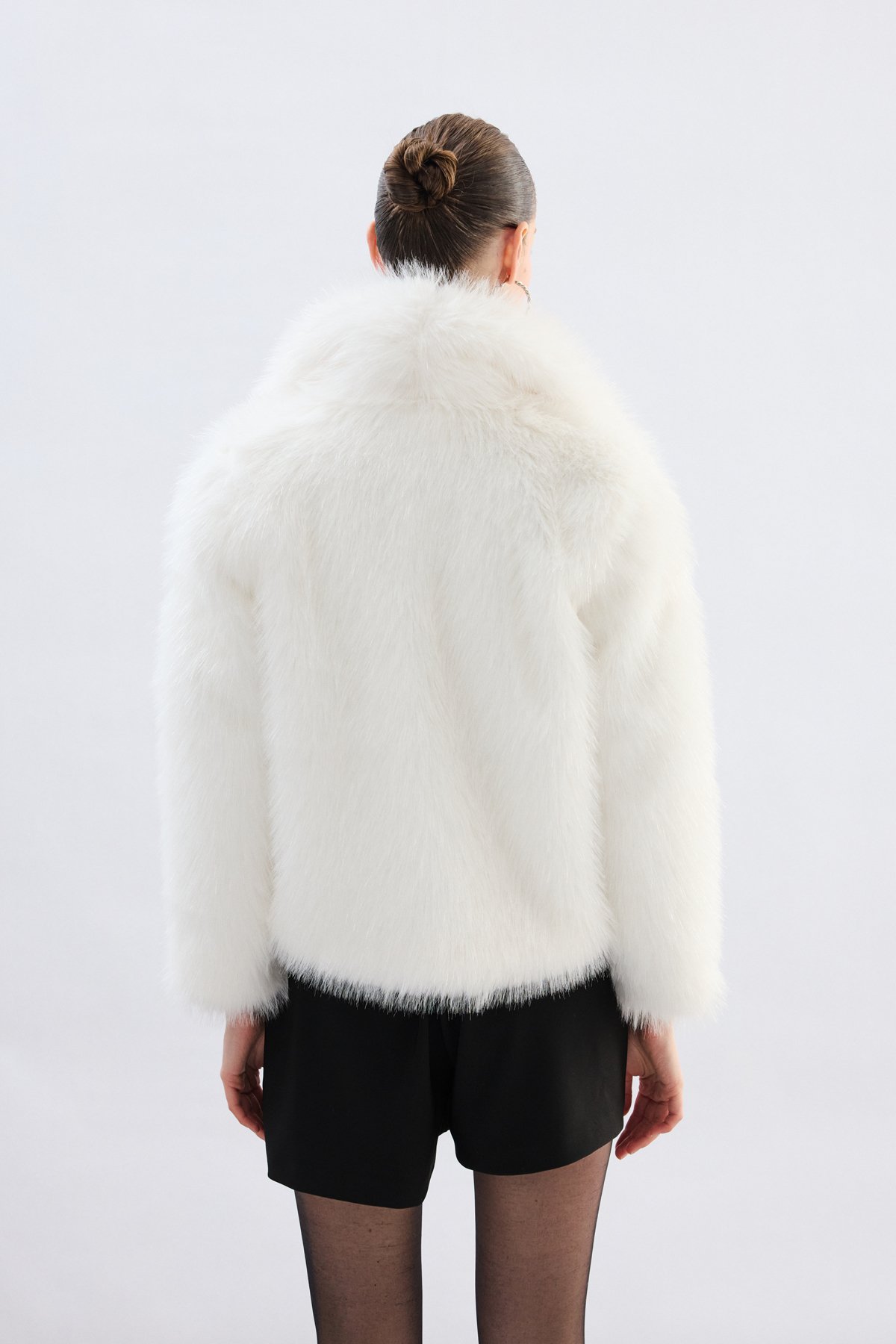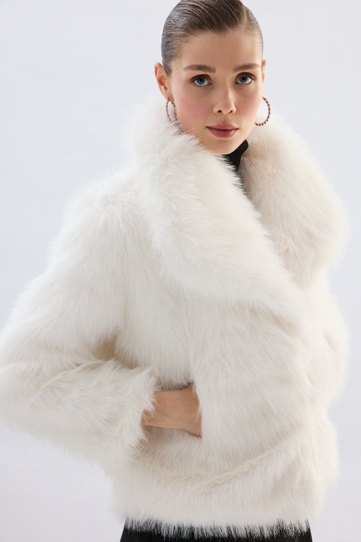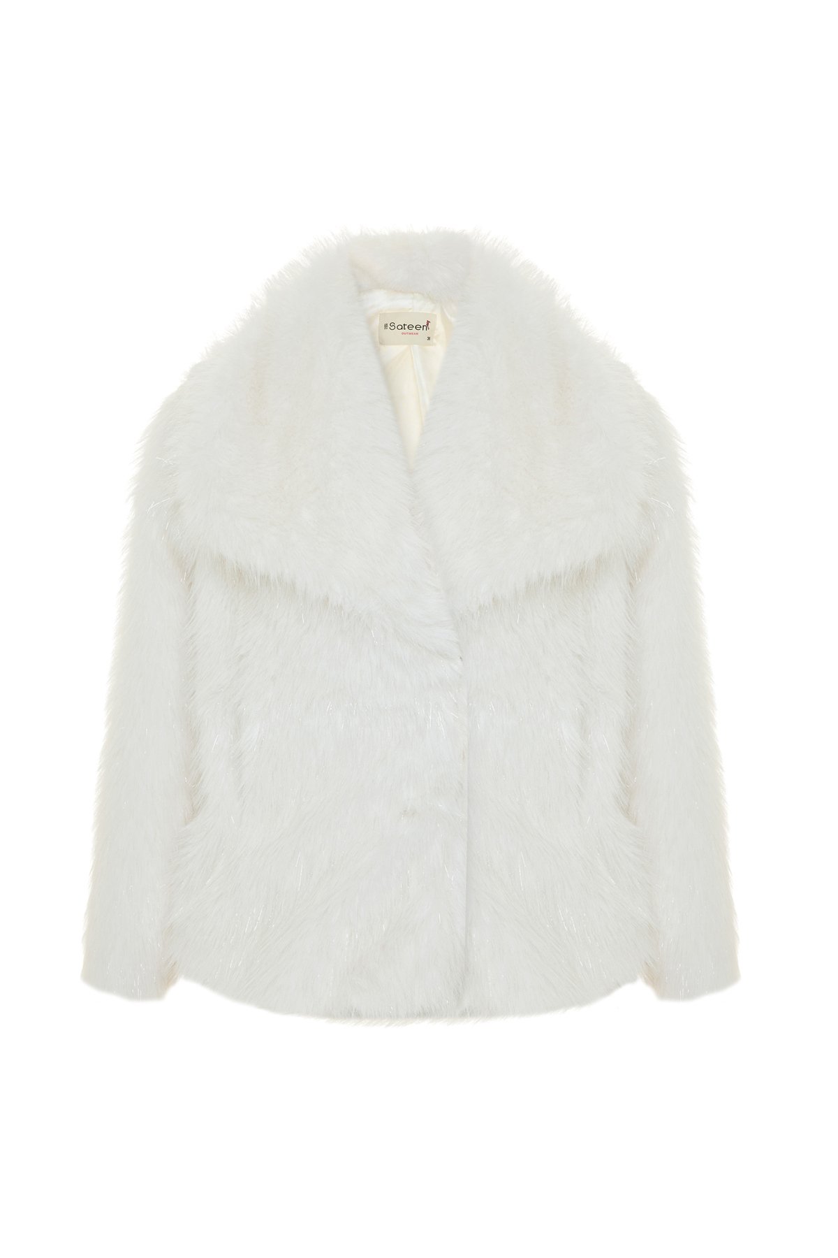 Geniş Yakalı Simli Kürk - Taş